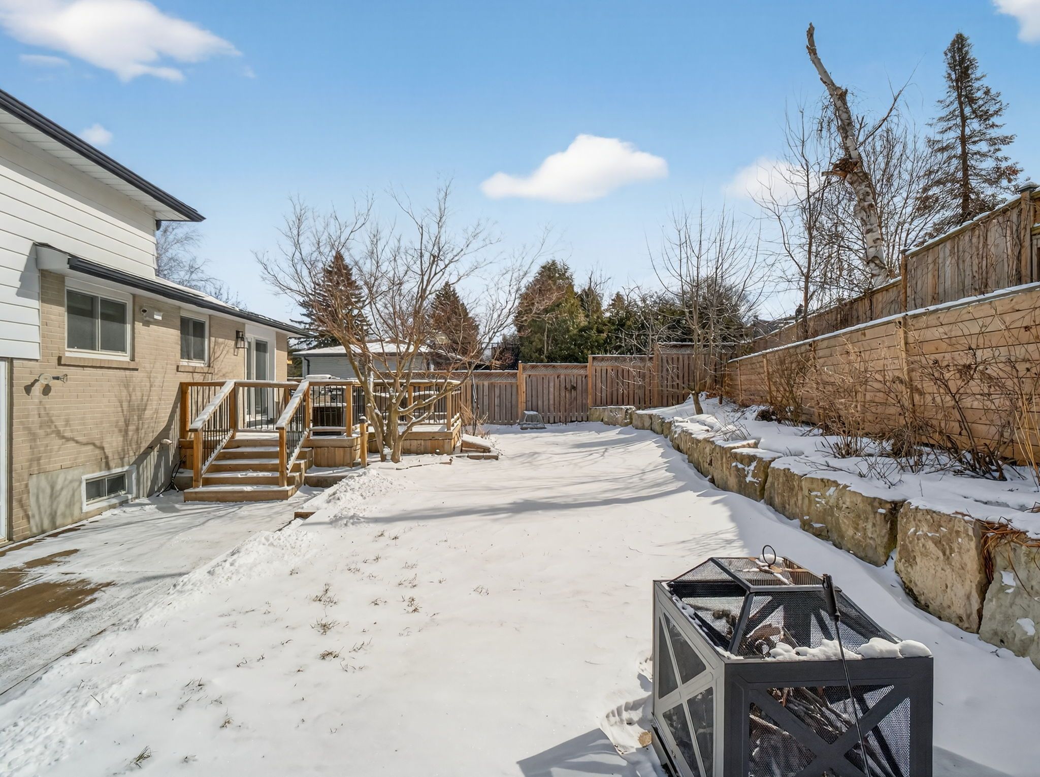 • Private fenced backyard with an expansive deck for relaxation and entertaining.
