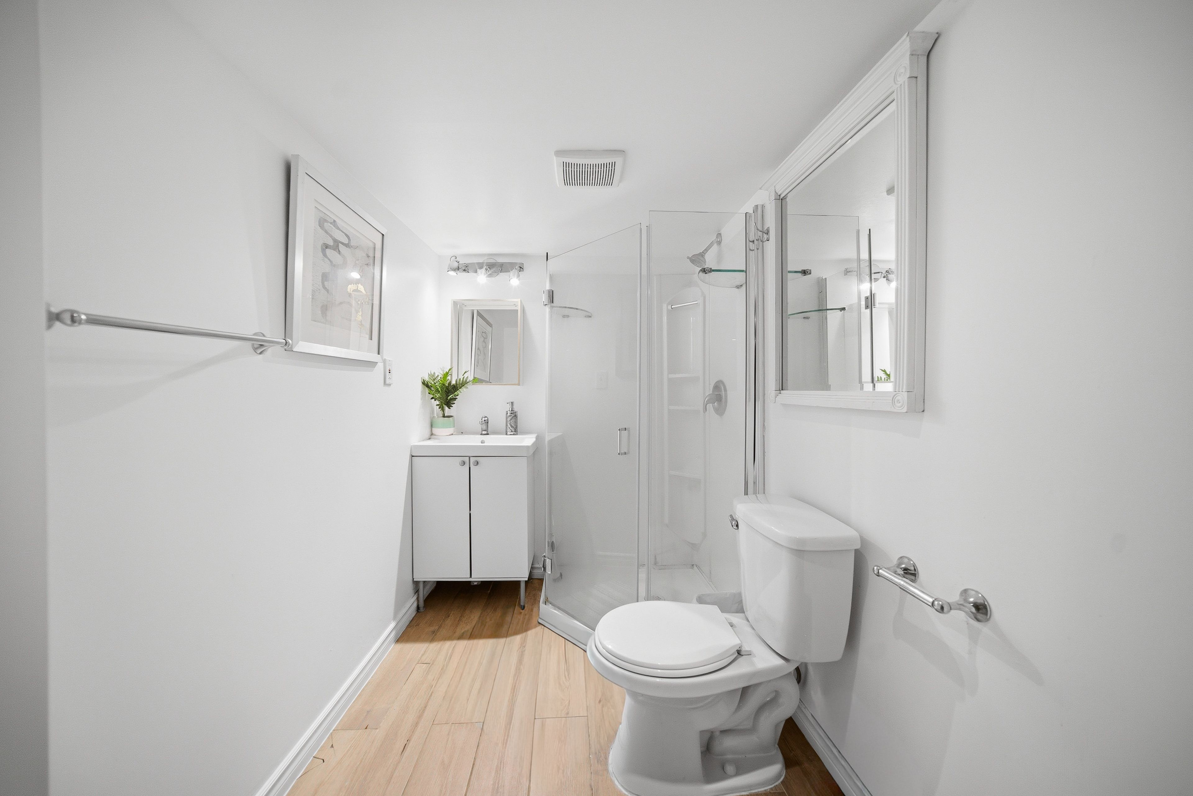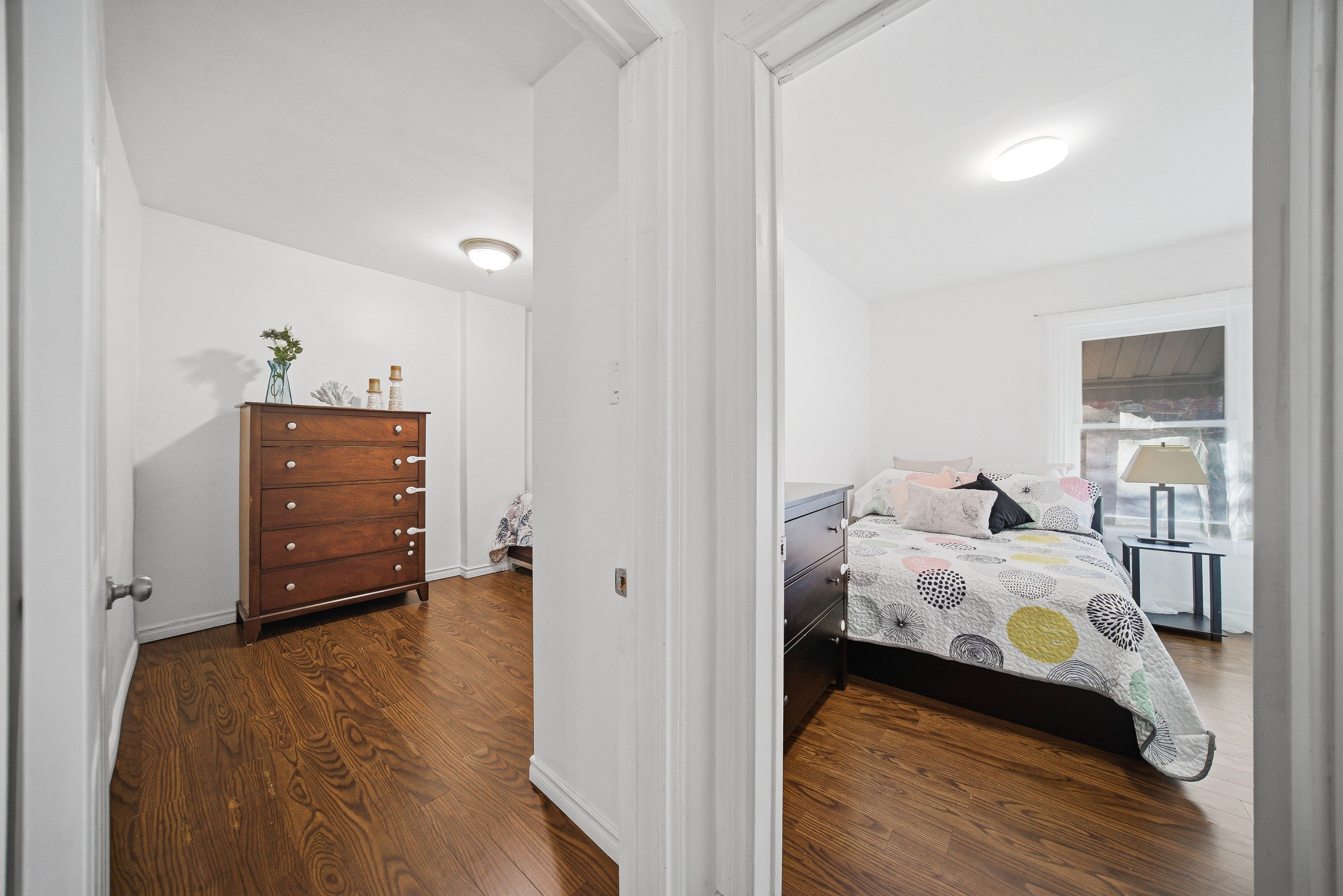 Century row house with 4 levels of finished living space, 3 bedrooms, 2 kitchens, and 3 full bathrooms offering a versatile layout ideal for investors, multigenerational living, extended family, or flexible work-from-home arrangements. The main floor welcomes you with a spacious foyer and living room with 9-ft ceilings, a bright bedroom with double-entry doors, a kitchen with a gas stove, and a modern 3-piece bathroom. The second level features 2 generously sized bedrooms, a separate living room, a second kitchen with a gas stove, and a 4-piece bathroom. Bonus: access to the loft attic space, perfect for an additional bedroom, office, or creative studio. The finished basement adds even more functional space with an updated 3-piece bathroom and versatile areas ideal for a bedroom, gym, or recreation room. Two separate laundry areas in the basement and second level add convenience. Outside, enjoy a spacious front sitting area and rare rear parking for 2 vehicles - a major advantage in the downtown core. Currently configured as two multi-level living areas, the home can easily be converted back to a single-family layout, giving you complete flexibility. Located in the heart of downtown hamilton, you're just minutes from hess village, locke street south, st. Joe's hospital, jackson square mall, highway 403, and the hamilton go centre, with walkable access to restaurants, shops, transit, and vibrant city life.