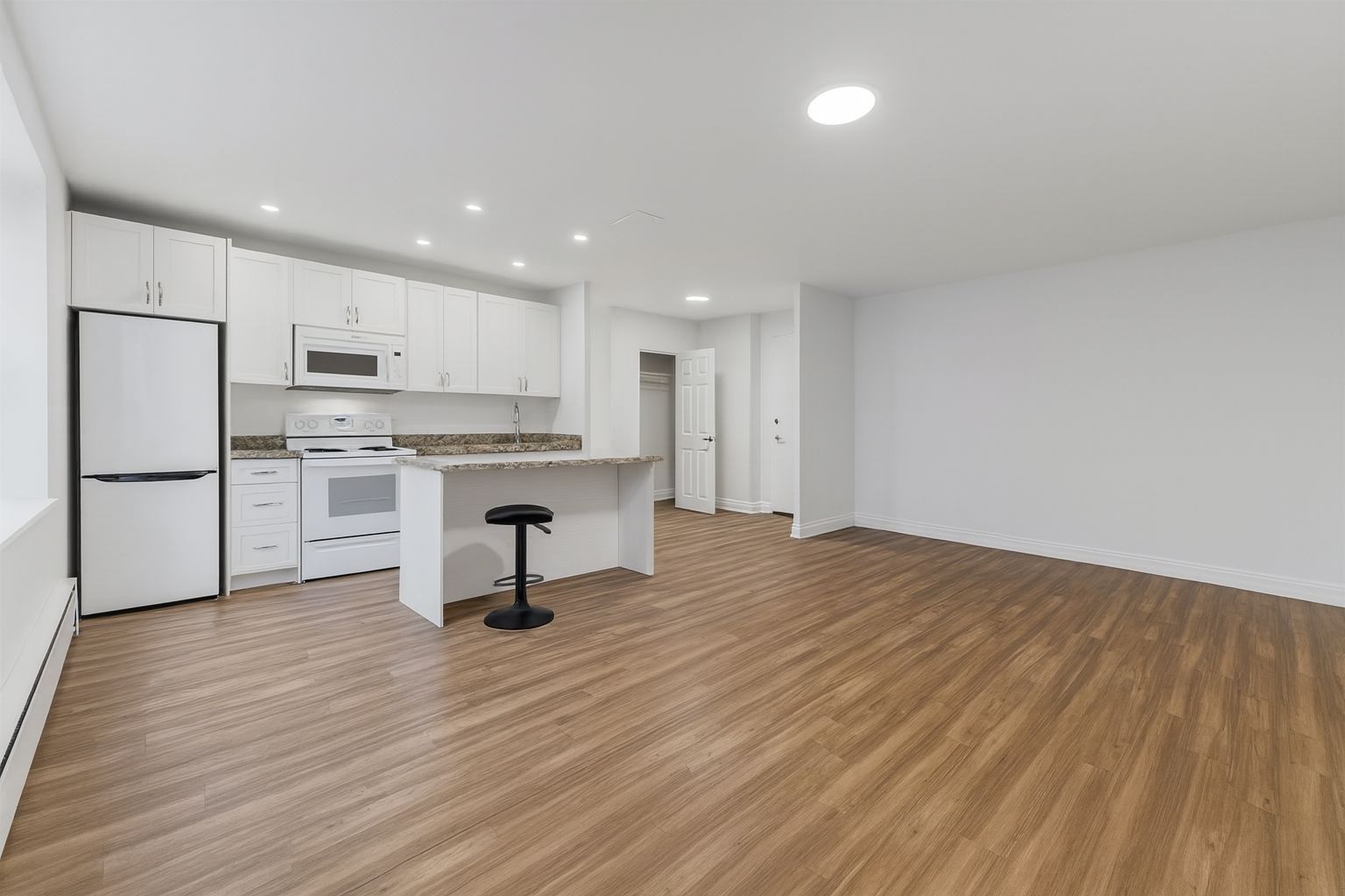 • New cabinetry and flooring in a pet-friendly building.