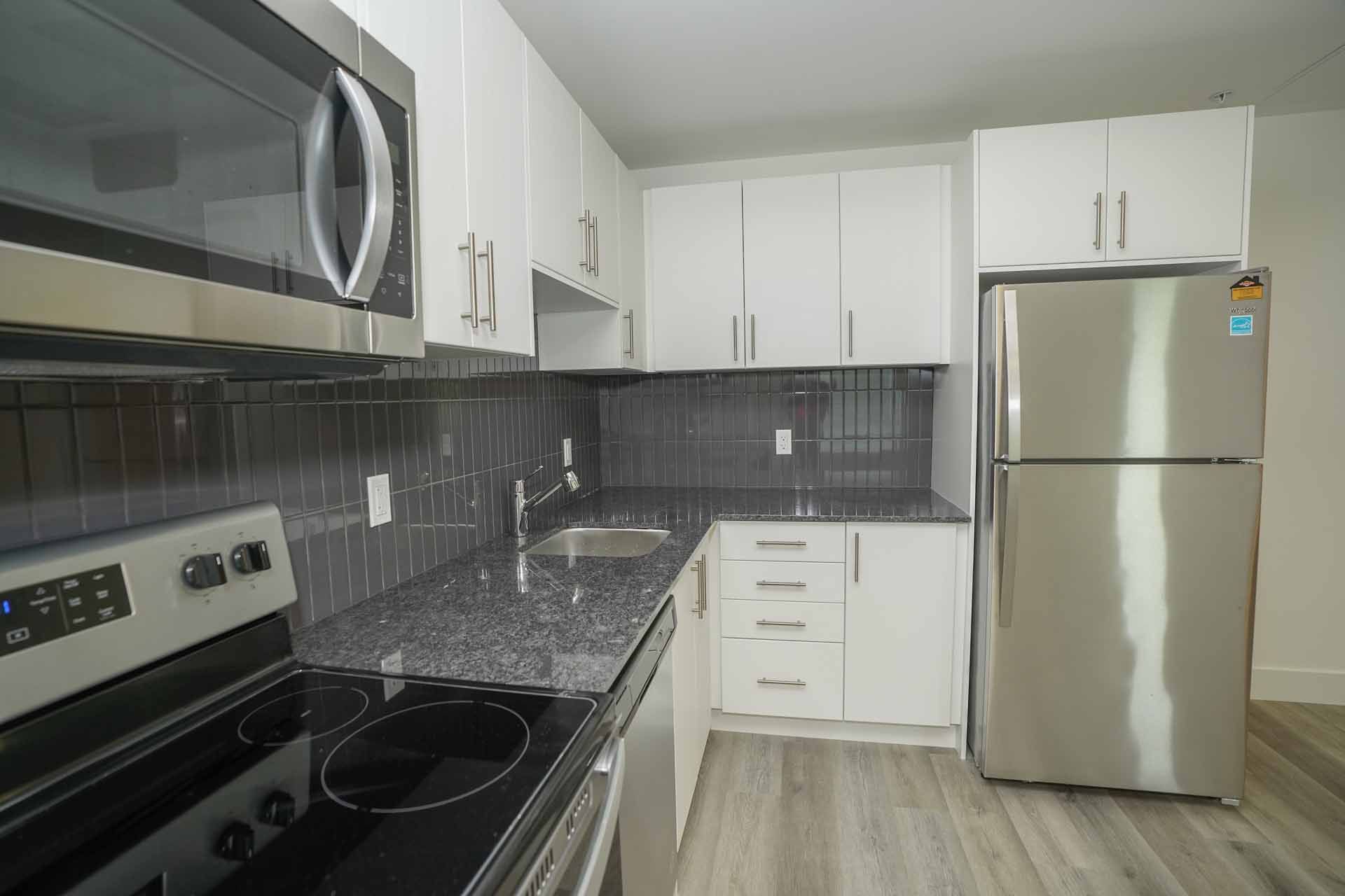 • Spacious condo with open-concept kitchen and stainless steel appliances.