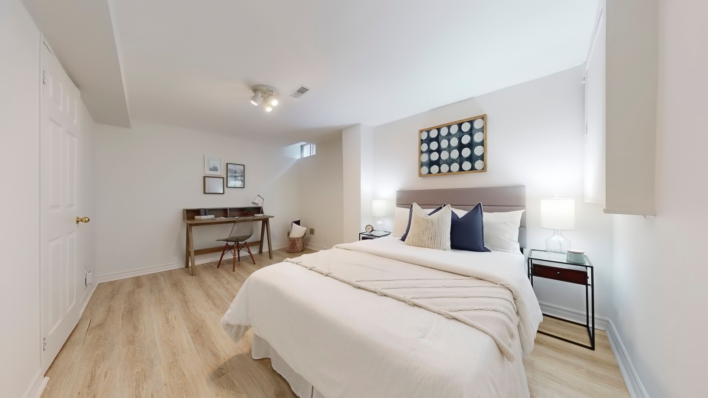 • Large primary bedroom features a balcony and ensuite bathroom.