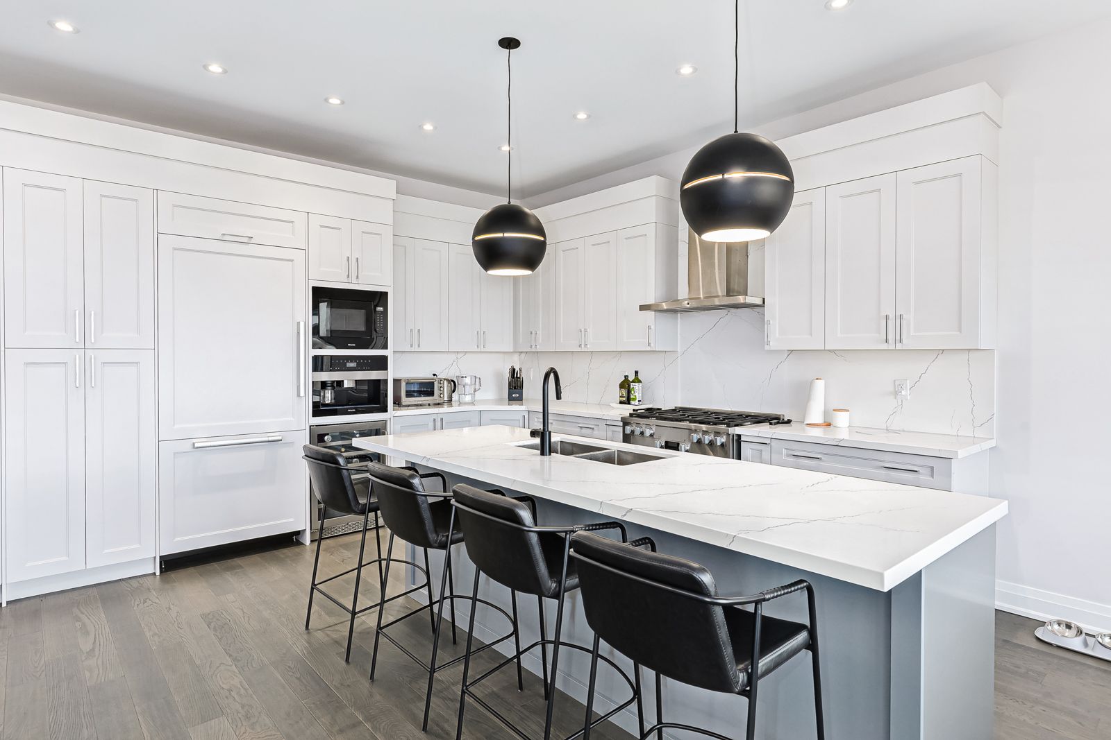 • Spacious chefs kitchen with high-end appliances and quartz counters.