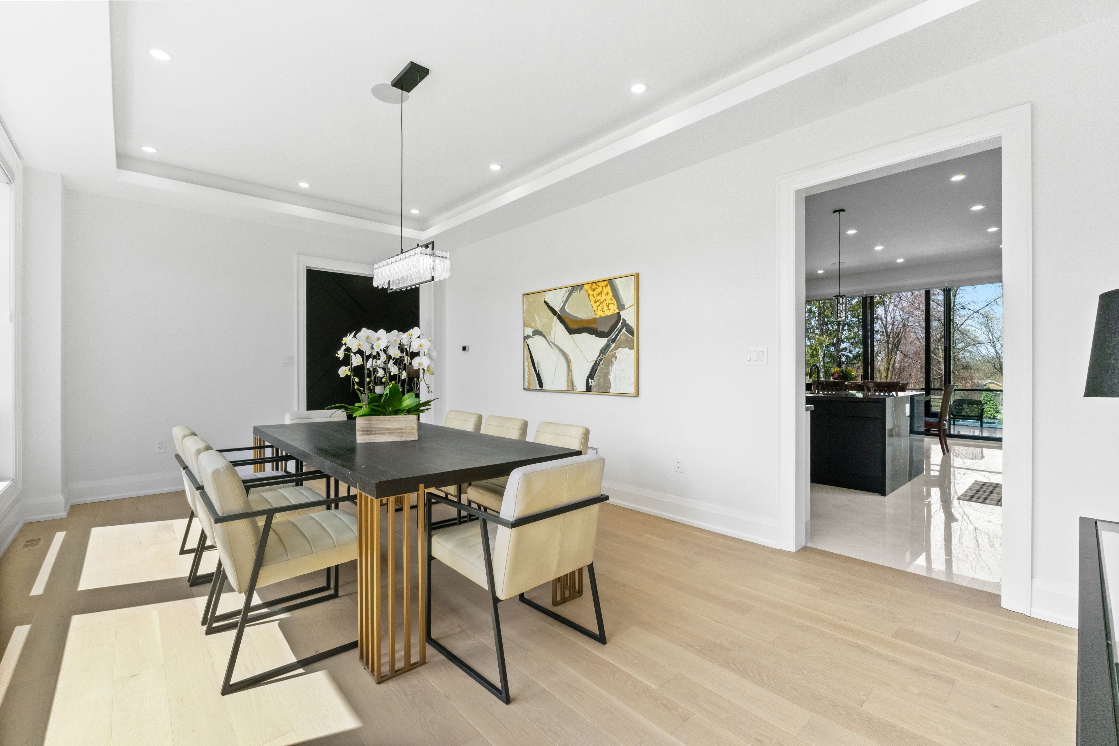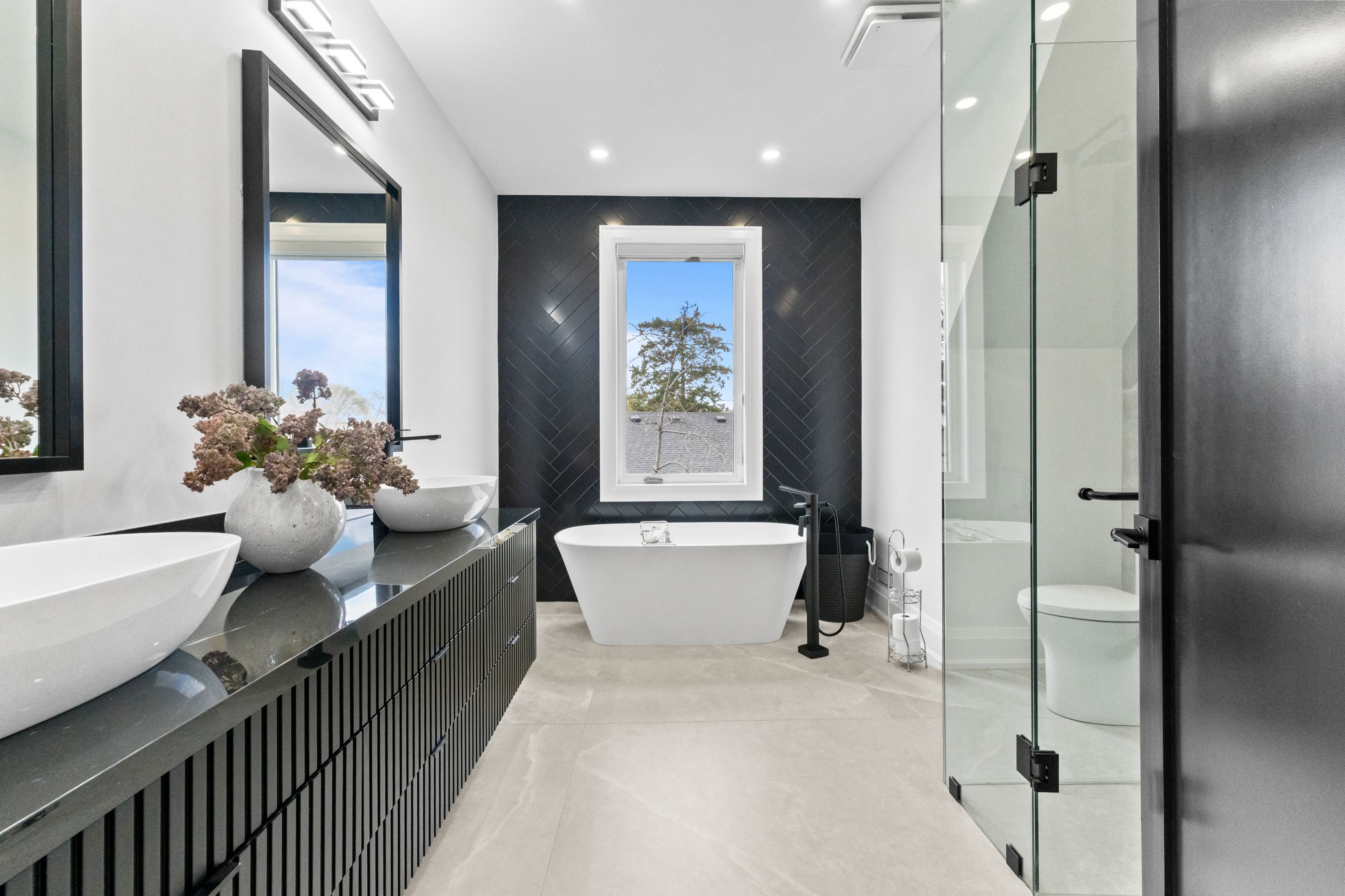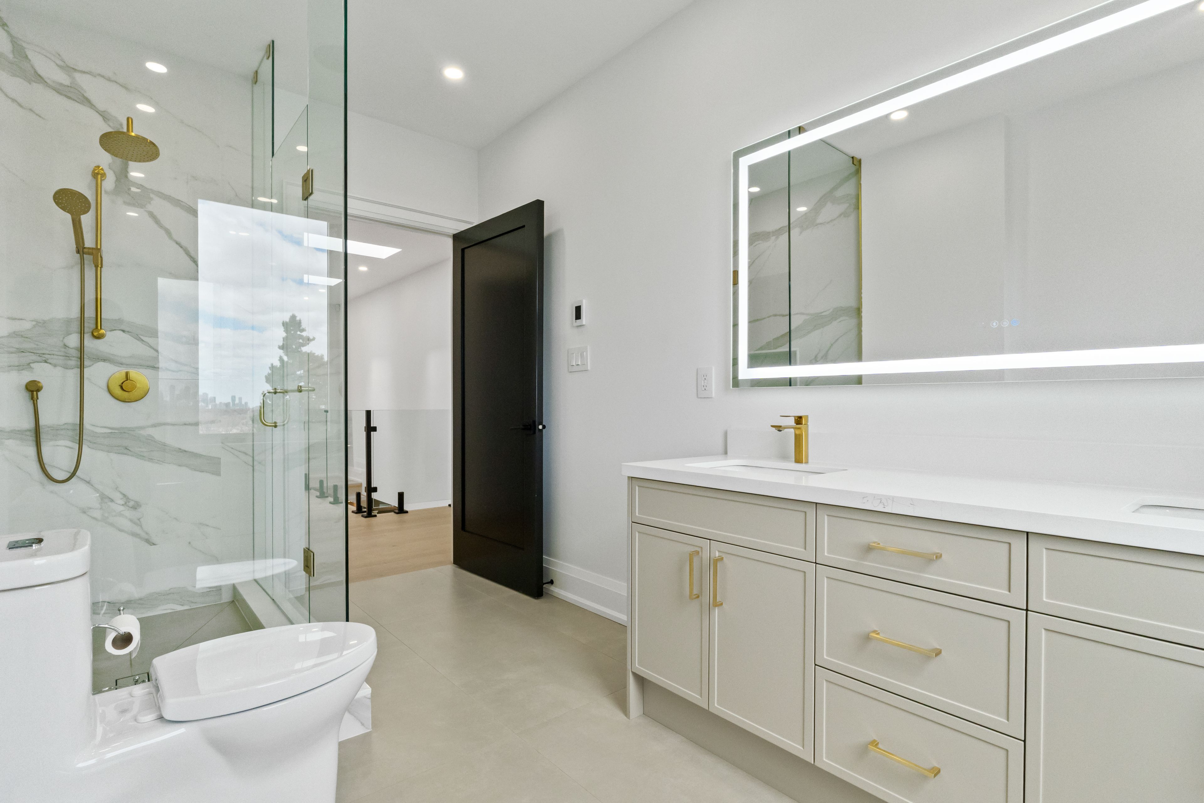 Welcome to 107 vista blvd, a custom-built modern residence offering over 5,100 sf of meticulously crafted living space in a highly sought-after streetsville neighbourhood. Designed with uncompromising attention to detail and premium finishes throughout, every detail captivates from the onset, setting the tone for refined modern living. The open-concept main level features oversized 4x4 porcelain tile and engineered hardwood flooring by vidar, with expansive windows that fill the space with natural light. The gourmet kitchen is a chef's dream, complete with a butler's servery and top-of-the-line thermador appliances, sleek cabinetry, and a stunning 12mm porcelain waterfall island that seamlessly flows into the dining and living areas, offering walkout access to a covered deck, perfect for indoor-outdoor entertaining. Above, all bedrooms are thoughtfully designed with vaulted ceilings, generous closets, and direct access to ensuites or semi-ensuite baths, creating a private retreat feel throughout. The primary suite offers a spa-like ensuite with quartz finishes and heated floors, while skylights on the upper level further enhance the bright, airy ambiance. Every bathroom in the home features radiant heated floors for added comfort. The fully finished lower level is a standout, featuring radiant in-floor heating, parlux lvp flooring on dmx underlayment, a full secondary kitchen, and expansive open-concept space, ideal for extended family living, a nanny or in-law suite, or the ultimate entertainment zone with potential for a home theatre, gym, or games area. Additional highlights include built-in bluetooth speakers with apple airplay, multiple electric fireplaces, and a heat pump system for improved efficiency. The private backyard is future-ready with rough-ins for water, drainage, and power for a potential cabana. Conveniently located near top-rated schools, parks, major highways, and just minutes to credit valley hospital, erin mills shopping centre and more.