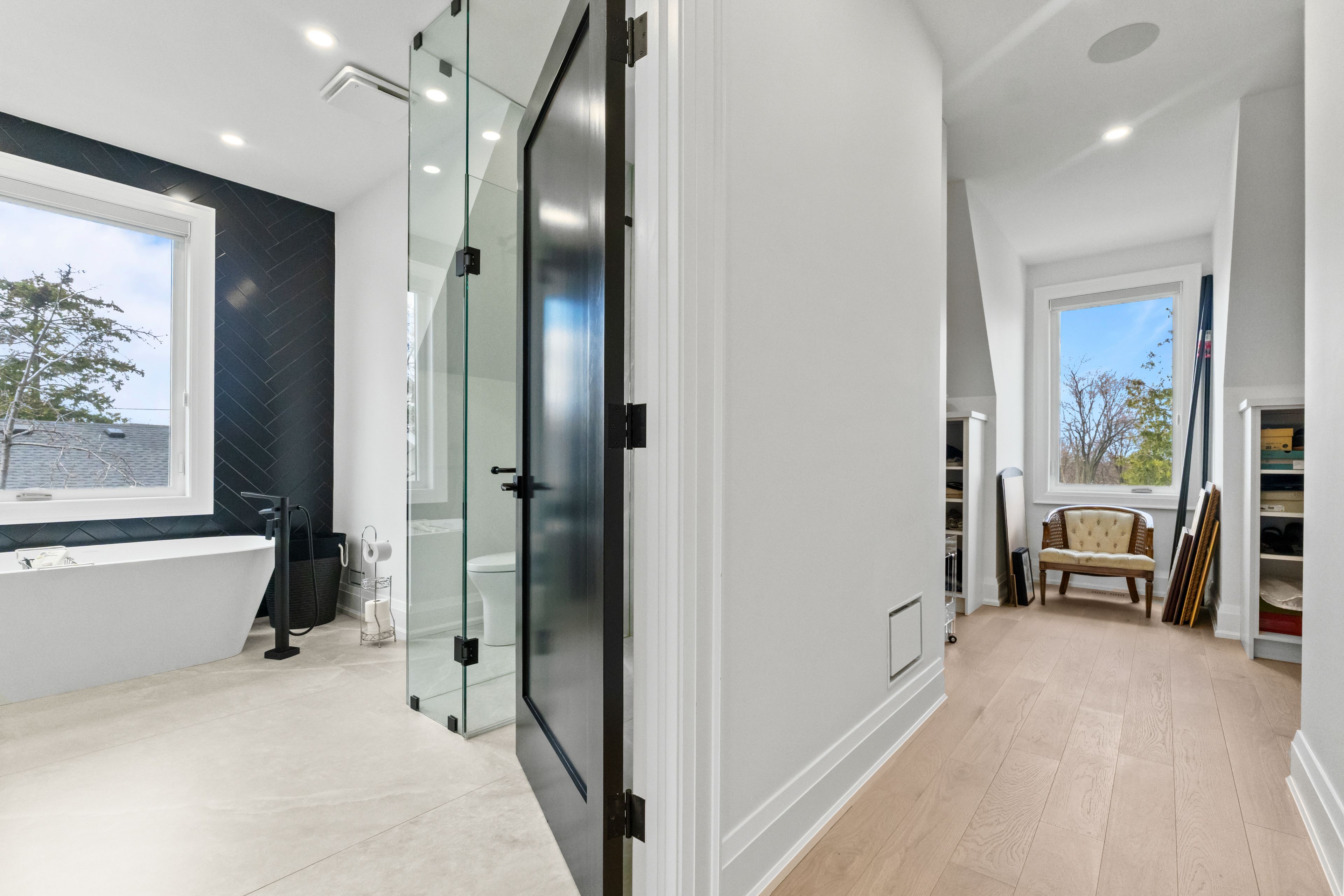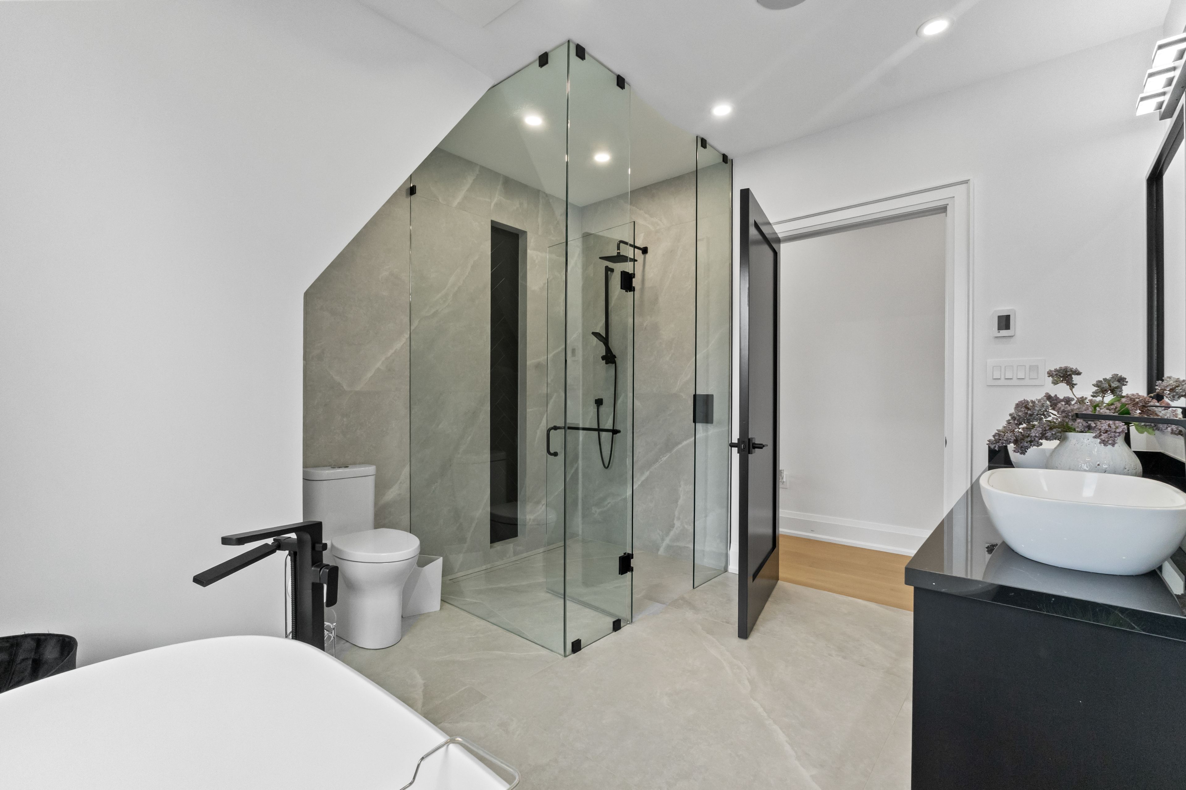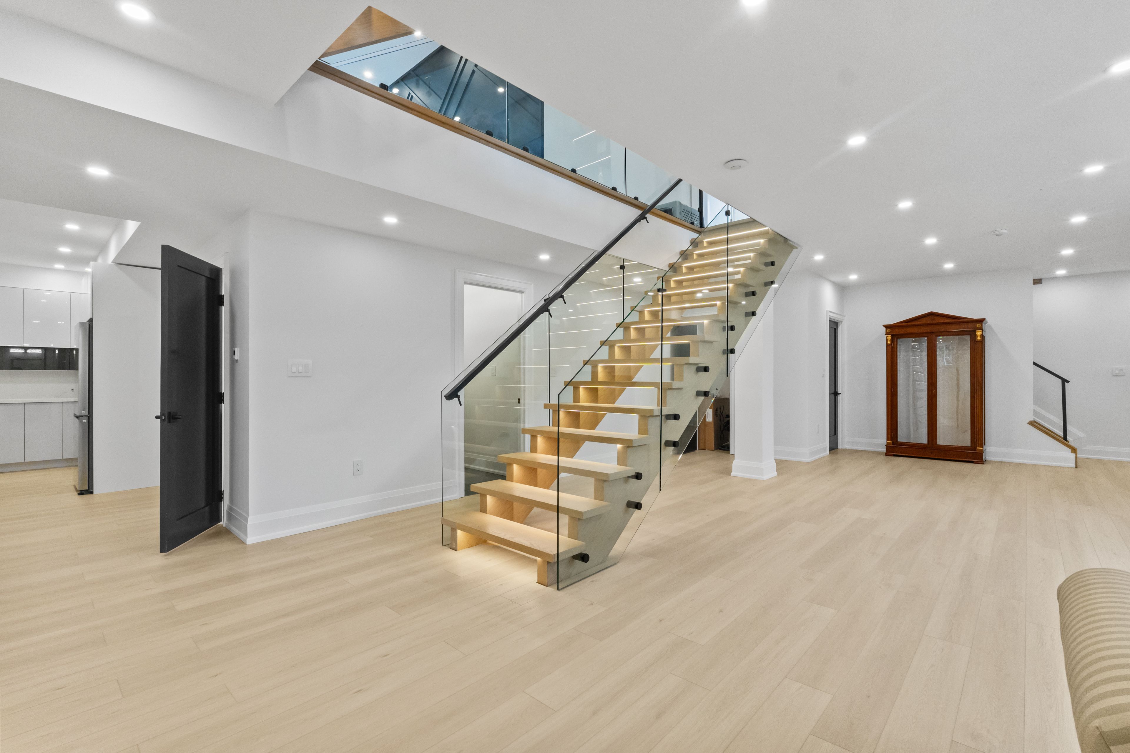 Welcome to 107 vista blvd, a custom-built modern residence offering over 5,100 sf of meticulously crafted living space in a highly sought-after streetsville neighbourhood. Designed with uncompromising attention to detail and premium finishes throughout, every detail captivates from the onset, setting the tone for refined modern living. The open-concept main level features oversized 4x4 porcelain tile and engineered hardwood flooring by vidar, with expansive windows that fill the space with natural light. The gourmet kitchen is a chef's dream, complete with a butler's servery and top-of-the-line thermador appliances, sleek cabinetry, and a stunning 12mm porcelain waterfall island that seamlessly flows into the dining and living areas, offering walkout access to a covered deck, perfect for indoor-outdoor entertaining. Above, all bedrooms are thoughtfully designed with vaulted ceilings, generous closets, and direct access to ensuites or semi-ensuite baths, creating a private retreat feel throughout. The primary suite offers a spa-like ensuite with quartz finishes and heated floors, while skylights on the upper level further enhance the bright, airy ambiance. Every bathroom in the home features radiant heated floors for added comfort. The fully finished lower level is a standout, featuring radiant in-floor heating, parlux lvp flooring on dmx underlayment, a full secondary kitchen, and expansive open-concept space, ideal for extended family living, a nanny or in-law suite, or the ultimate entertainment zone with potential for a home theatre, gym, or games area. Additional highlights include built-in bluetooth speakers with apple airplay, multiple electric fireplaces, and a heat pump system for improved efficiency. The private backyard is future-ready with rough-ins for water, drainage, and power for a potential cabana. Conveniently located near top-rated schools, parks, major highways, and just minutes to credit valley hospital, erin mills shopping centre and more.
