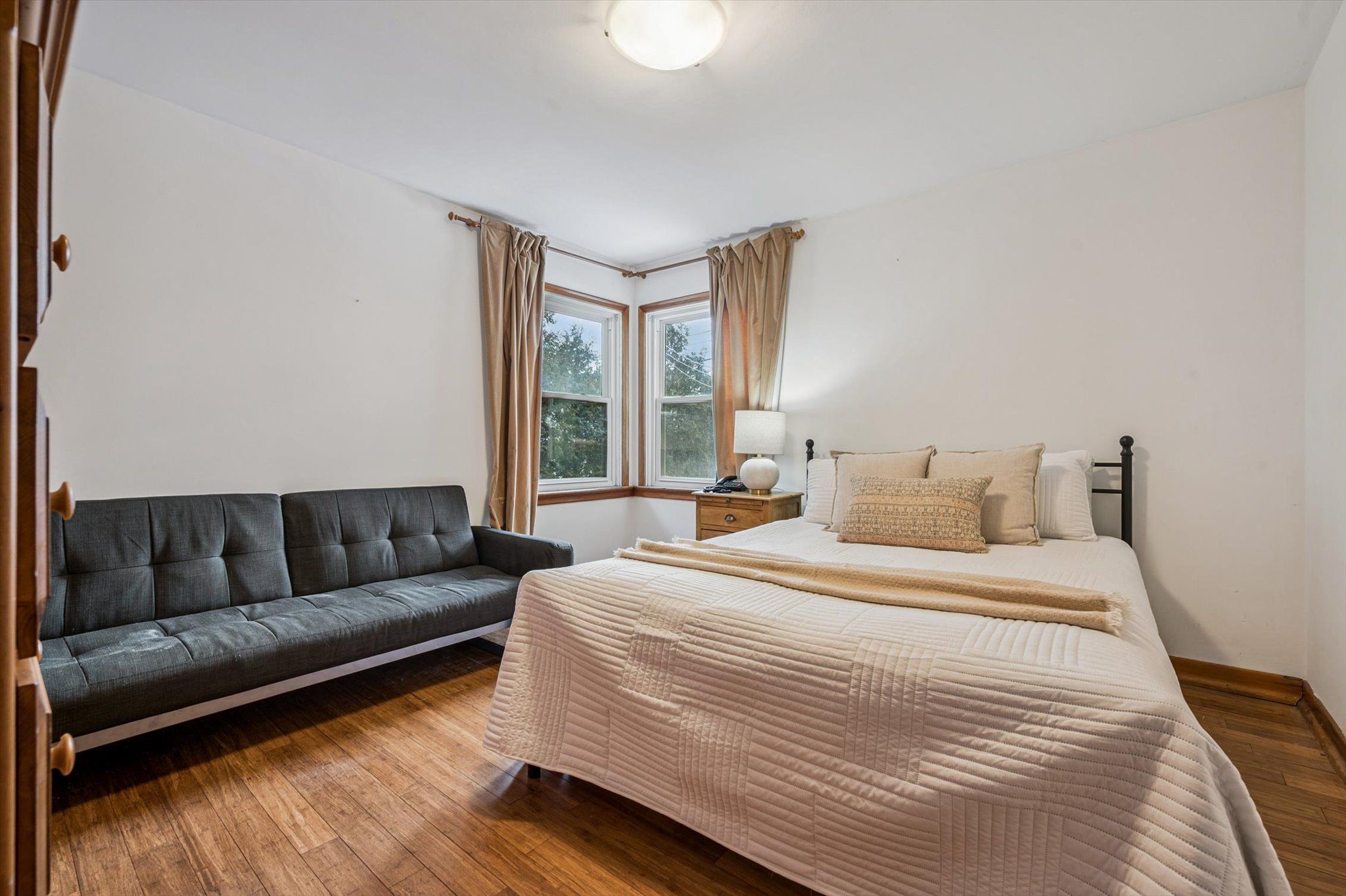 Discover 107 westmount road, a charming detached bungalow in the highly desirable exhibition park neighbourhood, just minutes from guelph's vibrant downtown and the iconic green space of exhibition park with trails, sports fields, tennis courts, and community amenities. The main floor features an open-concept living and dining area with hardwood flooring throughout, creating a bright and inviting space. The well-appointed kitchen boasts stainless steel appliances and a cozy breakfast corner - perfect for casual meals. This level also offers three bedrooms and a four-piece bathroom designed for comfort and everyday living. Below, the home's fully legal basement apartment with a separate entrance provides independent living space, ideal for rental income or extended family. The suite includes an open-concept layout with an eat-in kitchen, two bedrooms, and a three-piece bathroom. Outside, enjoy a large backyard - an excellent space for relaxation and entertaining - and five dedicated parking spaces for convenience in this central location. This home blends functional design, income potential, and a prime guelph location!