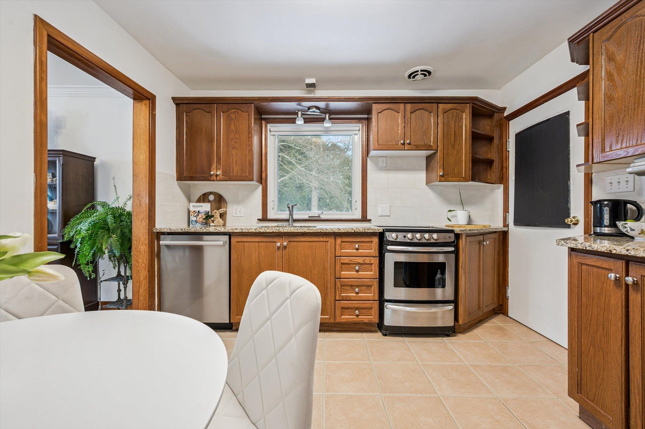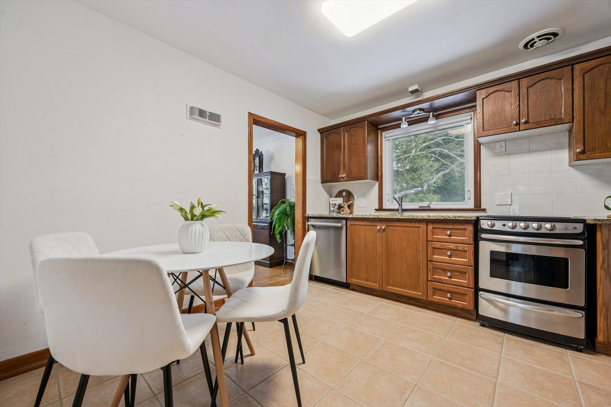 • Well-equipped kitchen with stainless steel appliances and cozy breakfast corner.
