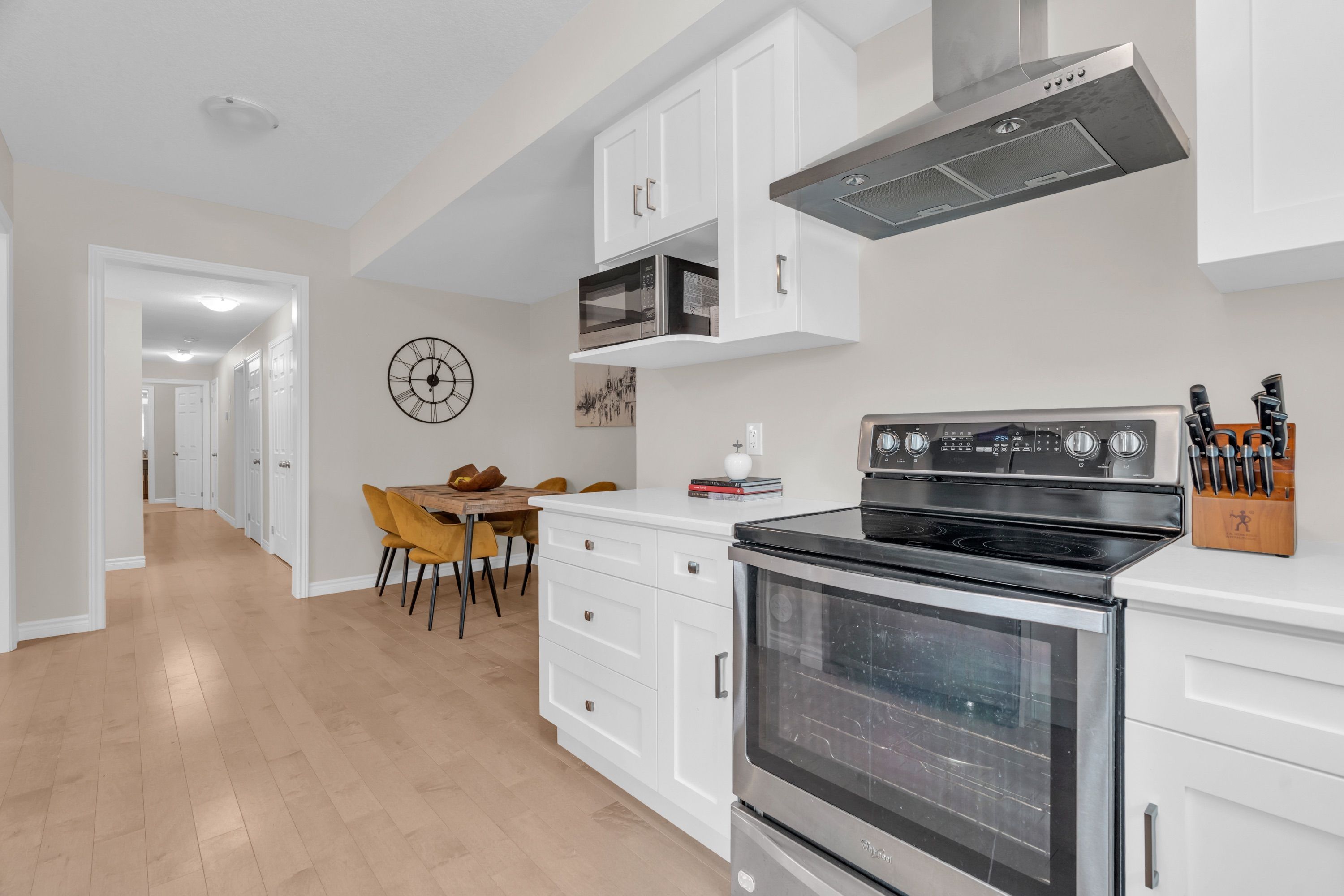 Welcome to 107 westra drive, unit 5, a modern 2-bedroom, 2-bathroom bungalow townhouse offering just over 1,400 sq. Ft. Of thoughtfully designed living space and the convenience of two parking spots. Built in 2020 and located in guelph's desirable west end, this contemporary home features a bright, open-concept layout with clean lines and modern finishes, ideal for both everyday living and entertaining. The bungalow design provides comfortable, stair-free living, perfect for professionals, downsizers, or anyone seeking low-maintenance ownership, all within close proximity to shopping, parks, schools, and transit.