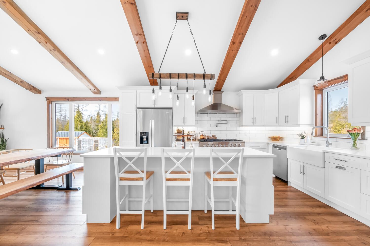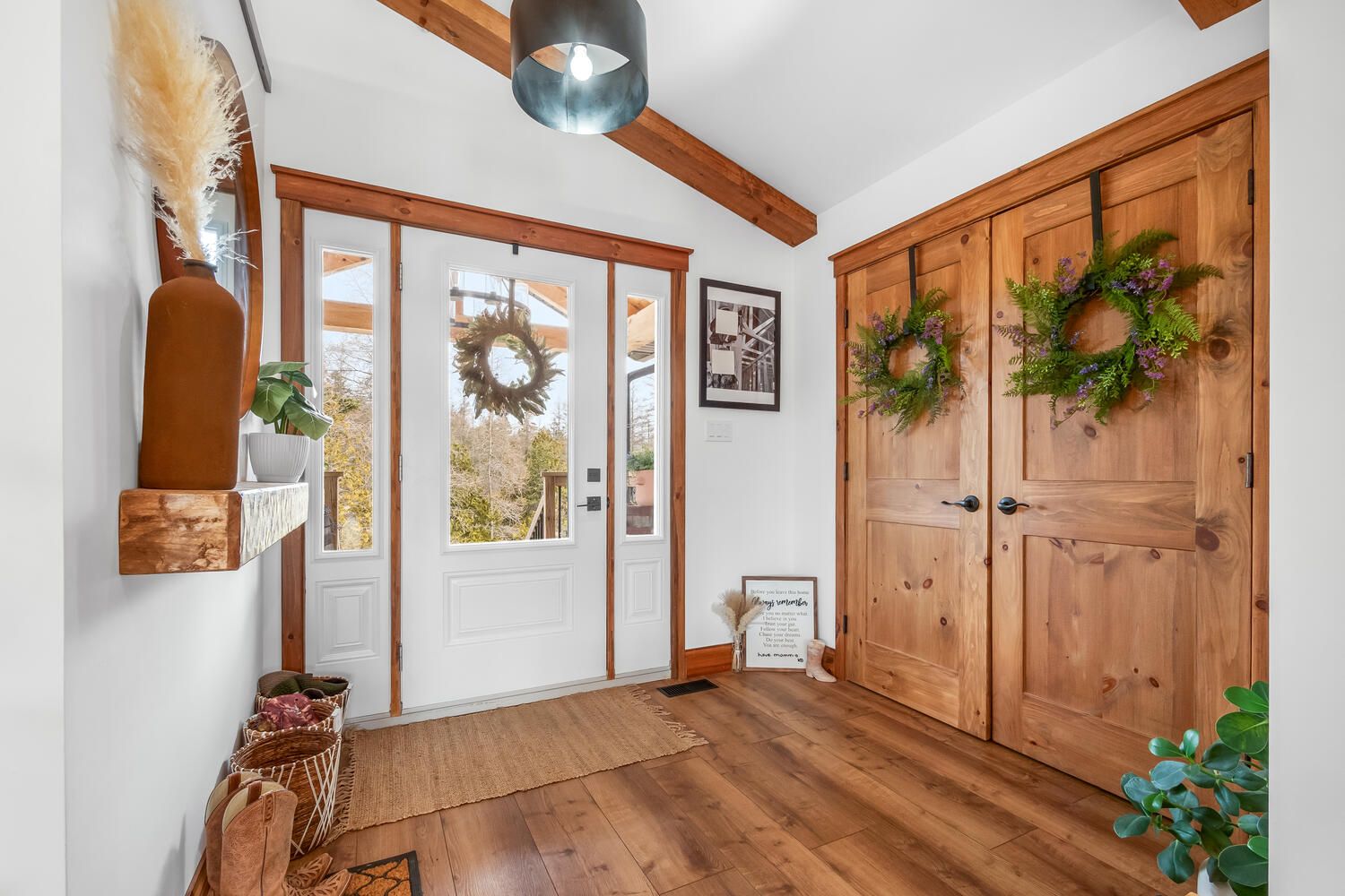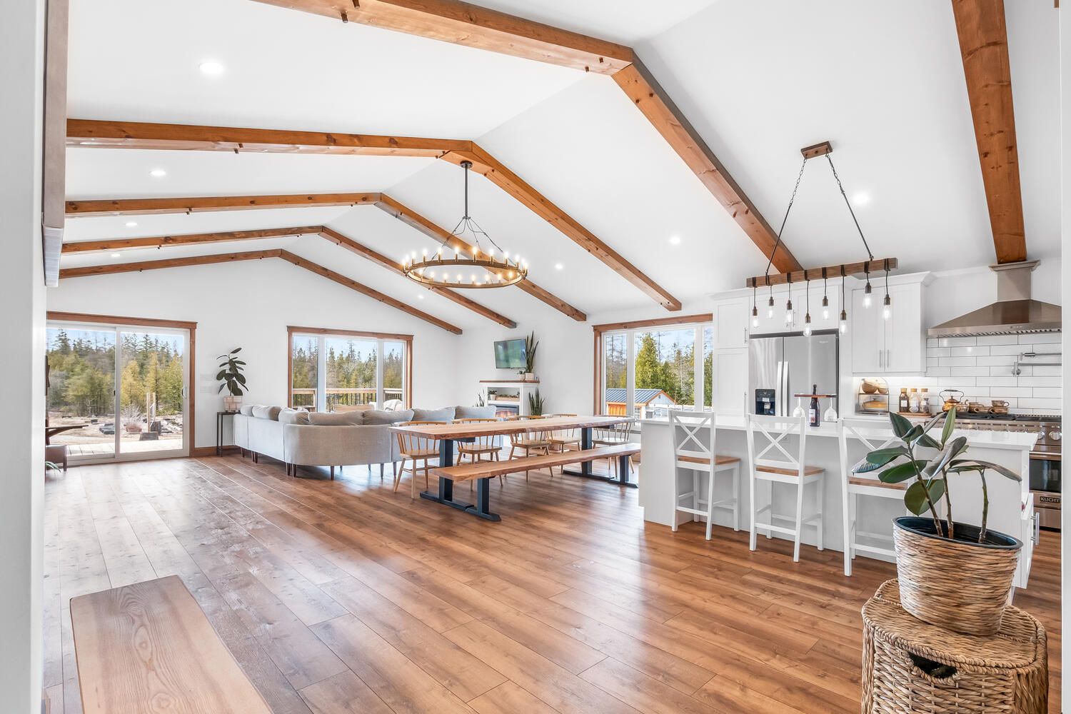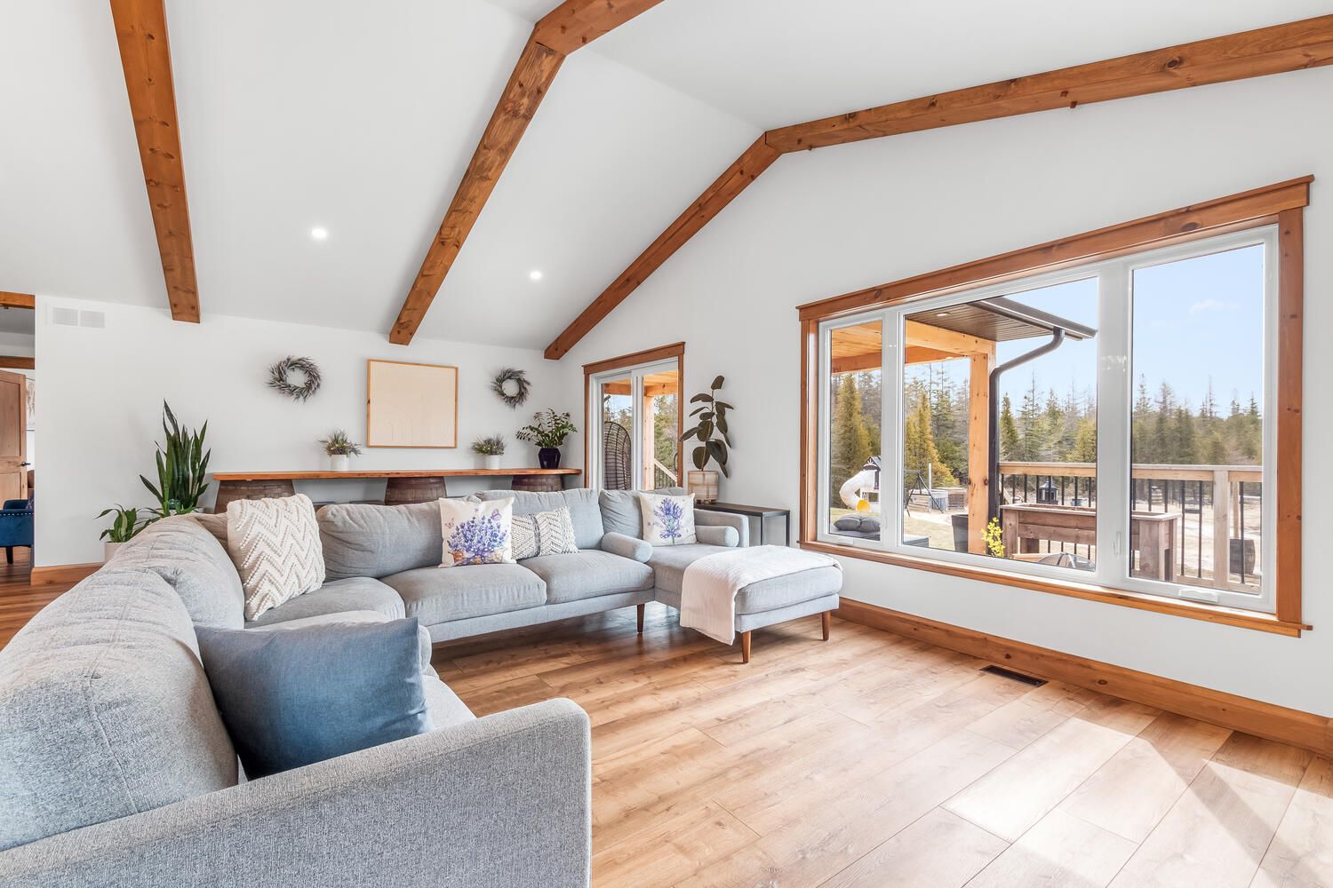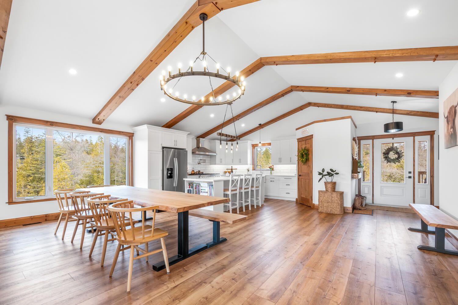 Welcome to your dream retreat on the stunning bruce peninsula. Tucked away on 5 private acres with scenic walking trails, this custom-built 2021 modern farmhouse blends rustic warmth with contemporary elegance. With 5 spacious bedrooms and 2. 5 baths, the open-concept layout is bright and airy with vaulted ceilings and premium finishes throughout. The heart of the home is a beautifully crafted chefs dream kitchen featuring a huge 8 burner double oven propane gas range, canadian-made cabinetry, a butler's pantry, and locally milled, live-edge wood shelving and bar.... Perfect for hosting or gathering with family. Throughout the home, handcrafted touches shine: local wood trim, beams, and solid doors, along with curated canadian-made furnishings. The serene primary suite is a true retreat with a luxurious 4-piece ensuite, soaker tub, and walk-in closet. A spacious laundry/office combo with walkout leads to a large covered back deck and clothesline for practical country living. Step outside to enjoy raised garden beds, chicken coops, and peaceful views of your own private acreage. Quonset hut for parking or storage. Just minutes from lake hurons crystal-clear waters, with whiskey harbour and pike bay nearby for beach days and unforgettable sunsets. Conveniently located approx. 20 mins to wiarton, 15 mins to lions head, and 45 mins to tobermory, you'll enjoy both privacy and access. So whether you're seeking a full-time home, vacation getaway, or artisan retreat, this one-of-a-kind property offers comfort, character, and a deep connection to nature.