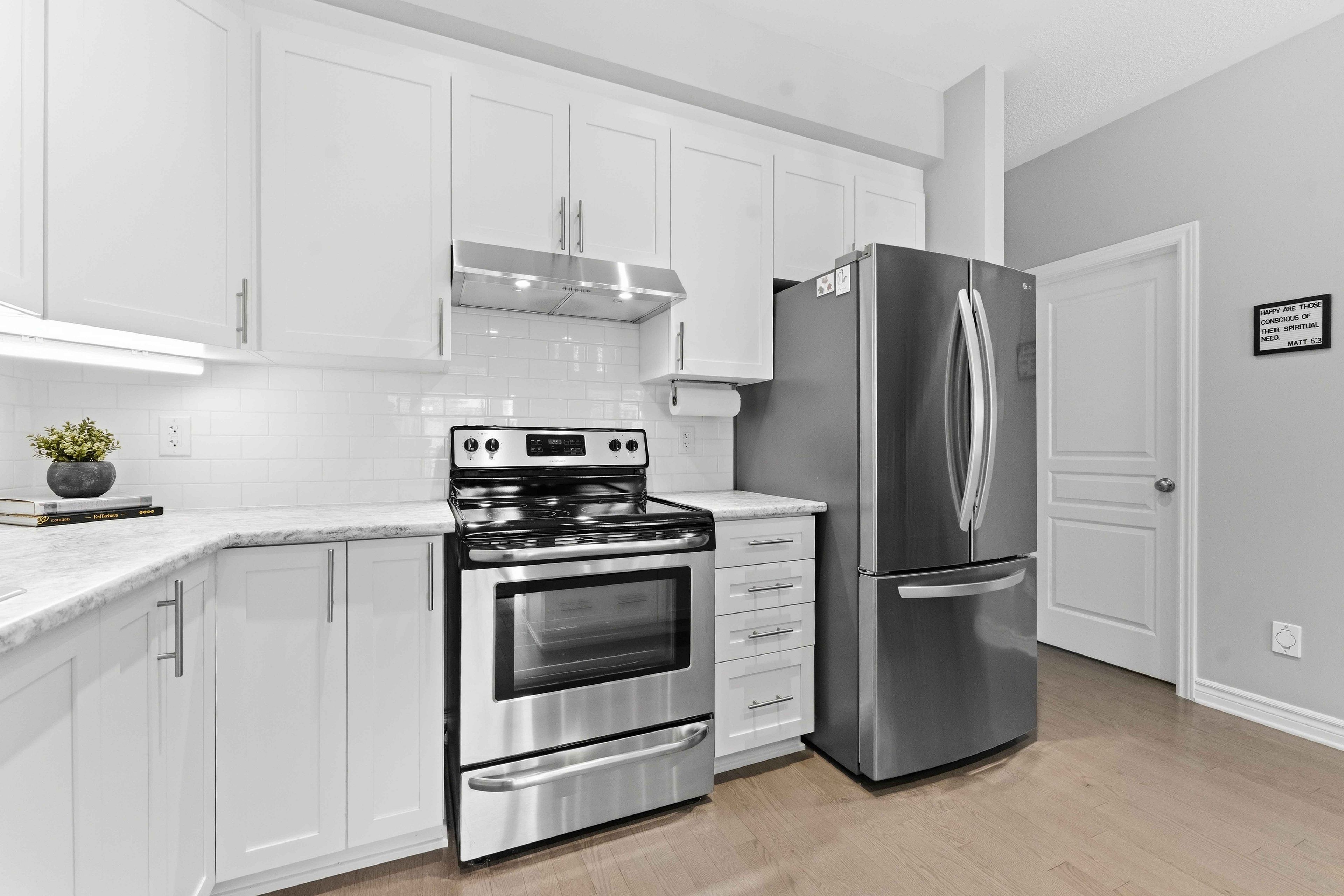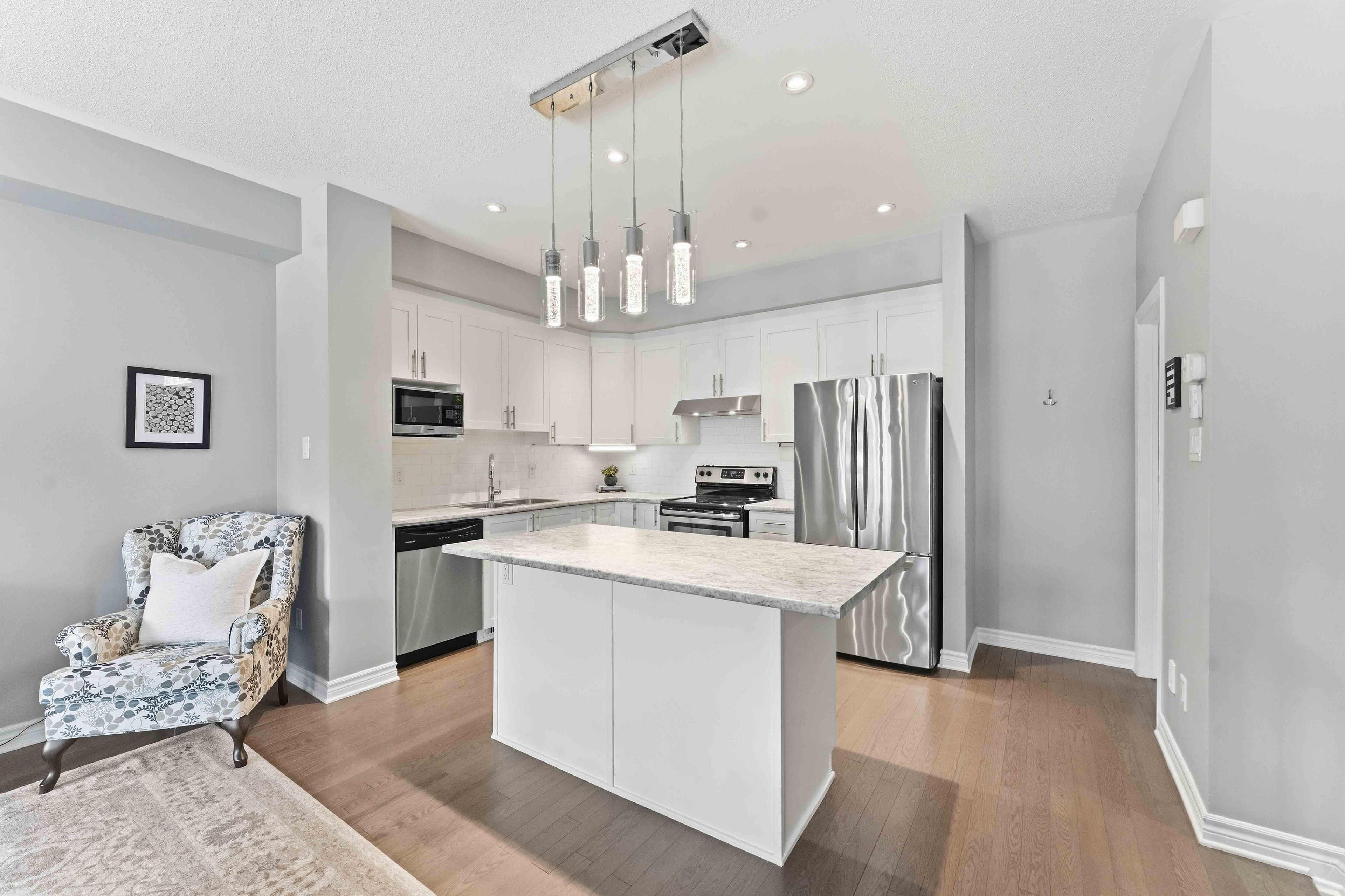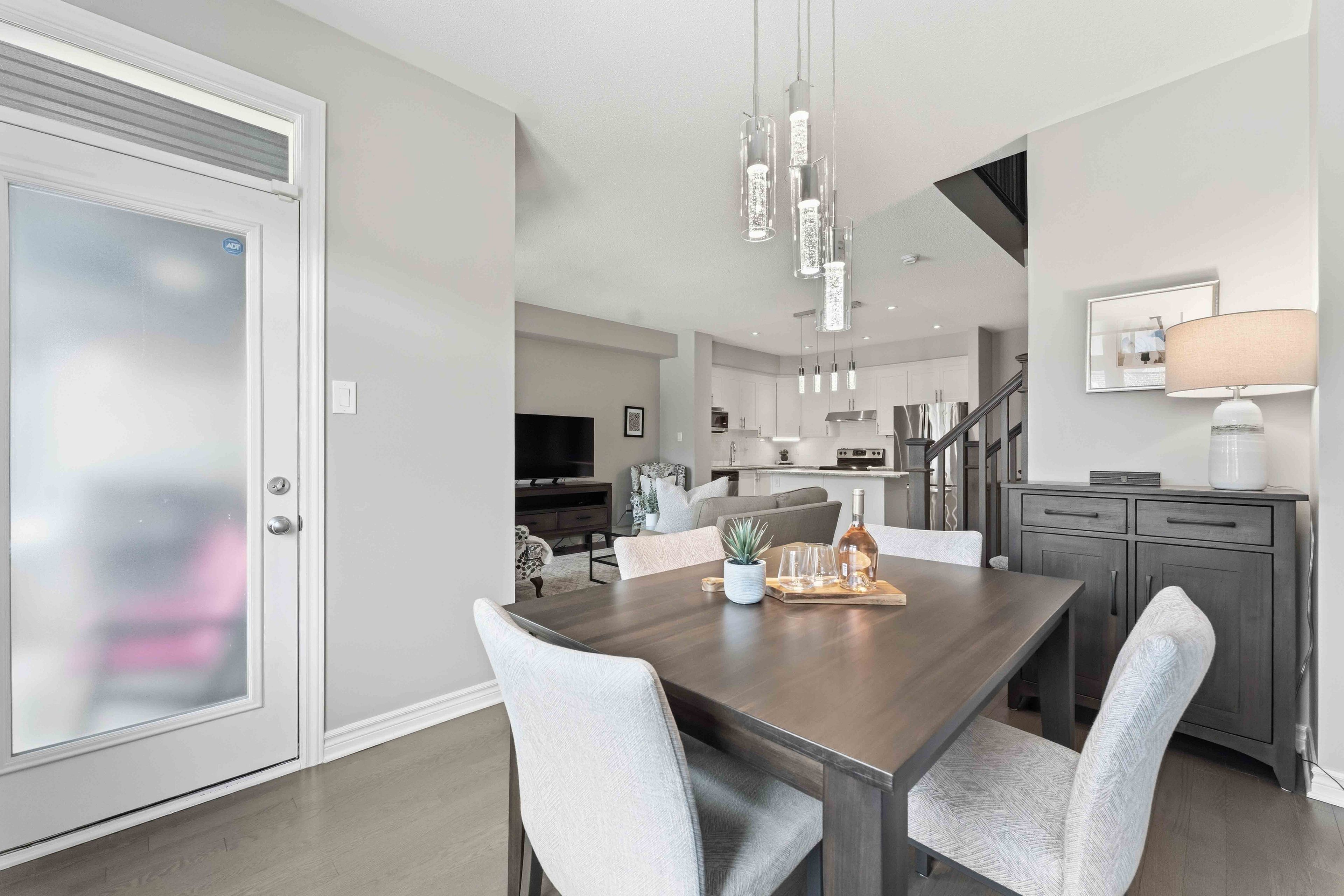 Open house thursday 5-7 and sunday 2-4! Welcome to this stunning richcraft end unit townhome, offering modern style, functional living & exceptional natural light throughout. The main level features a versatile den with hardwood flooring, perfect for a home office, gym, or flex space. The bright, open concept second level is designed for both everyday living and entertaining, highlighted by pot lights & beautiful hardwood floors. The contemporary kitchen boasts crisp white cabinetry, a spacious island with seating, and seamless flow into the dining and living areas. Step out onto your private balcony, ideal for morning coffee or evening relaxation. Upstairs, the third level continues with hardwood flooring and offers a generous primary bedroom complete with a walk-in closet and a private ensuite featuring a glass shower. One additional well-sized bedroom, a full main bathroom, and convenient third-floor laundry complete this level. The lower level provides ample storage space, while the extra long garage with built-in shelving adds practical functionality. The widened driveway with interlock allows for additional parking - a rare and valuable feature. Located in a highly desirable, transit-friendly community close to schools, shopping, restaurants, and recreation, this home offers the perfect blend of comfort, style, and convenience.