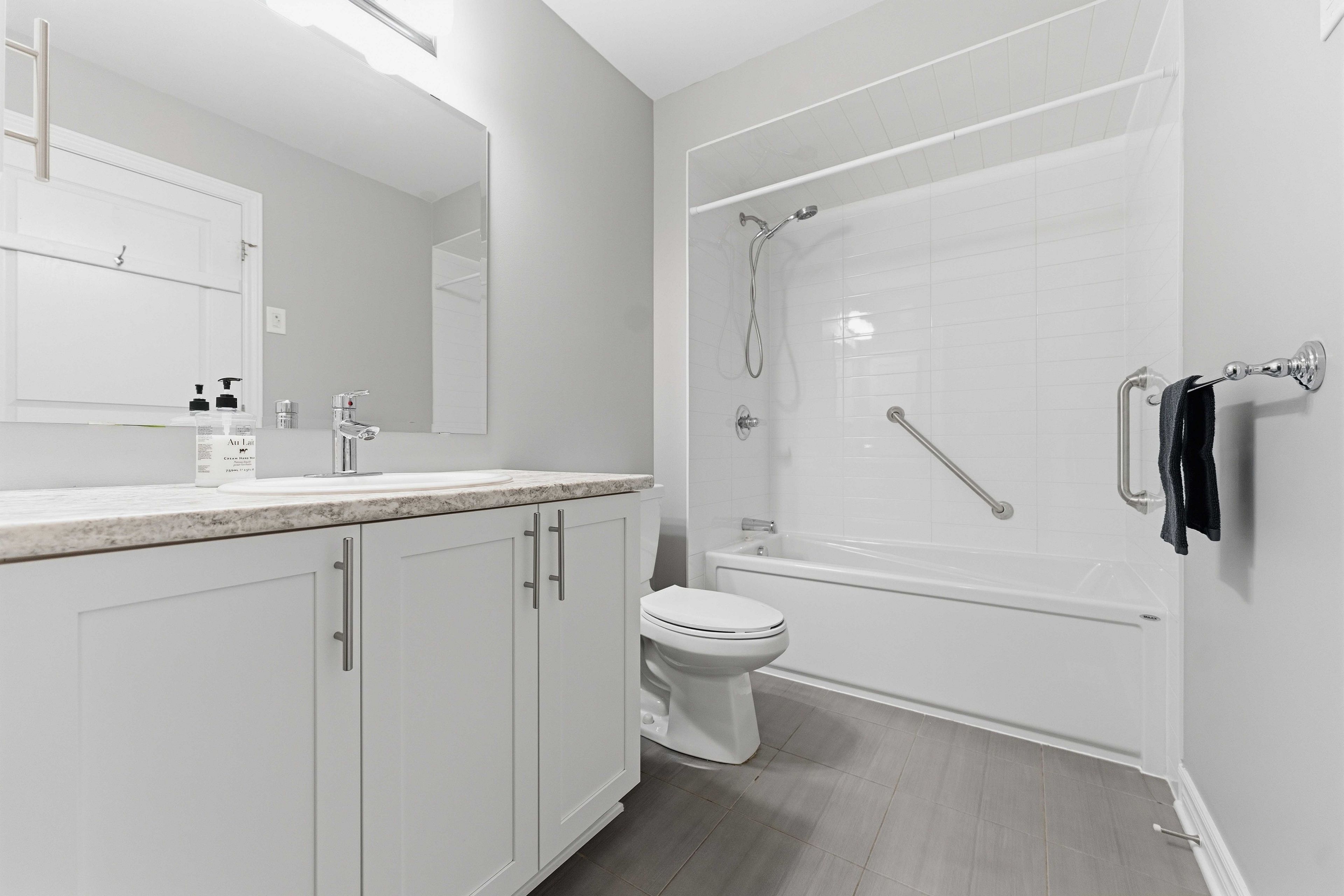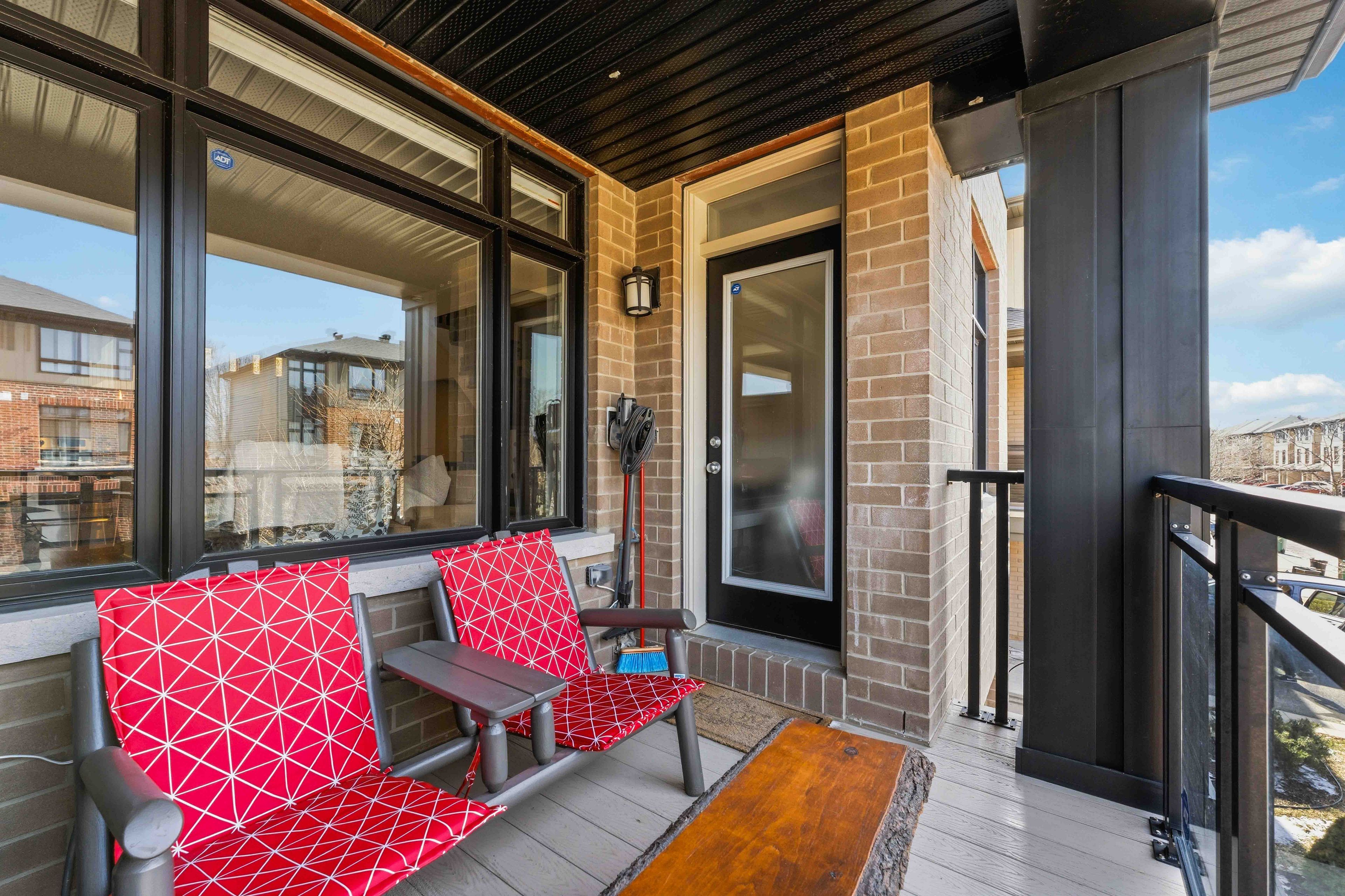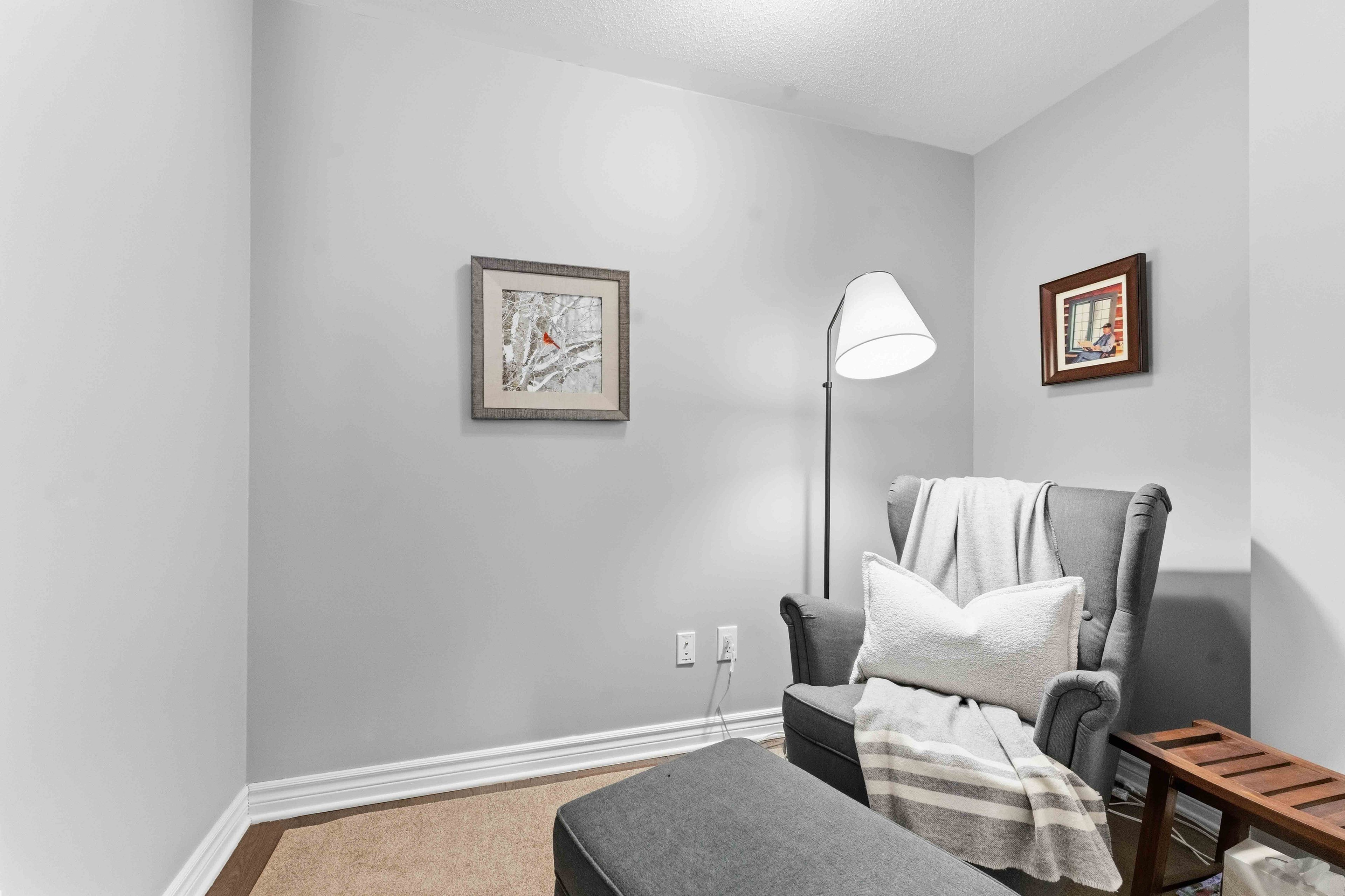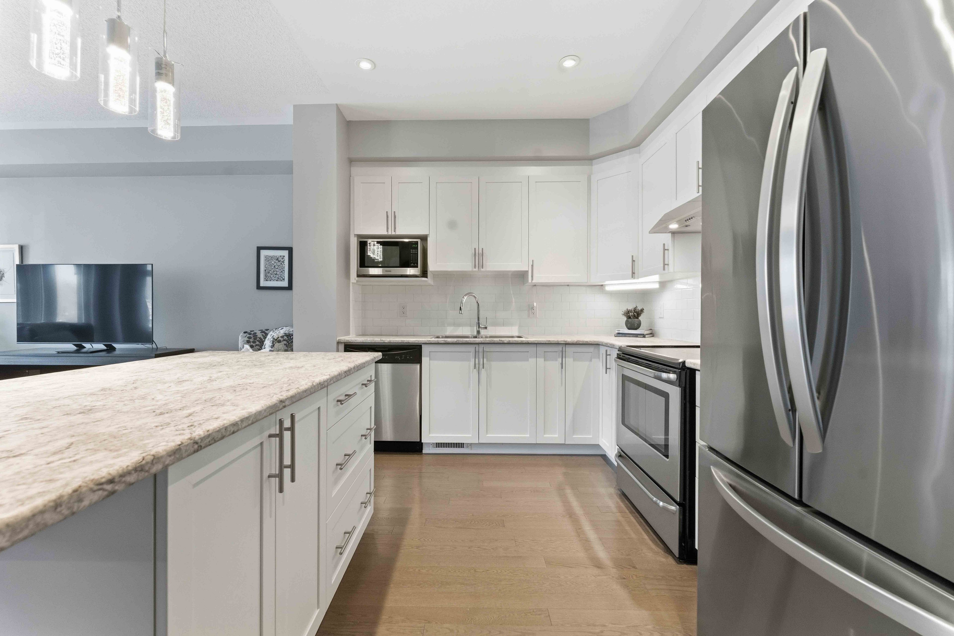 Open house thursday 5-7 and sunday 2-4! Welcome to this stunning richcraft end unit townhome, offering modern style, functional living & exceptional natural light throughout. The main level features a versatile den with hardwood flooring, perfect for a home office, gym, or flex space. The bright, open concept second level is designed for both everyday living and entertaining, highlighted by pot lights & beautiful hardwood floors. The contemporary kitchen boasts crisp white cabinetry, a spacious island with seating, and seamless flow into the dining and living areas. Step out onto your private balcony, ideal for morning coffee or evening relaxation. Upstairs, the third level continues with hardwood flooring and offers a generous primary bedroom complete with a walk-in closet and a private ensuite featuring a glass shower. One additional well-sized bedroom, a full main bathroom, and convenient third-floor laundry complete this level. The lower level provides ample storage space, while the extra long garage with built-in shelving adds practical functionality. The widened driveway with interlock allows for additional parking - a rare and valuable feature. Located in a highly desirable, transit-friendly community close to schools, shopping, restaurants, and recreation, this home offers the perfect blend of comfort, style, and convenience.