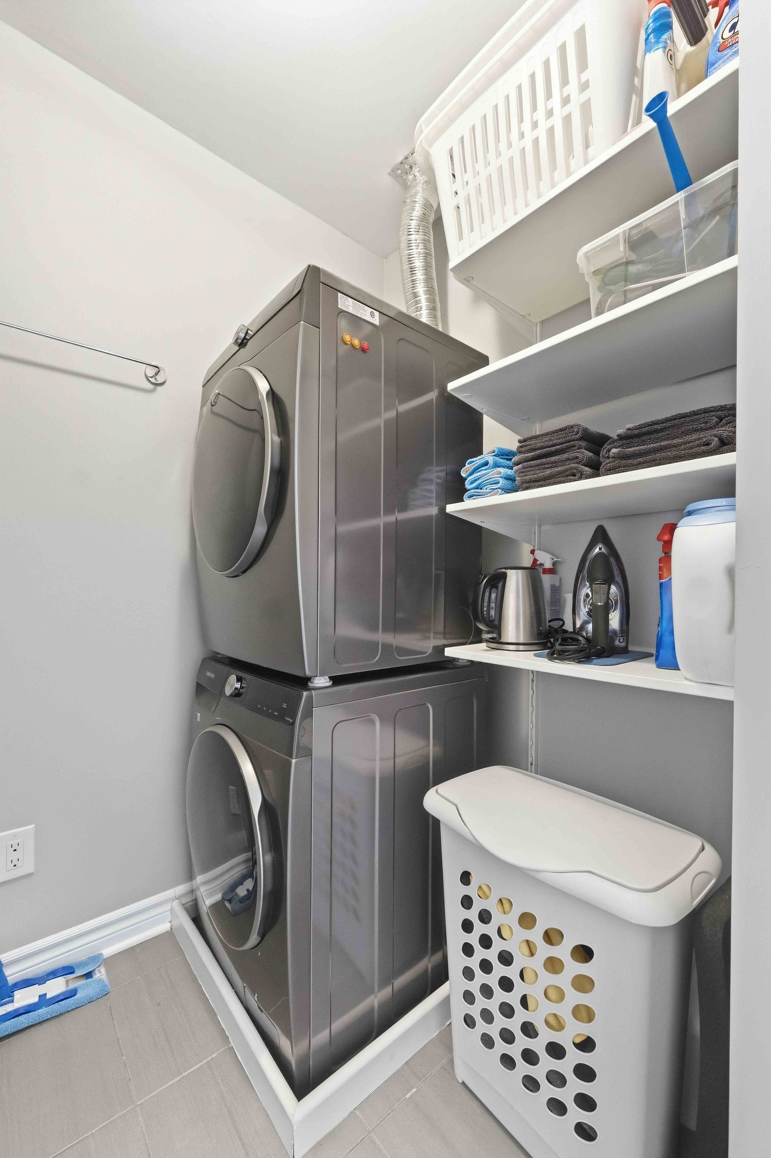 • Extra long garage with built-in shelving and interlock driveway for extra parking.