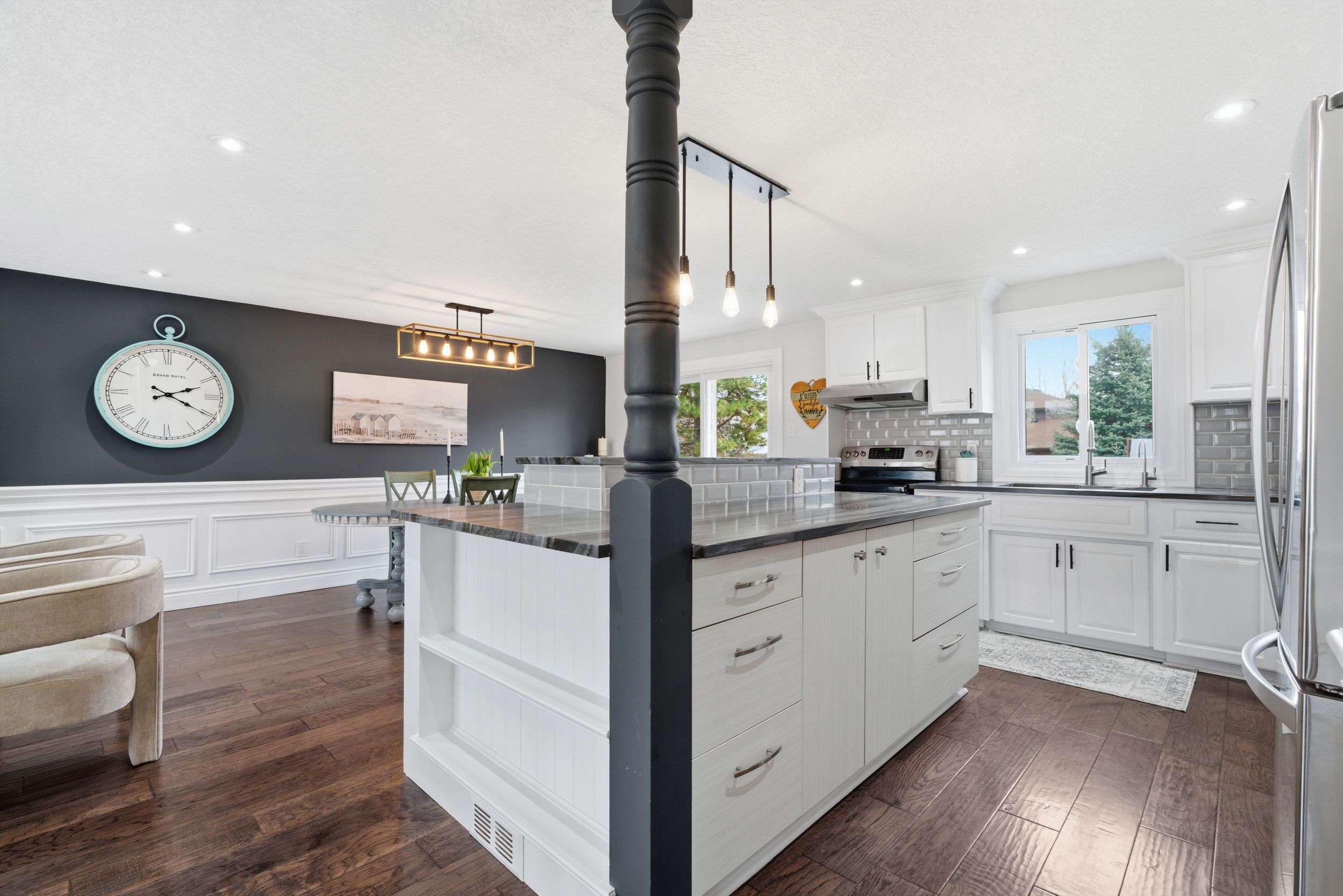 Welcome to this meticulously maintained and beautifully cared-for raised bungalow tucked away on a quiet road in the heart of the highly sought-after kortright west community. Homes here rarely come to market, set within one of the city's most desirable neighbourhoods where families stay for decades and roots run deep. This home offers exceptional curb appeal and true pride of ownership-peaceful, welcoming, and ideal for family living. Enjoy the perfect blend of comfort and convenience, close to everyday essentials, winding trails, schools, and offering effortless access to the hanlon and surrounding highways for easy commuting. Offering approximately 1,800 sq ft of finished living space (1,245. 88 sq ft above grade plus 556. 25 sq ft in the fully finished lower level), this bright and open home features 3 spacious bedrooms and 3 bathrooms with a functional layout designed for everyday family life and filled with natural light throughout. The finished basement is currently configured as an additional fourth bedroom but can easily be converted back into a generous rec room, offering flexibility to suit your needs and ideal space for visiting guests or in-laws. Step outside to a large, private backyard surrounded by mature trees-perfect for entertaining, children at play, or simply relaxing outdoors. A double car garage equipped with an ev charger adds everyday convenience and ample storage. A selection of indoor furnishings and outdoor amenities, including patio furniture, a trampoline, and a play structure, can be included in the sale, providing a convenient turnkey opportunity. Don't miss your chance to call one of guelph's most sought-after neighbourhoods home, where lifestyle and convenience truly meet.