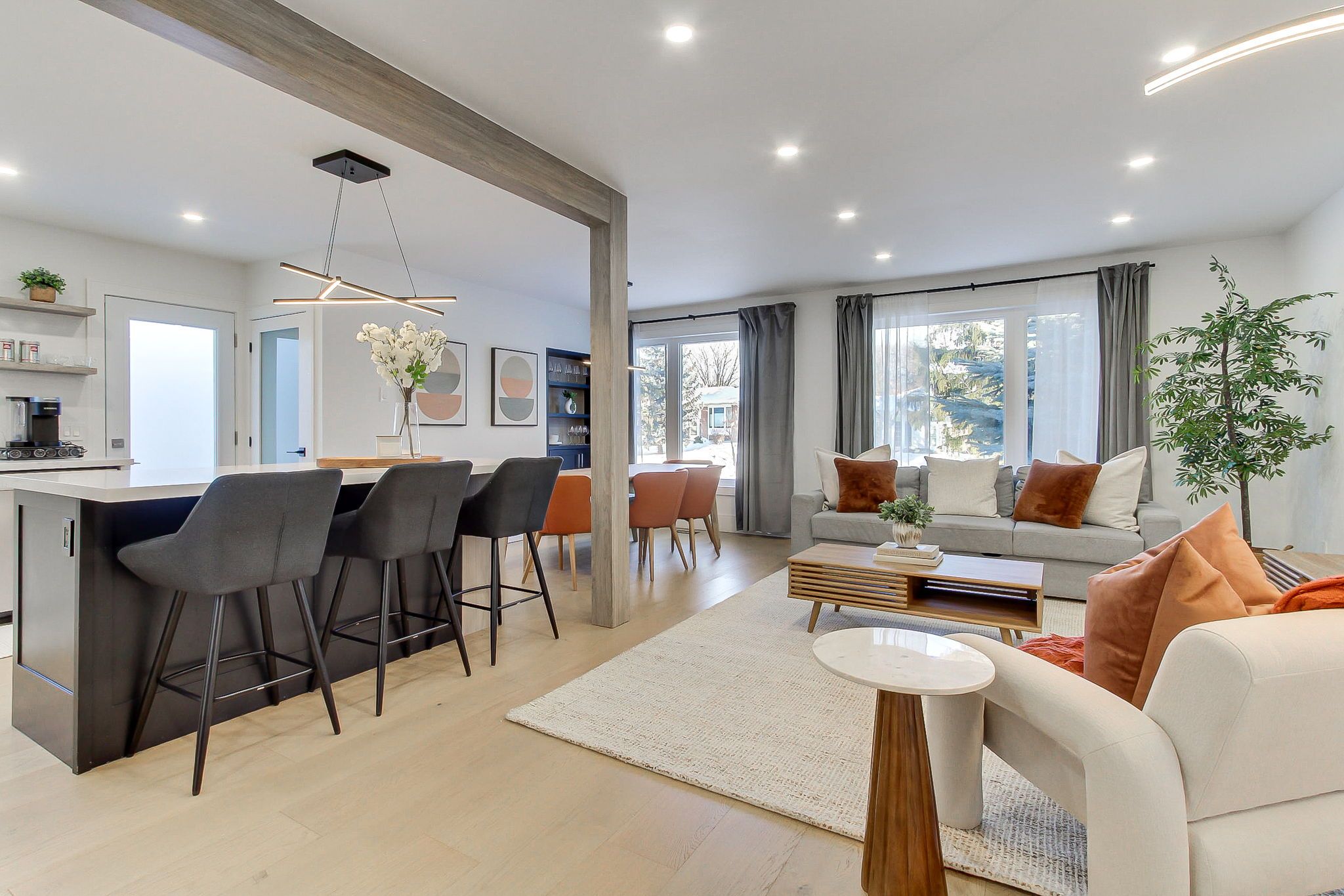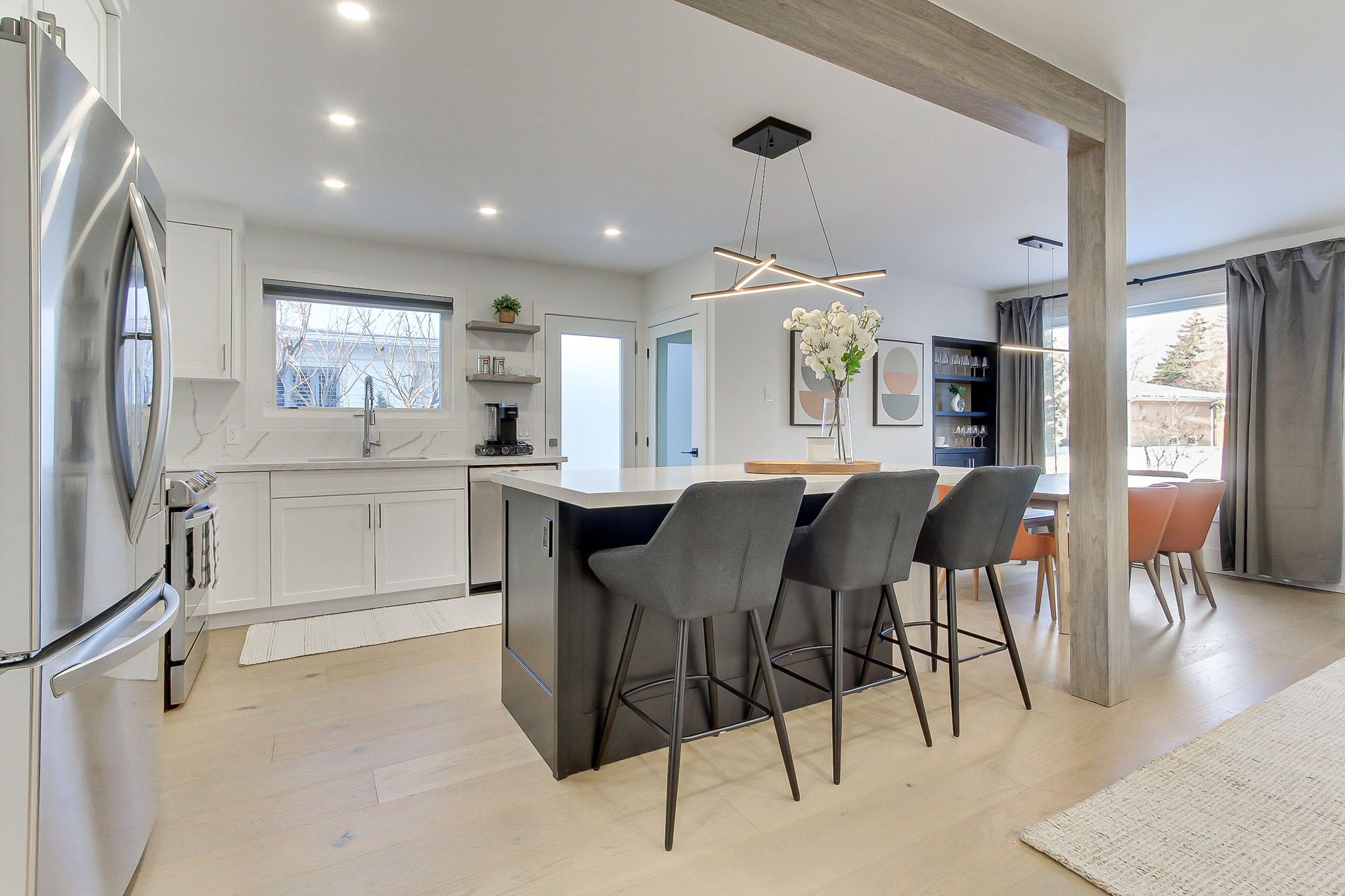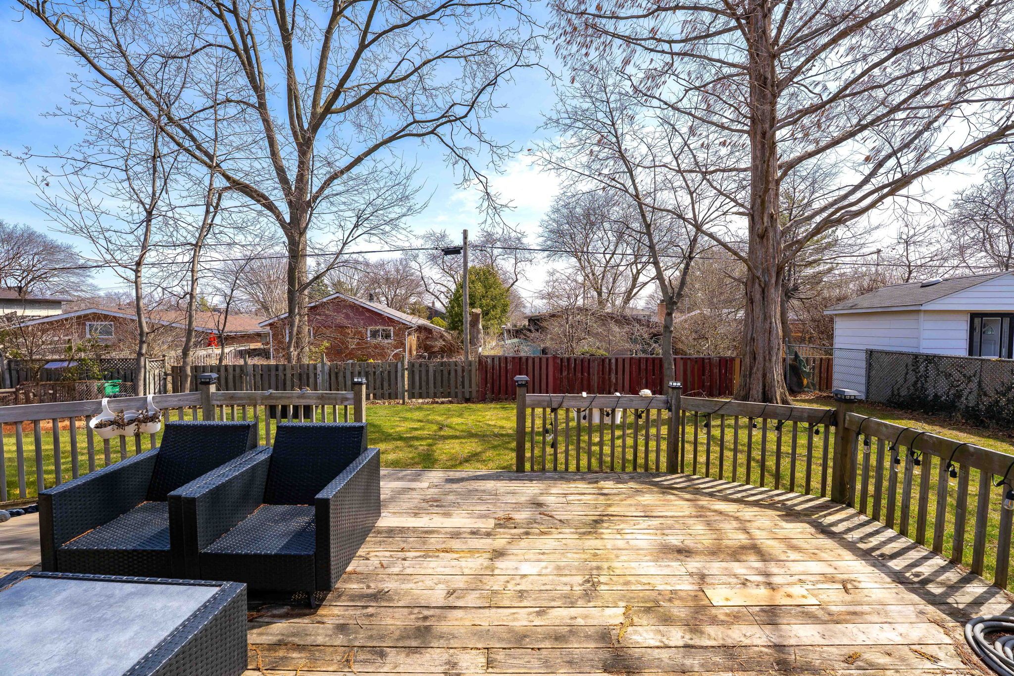 Welcome to 1070 franconia drive-an inviting home nestled in a desirable neighborhood where nature, comfort, and style blend seamlessly. As you arrive, you'll appreciatethe elegant curb appeal, landscaped front yard, an extended driveway that accommodates up to five cars, and an oversized garage. Situated on aunique pie-shaped lot that widens to about 61 feet in the back, this property offers mature trees and a spacious, private backyard in one of thecity's most sought-after neighborhoods. With approximately 2,500 sq. Ft. Of living space on a quiet, sidewalk-free street, this home truly standsout. The main floor invites you to a fluid open-concept design that effortlessly connects the living room, dining area, and a stunning modernkitchen. With hardwood floors throughout, oversized windows, and warm contemporary finishes, the atmosphere is both inviting and ideal foreveryday living and entertaining. The thoughtfully designed kitchen features a breakfast island, ample cabinetry, and outstandingfunctionality. The main level comprises three generous bedrooms, including a serene primary retreat with a private ensuite bathroom and directaccess to a large deck overlooking the expansive private backyard. Two additional bedrooms are discreetly located away from the main livingareas, providing added privacy, and are conveniently served by a full bathroom-ideal for family living. A separate side entrance off the kitchenoffers exceptional versatility, leading to a welcoming lower level with high ceilings, kitchen space, spacious media and game rooms, a four-piecebath, and two large rooms suitable for bedrooms or home offices-ideal for guests, extended family, or flexible living arrangements.