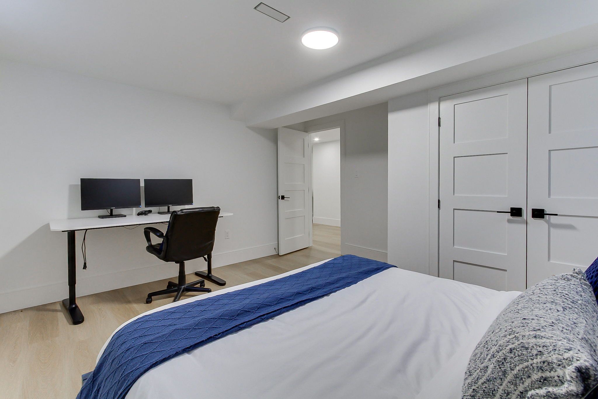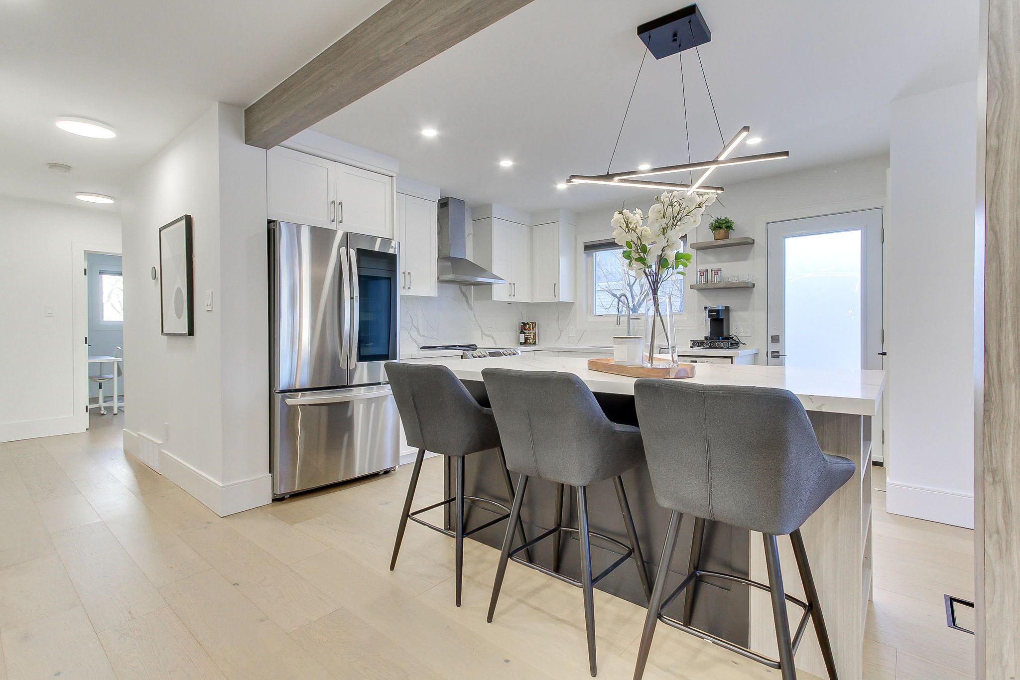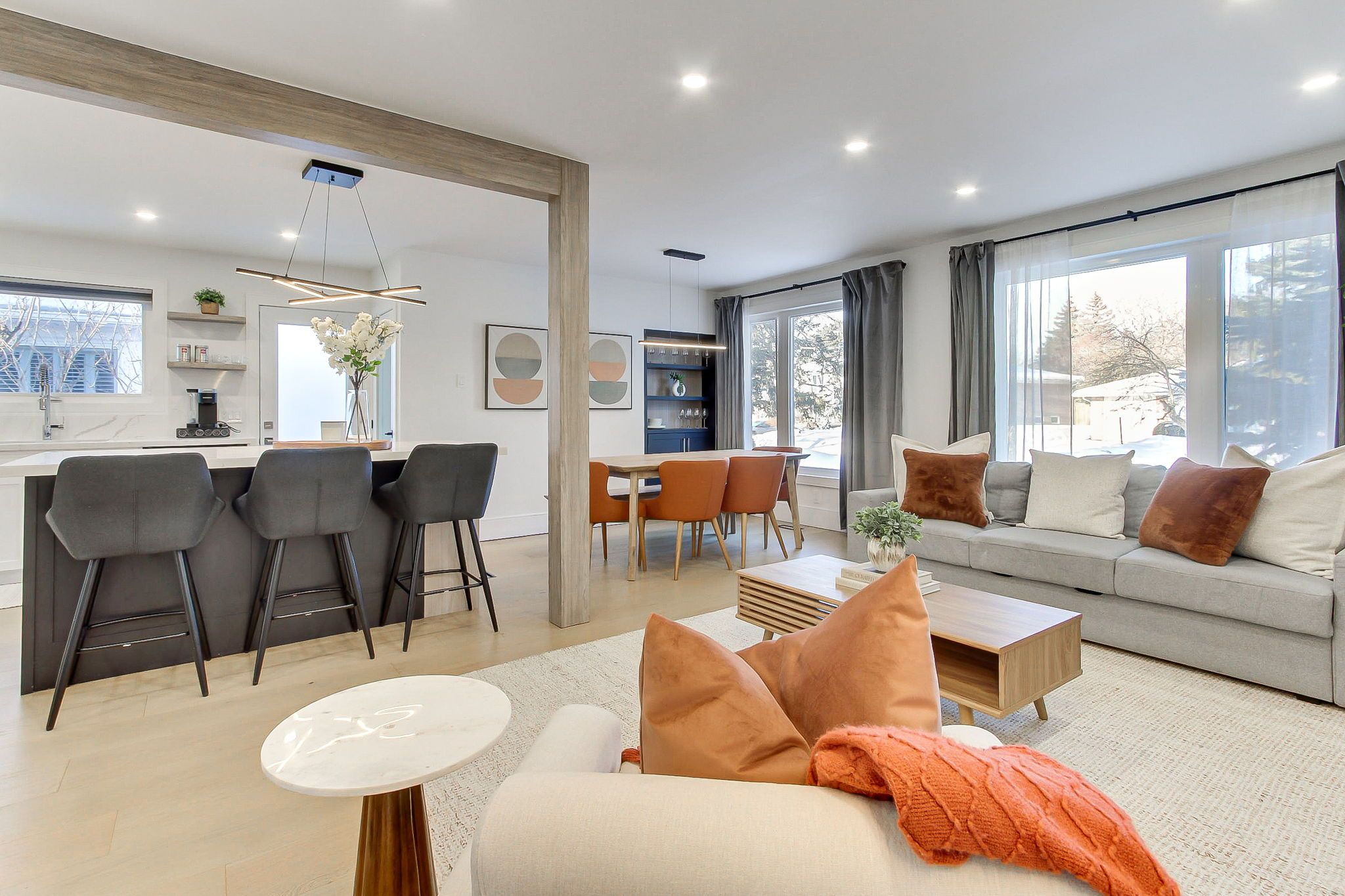 Welcome to 1070 franconia drive-an inviting home nestled in a desirable neighborhood where nature, comfort, and style blend seamlessly. As you arrive, you'll appreciatethe elegant curb appeal, landscaped front yard, an extended driveway that accommodates up to five cars, and an oversized garage. Situated on aunique pie-shaped lot that widens to about 61 feet in the back, this property offers mature trees and a spacious, private backyard in one of thecity's most sought-after neighborhoods. With approximately 2,500 sq. Ft. Of living space on a quiet, sidewalk-free street, this home truly standsout. The main floor invites you to a fluid open-concept design that effortlessly connects the living room, dining area, and a stunning modernkitchen. With hardwood floors throughout, oversized windows, and warm contemporary finishes, the atmosphere is both inviting and ideal foreveryday living and entertaining. The thoughtfully designed kitchen features a breakfast island, ample cabinetry, and outstandingfunctionality. The main level comprises three generous bedrooms, including a serene primary retreat with a private ensuite bathroom and directaccess to a large deck overlooking the expansive private backyard. Two additional bedrooms are discreetly located away from the main livingareas, providing added privacy, and are conveniently served by a full bathroom-ideal for family living. A separate side entrance off the kitchenoffers exceptional versatility, leading to a welcoming lower level with high ceilings, kitchen space, spacious media and game rooms, a four-piecebath, and two large rooms suitable for bedrooms or home offices-ideal for guests, extended family, or flexible living arrangements.