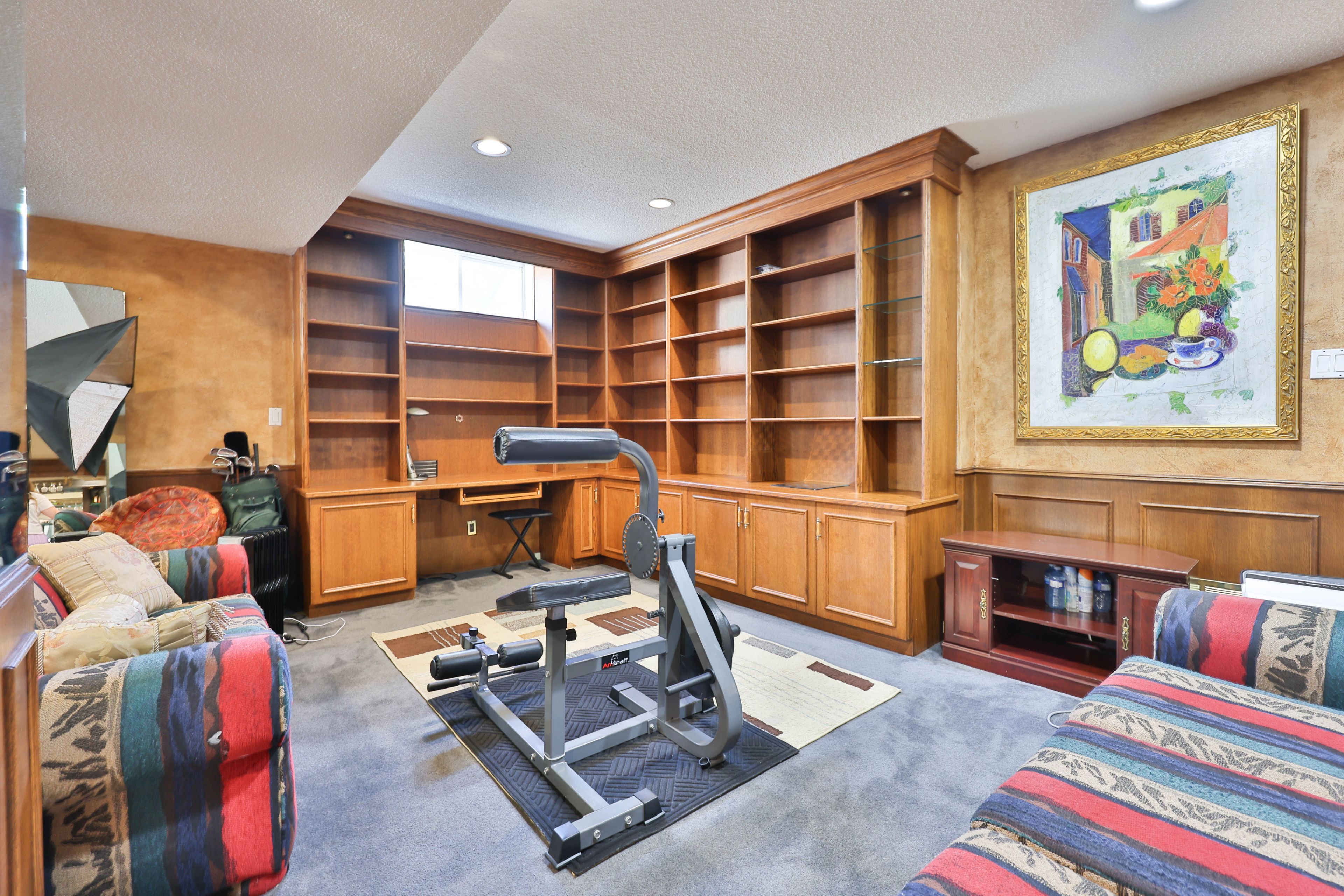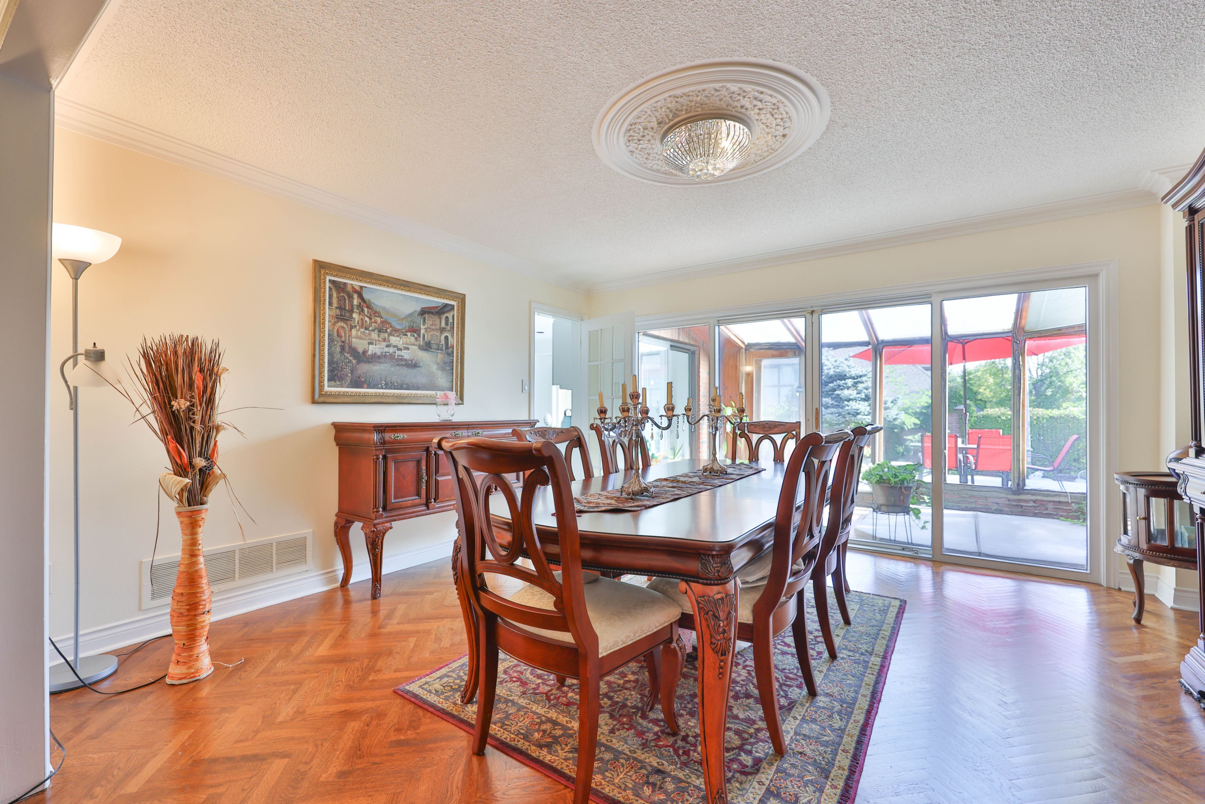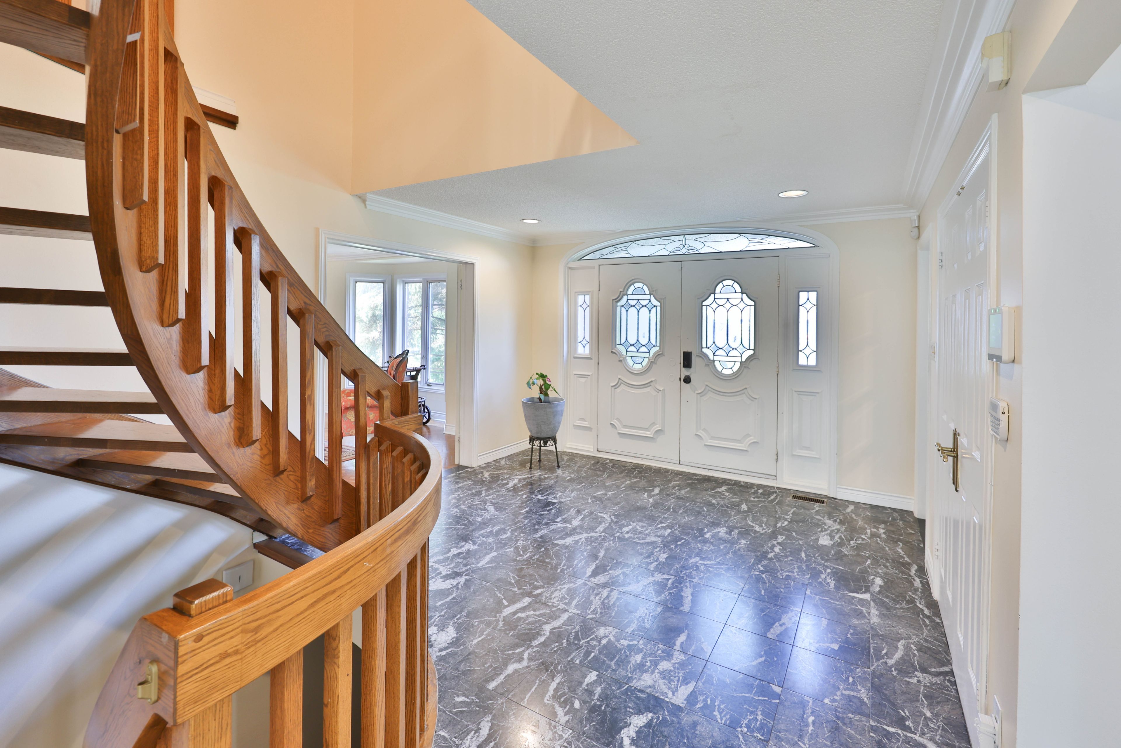 Nestled in one of mississaugas most desirable communities, just moments from the prestigious mississauga golf and country club, this stately residence offers timeless appeal and exceptional space for both family living and grand entertaining. Built with enduring quality and traditional craftsmanship, the home combines elegance with comfort, creating the perfect setting for a lifetime of memories. Upon entry, guests are greeted by luxurious marble floors that set a tone of refinement throughout. The main level boasts striking marble-clad fireplaces and classic herringbone wood floors that flow seamlessly through the formal living, dining, and family rooms. A dedicated home office, enhanced with rich custom built-ins and a charming bay window overlooking the tree-lined street, provides an inviting and private workspace filled with natural light. A thoughtfully designed laundry room with built-in storage is also located on this level, adding practicality and ease to daily living. The generous layout offers four bedrooms and five bathrooms, each thoughtfully designed with ample space and classic proportions. Large principal rooms lend themselves beautifully to gatherings, celebrations, and quiet family evenings alike. The lower level is equally impressive. A finished walk-out basement with soaring 9-foot ceilings expands the home's versatility, featuring a second kitchen, wet bar, fully functional sauna, exercise room, and abundant natural light. This level is ideal for extended family, guests, or as a hub for entertaining on a grand scale. Practical features such as a large garage further enhance the homes appeal, providing ample space for vehicles, storage, or hobby use. While beautifully maintained, the residence also presents an exciting opportunity to infuse modern updates and personal touches, ensuring its timeless foundation is complemented by contemporary style.