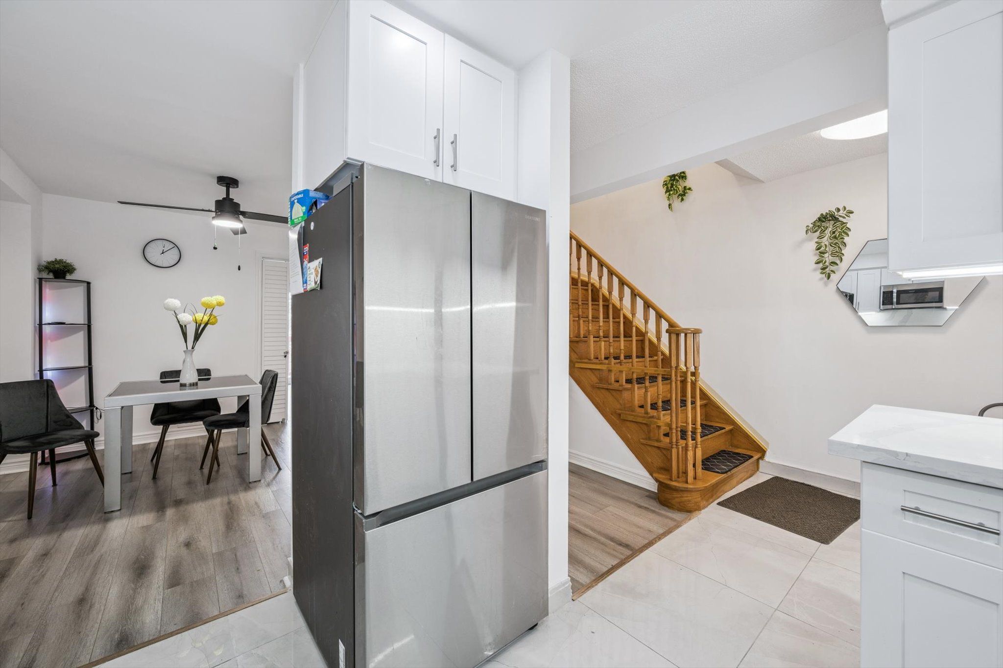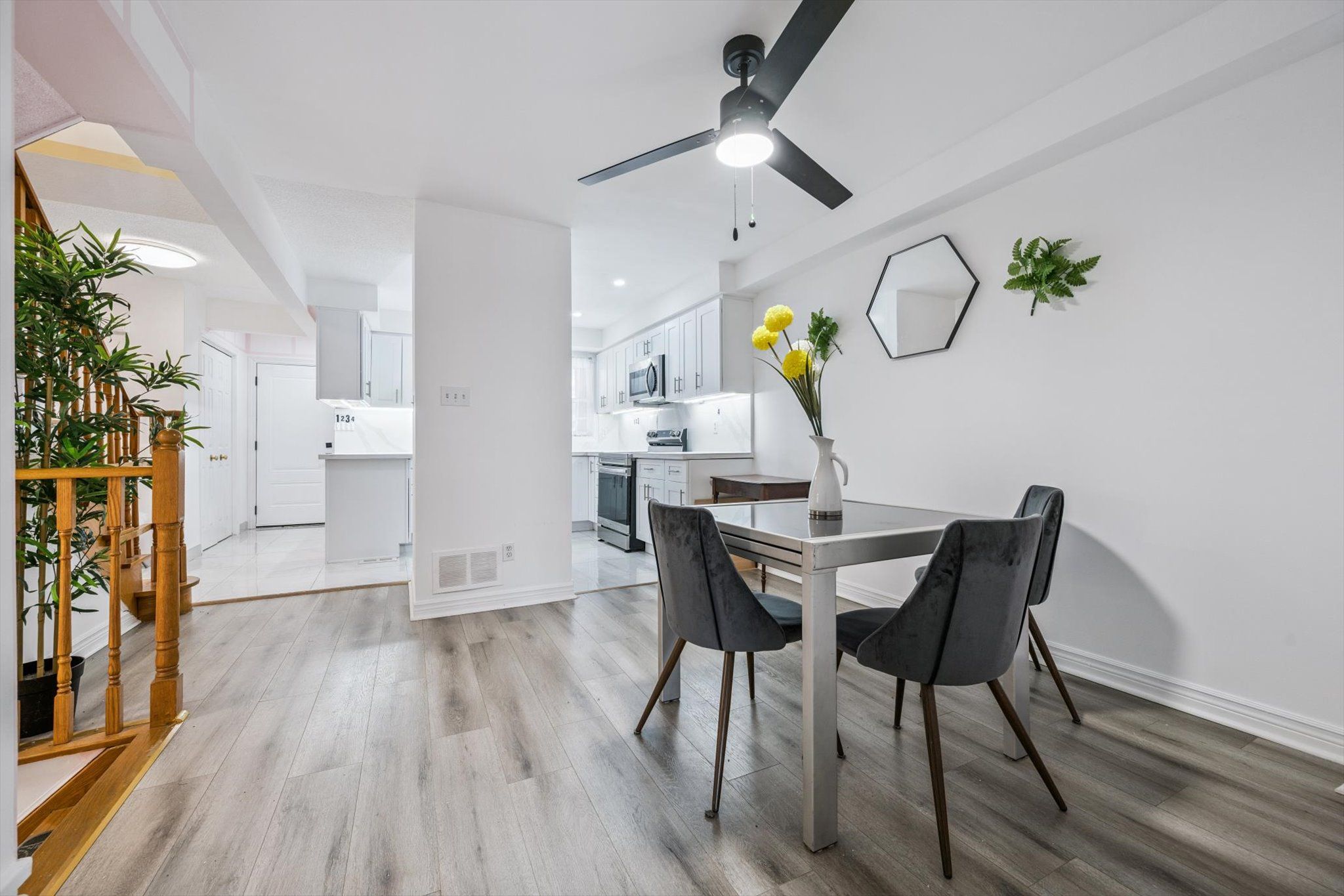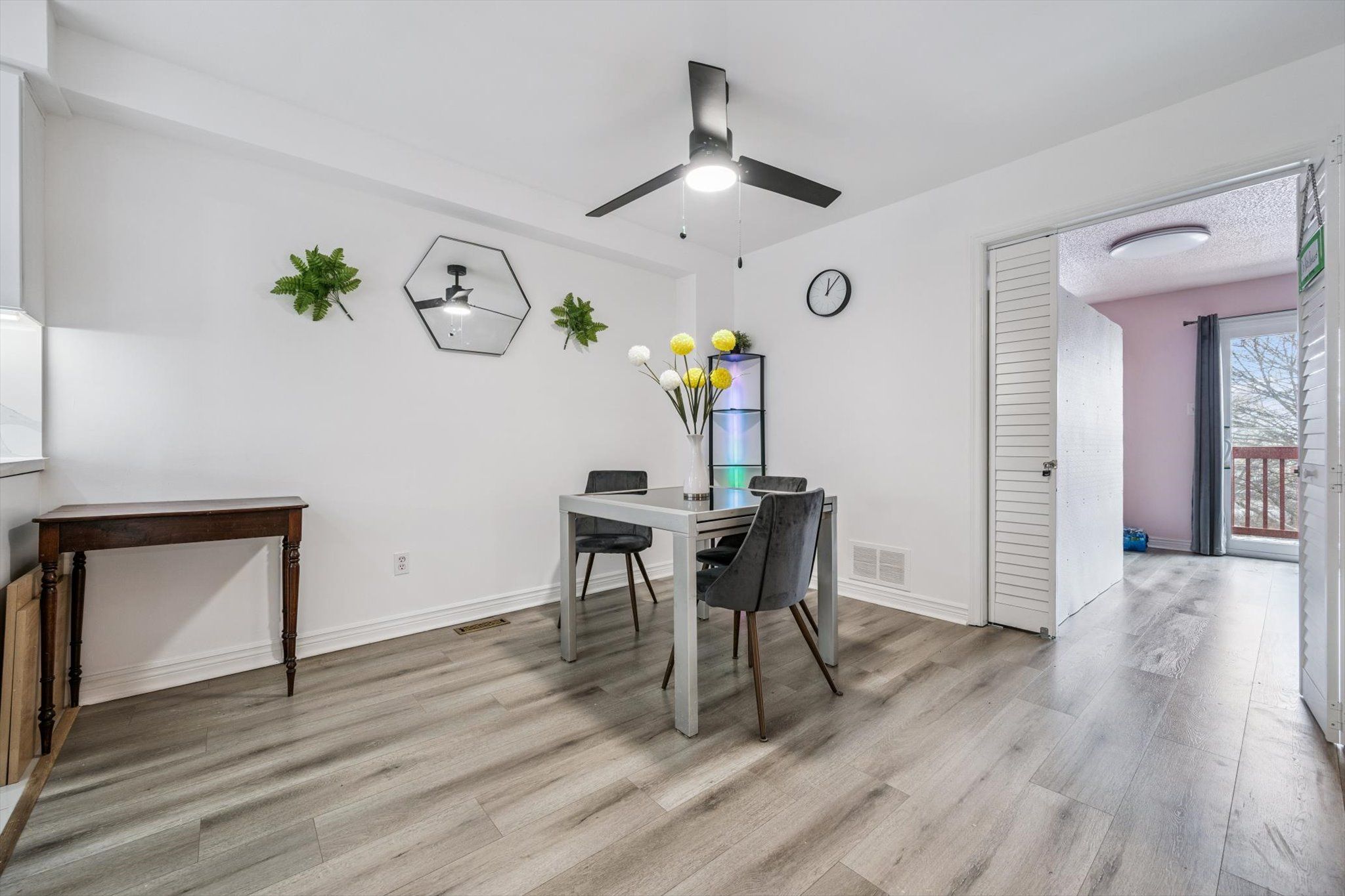 Beautifully updated 3-bedroom, 3-bathroom townhome offering a highly functional layout and an exceptionally deep lot. The main floor features an open-concept kitchen and dining area, a convenient powder room, anda bright living room with a walk-out to a spacious south-facing deck, perfect for enjoying sunlight throughout the day. Upstairs, you will find two generously sized bedrooms and a 4-piece bathroom. The fully finished lower level includes a third bedroom with a walk-out to the patio and an impressive 237-foot-deep lot backing onto green space. This level also offers a dedicated office, a 4-piece bathroom, and a laundry room. There is interior access to the attached single-car garage for added convenience. Recent upgrades completed in 2024-2025 include a fully renovated kitchen with new cabinetry, quartz countertops, backsplash, and appliances, laminate flooring with cork soundproof underlay throughout, and a new roof. Ideally located within walking distance to shopping/dining, great schools, medical centres, parks and bike trails. Minutes to oakville place mall, sheridan college, oakville go station, viarail and oakville golf club. A fantastic opportunity in a well-established and convenient oakville neighbourhood. The property is currently operated as a short-term rental.