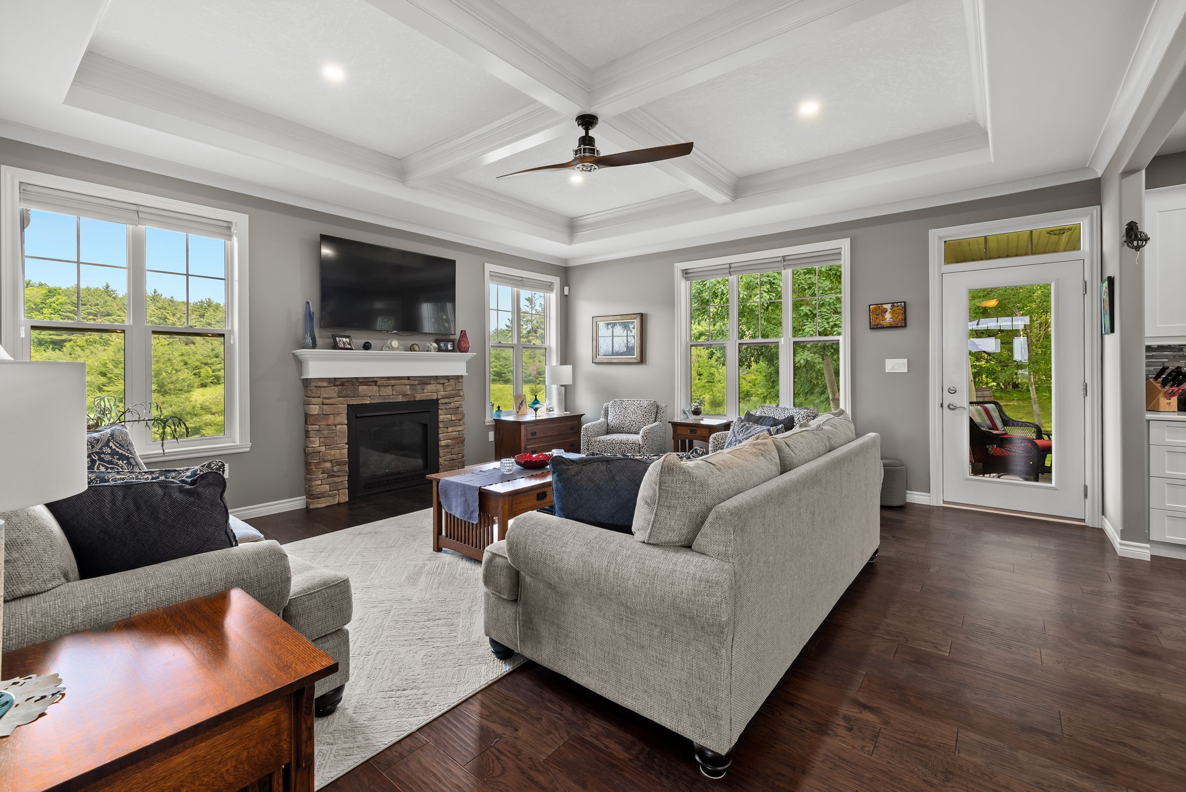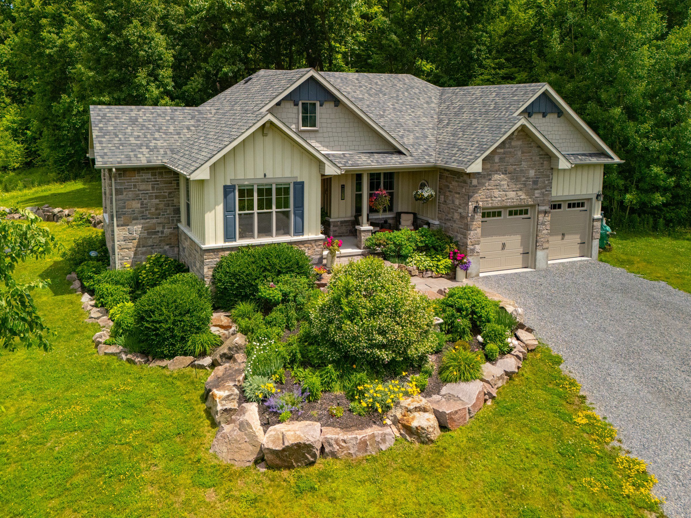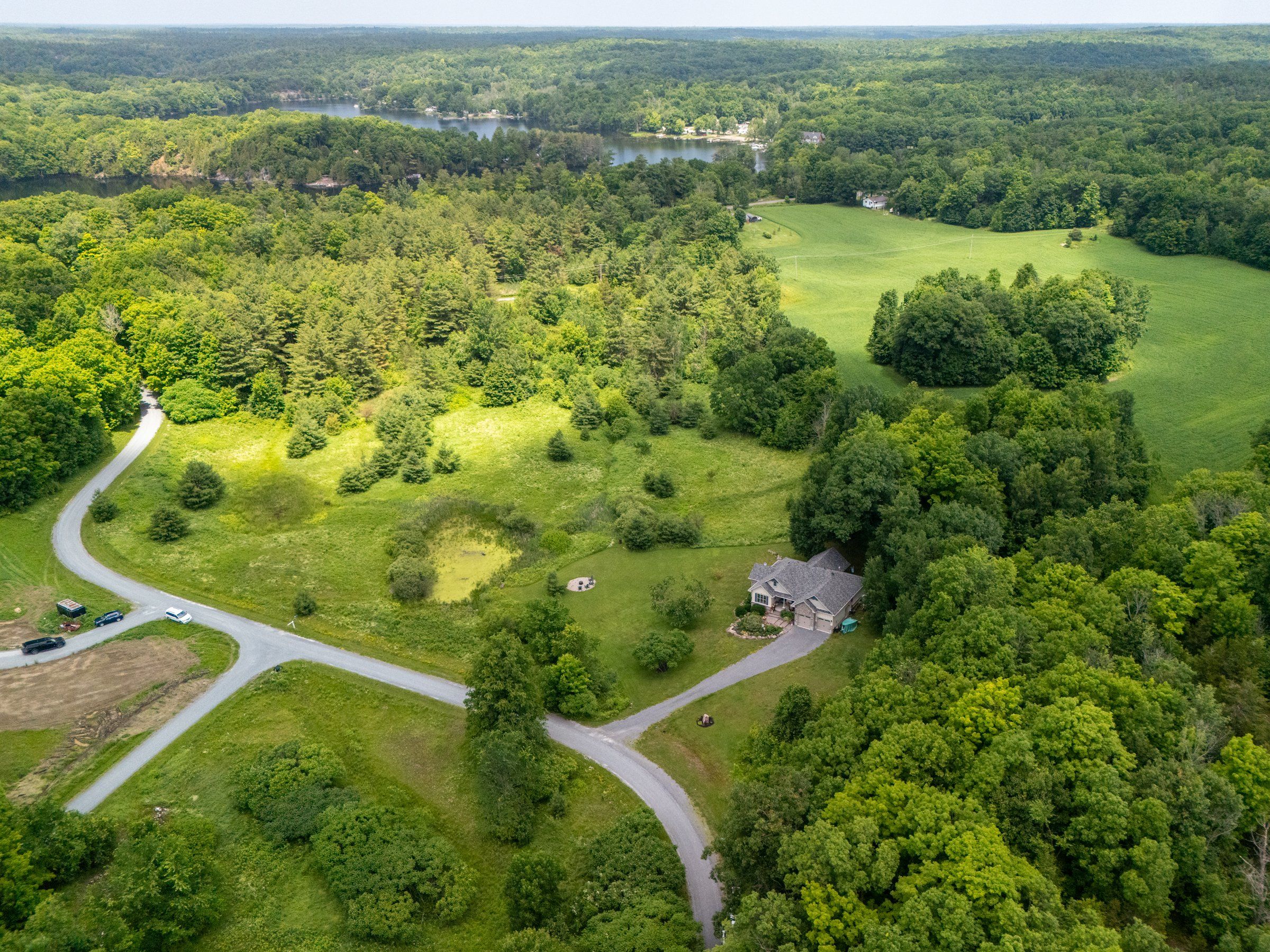 Welcome to this custom-built bungalow set on 4. 52 private acres in the desirable cranberry cove estates. With views of cranberry lake, your own pond, and a wooded backdrop, this home offers peace, privacy, and space to enjoy every season. The main level features 3 bedrooms, including a beautiful primary suite with walk-in closet and a 5-piece ensuite with soaker tub and glass shower. Tall ceilings, 8' doorways and large windows bring in natural light throughout. The great room and dining area are accented by 10 coffered ceilings, crown molding, wide-plank hickory hardwood, and a gas fireplace with stone surround. At the heart of the home, the chefs kitchen is both functional and high-end quartz countertops, shaker cabinets, tiled backsplash, and a massive 8' island with prep sink. Premium appliances include a 36 gas cooktop, double wall ovens, wine fridge, french-door refrigerator, micro drawer, and two dishwashers. Two car garage with entrance through the mud room. Downstairs, the fully finished basement nearly doubles your living space with 2 additional bedrooms, a full bathroom, a family room, games area, dry bar, home gym, and plenty of storage. Shouldice stone and board and batten exterior. Step outside and enjoy the surroundings: a covered front porch with lake views and rock gardens, and a large covered back deck overlooking your own pond and the forest. There's even a fire pit area perfect for relaxing to the sound of frogs at dusk. With over 3,400 sq. Ft. Of finished living space, custom finishes throughout, and only 35 minutes to kingston, this is the rare rural retreat that truly has it all.