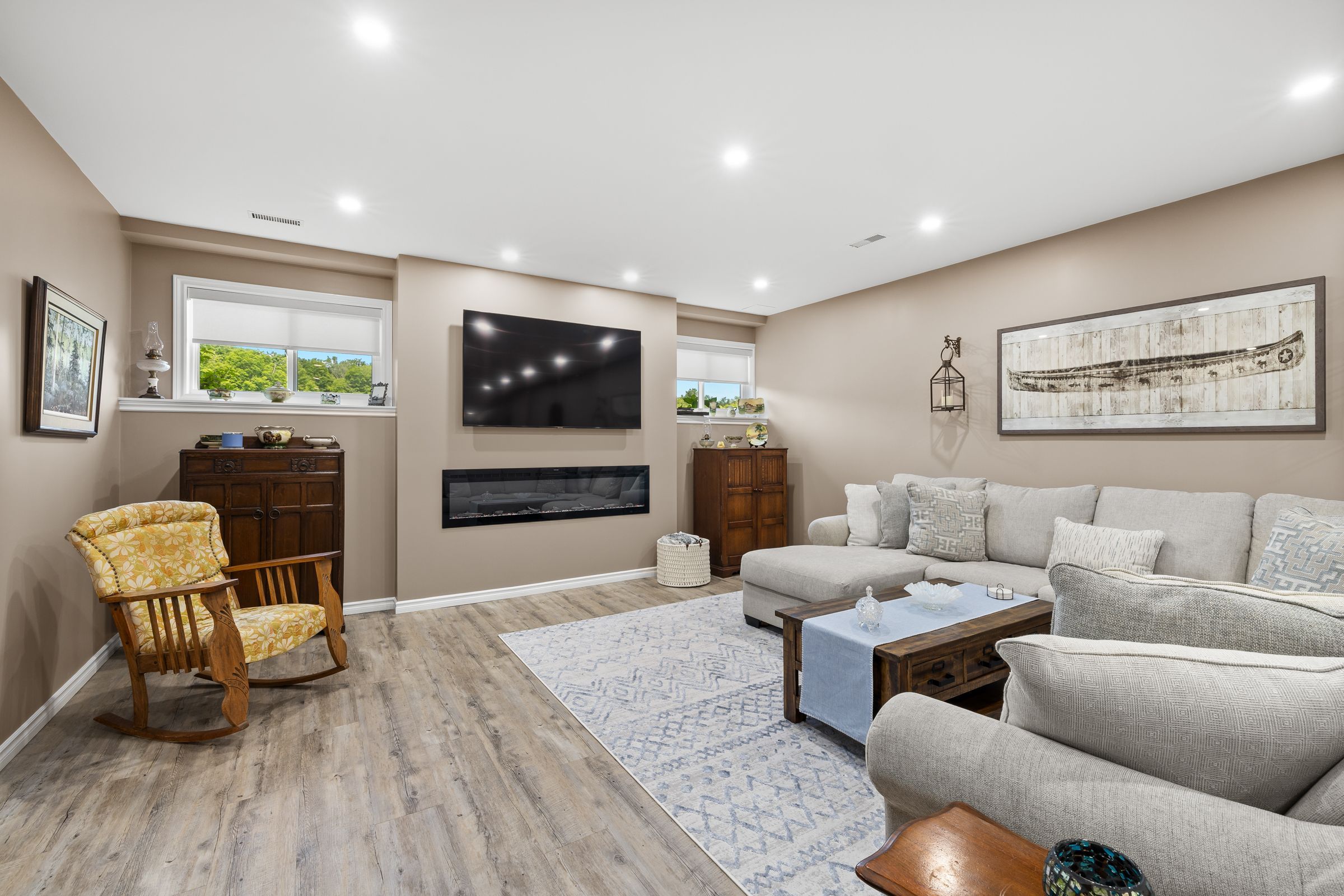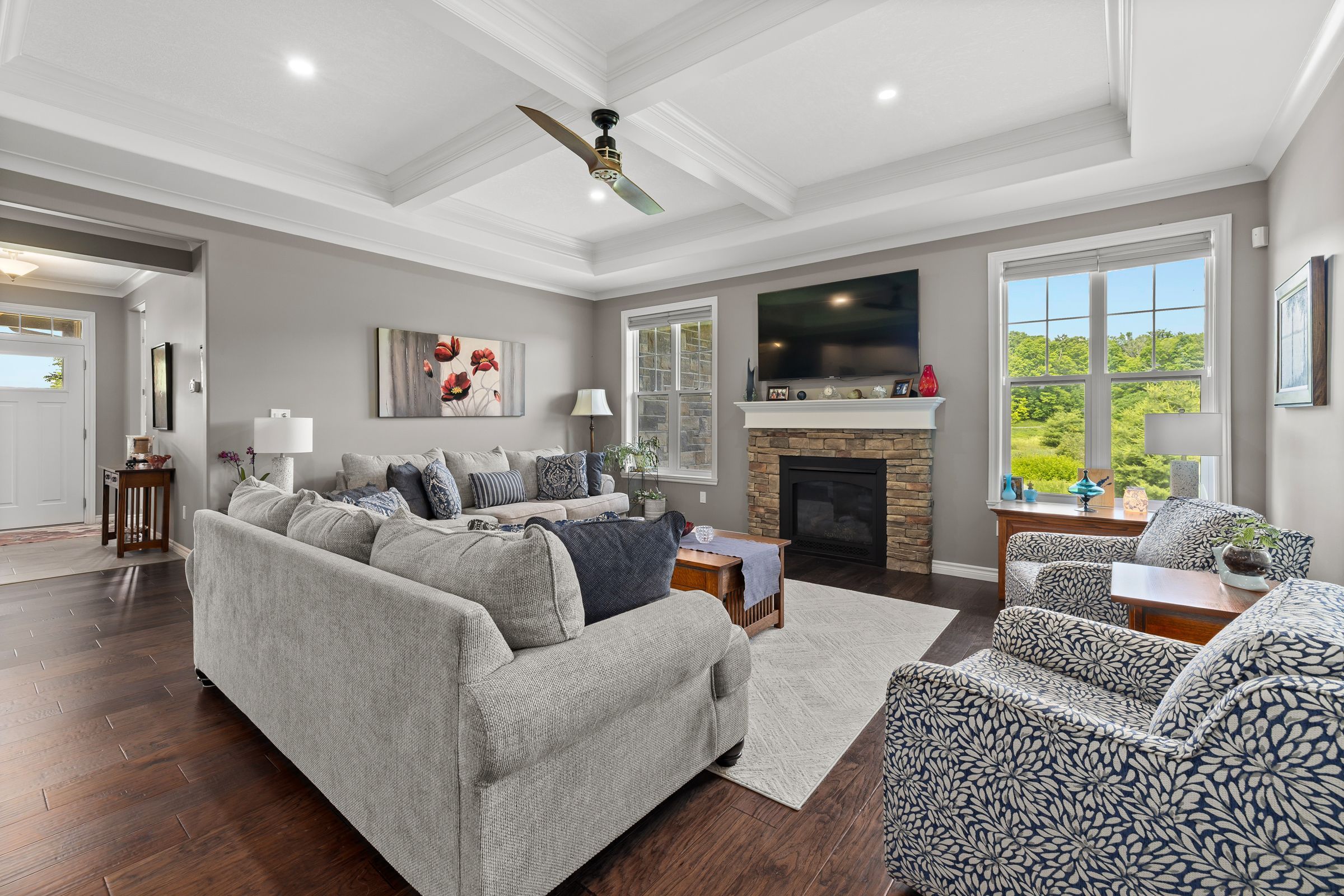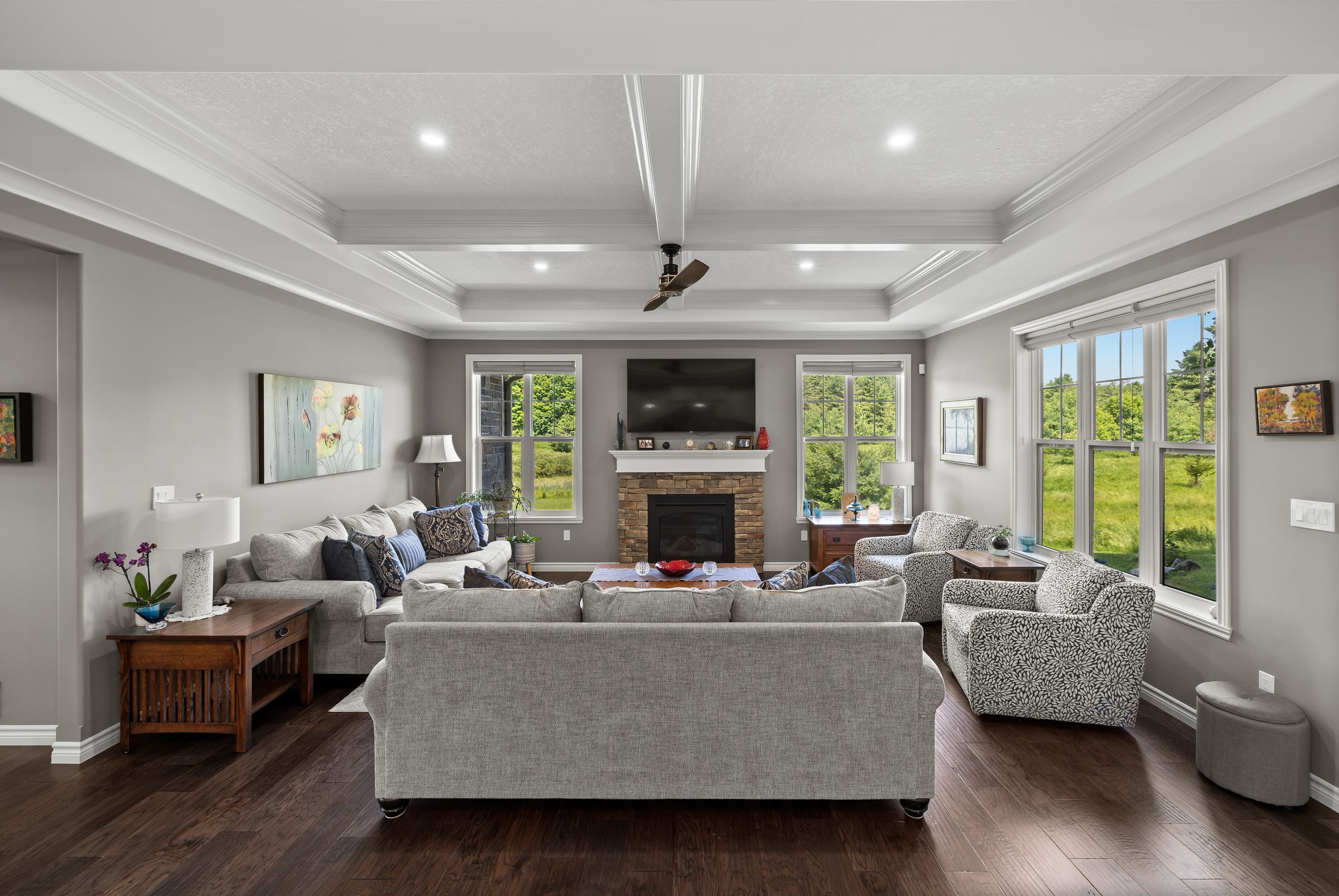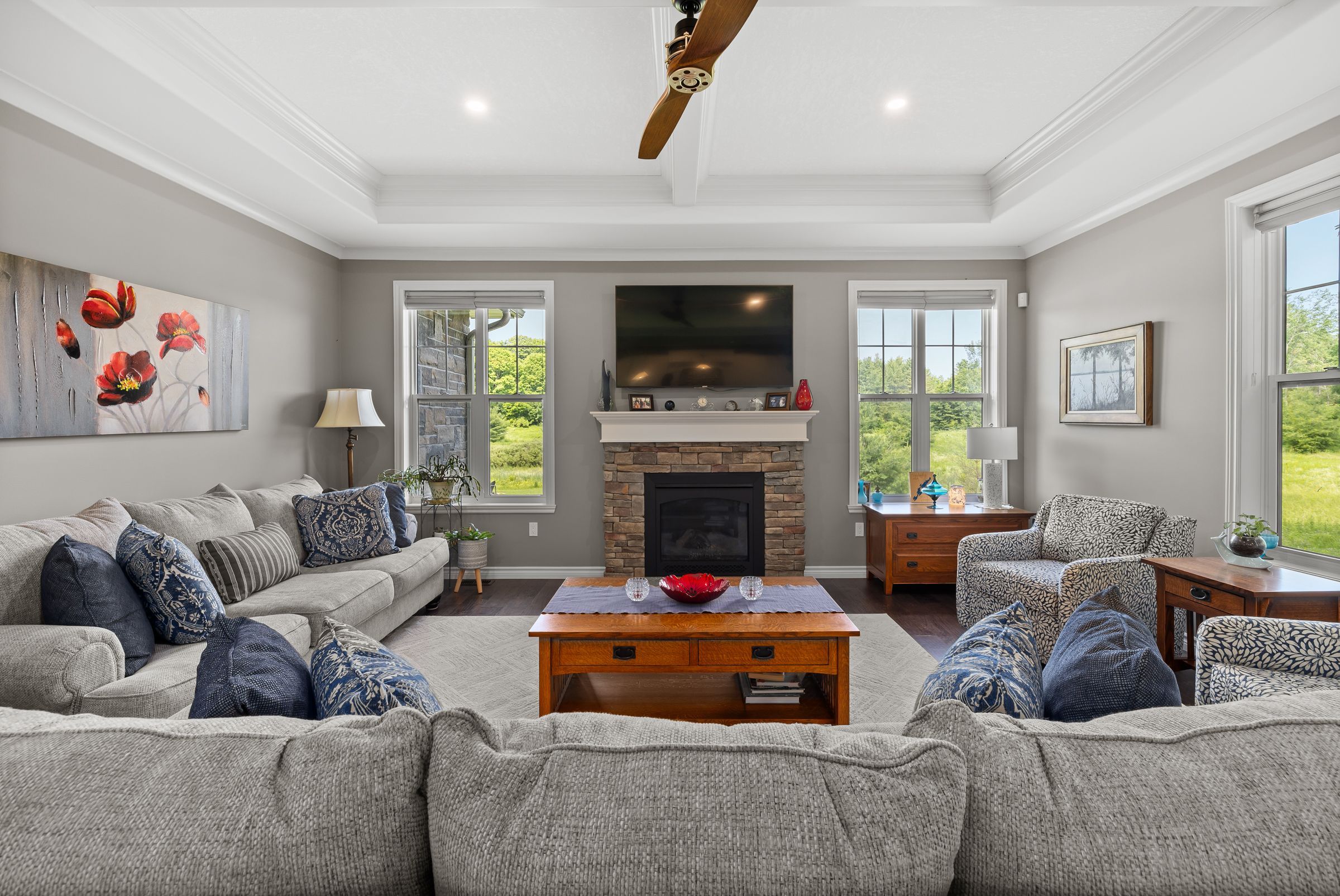 Welcome to this custom-built bungalow set on 4. 52 private acres in the desirable cranberry cove estates. With views of cranberry lake, your own pond, and a wooded backdrop, this home offers peace, privacy, and space to enjoy every season. The main level features 3 bedrooms, including a beautiful primary suite with walk-in closet and a 5-piece ensuite with soaker tub and glass shower. Tall ceilings, 8' doorways and large windows bring in natural light throughout. The great room and dining area are accented by 10 coffered ceilings, crown molding, wide-plank hickory hardwood, and a gas fireplace with stone surround. At the heart of the home, the chefs kitchen is both functional and high-end quartz countertops, shaker cabinets, tiled backsplash, and a massive 8' island with prep sink. Premium appliances include a 36 gas cooktop, double wall ovens, wine fridge, french-door refrigerator, micro drawer, and two dishwashers. Two car garage with entrance through the mud room. Downstairs, the fully finished basement nearly doubles your living space with 2 additional bedrooms, a full bathroom, a family room, games area, dry bar, home gym, and plenty of storage. Shouldice stone and board and batten exterior. Step outside and enjoy the surroundings: a covered front porch with lake views and rock gardens, and a large covered back deck overlooking your own pond and the forest. There's even a fire pit area perfect for relaxing to the sound of frogs at dusk. With over 3,400 sq. Ft. Of finished living space, custom finishes throughout, and only 35 minutes to kingston, this is the rare rural retreat that truly has it all.