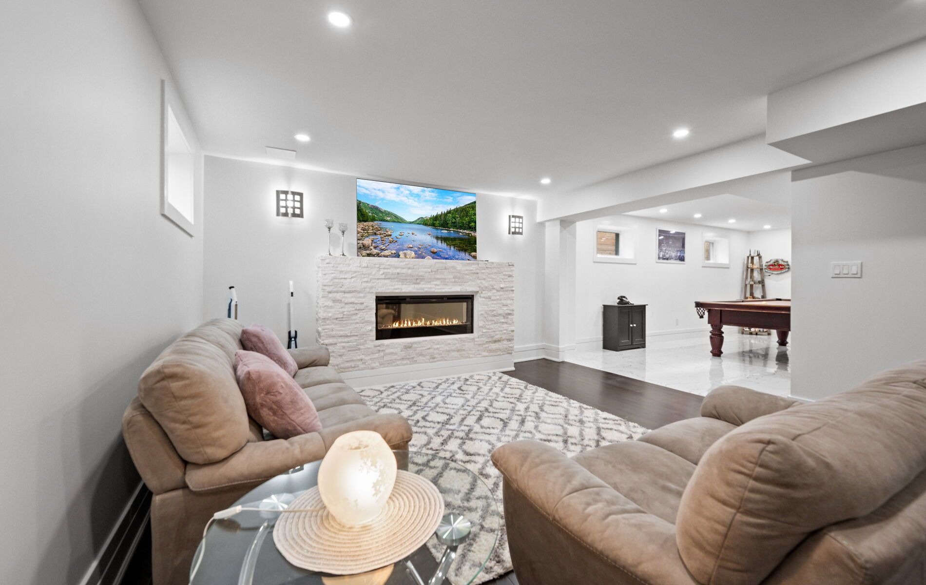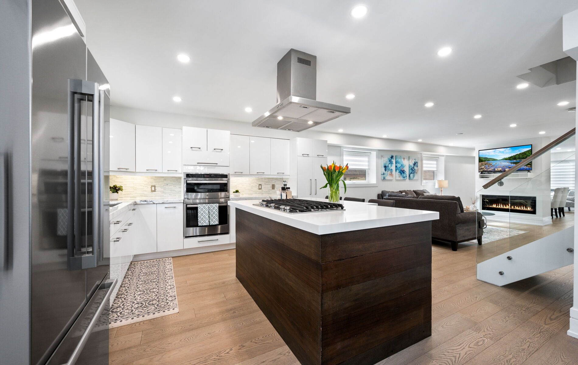 This custom-built 4-bedroom, 4-bathroom home delivers 3,597 sq ft of clean, modern design living space just steps from the lake. The open main floor features a show-stopping floating glass staircase, a cozy zero clearance fireplace, and a chef's kitchen equipped with a large island. Upstairs, the primary suite serves as a private retreat with a boutique walk-in closet and a 6-piece spa bathroom. Downstairs, finished basement with 9 ft ceilings, featuring a gym and a games room with the pool table included. Walking distance to the marina and trails at lakefront promenade. It's a rare, move-in-ready custom build. Must be seen in person to appreciate the details.