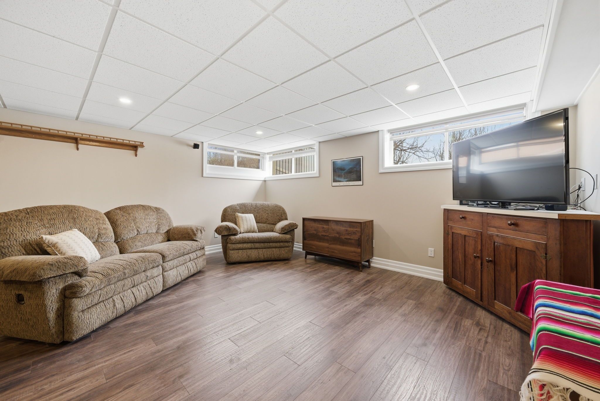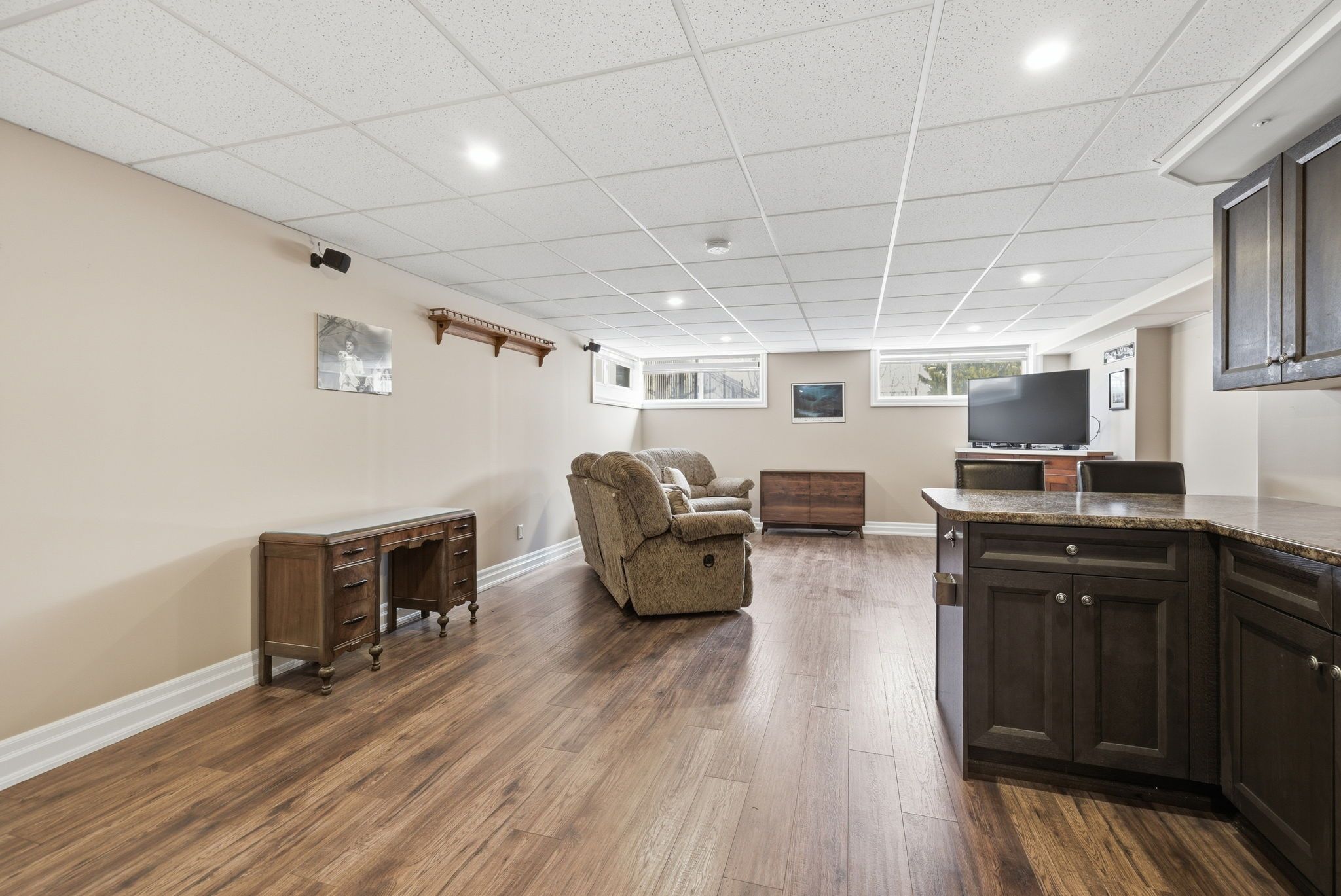 • Fully finished lower level includes family room and kitchenette for versatility.