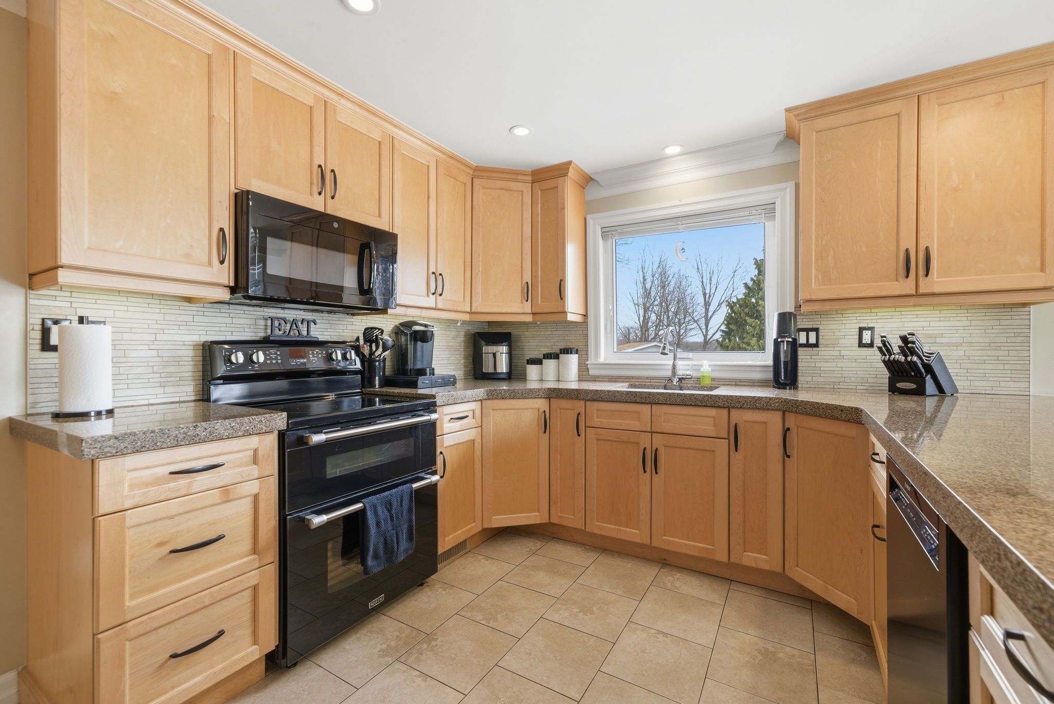 • Gourmet kitchen featuring sleek marble countertops and ample prep space.