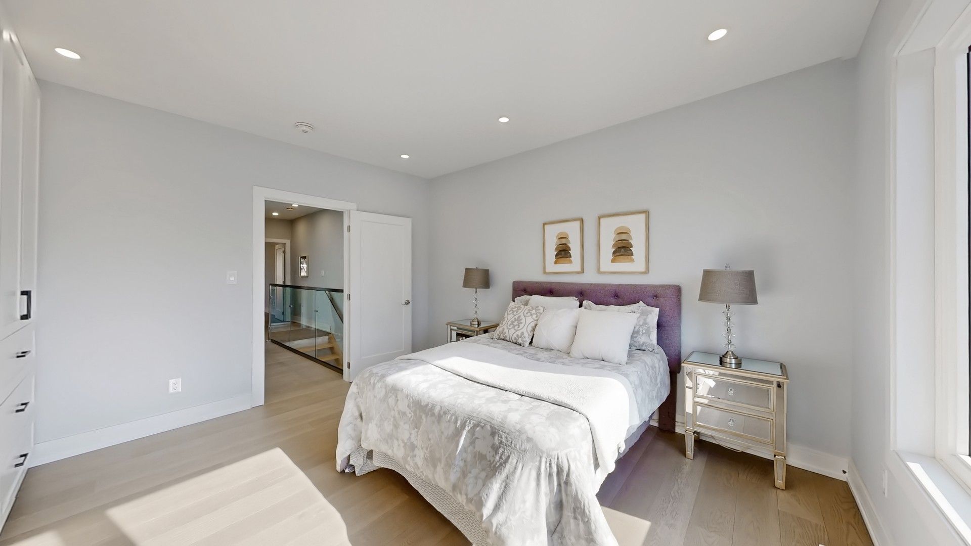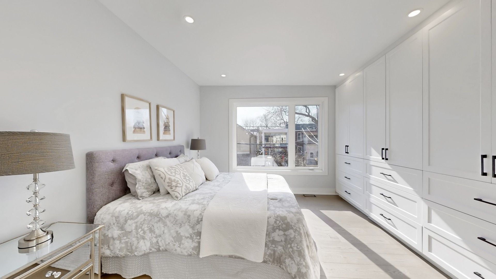 Located in the vibrant greenwood-coxwell pocket near danforth avenue, this newly built home offers a thoughtful blend of modern design and everyday comfort. With close to 2,000 square feet of living space, it features 2 spacious bedrooms with wall unit closet organizers and 4well-appointed bathrooms, making it ideal for those who value both style and functionality. The home showcases high-end finishes throughout, with careful attention to detail in every room. The exterior stands out with reclaimed wood at the front, adding warmth and character, while the rear features a sleek stucco finish for a clean, contemporary look. Inside, the layout is bright and open, designed for both living and entertaining. The dining area is a true focal point, featuring a dramatic two-storey ceiling with 2 skylights that fills the space with natural light. A modern glass-panel stair railing enhances the open feel, seamlessly connecting the levels with a sleek, contemporary touch. The kitchen is designed for both style and practicality, boasting a quartz countertop with matching backsplash and a striking waterfall island at the center. Cabinets and counter space line both sides, providing ample storage and workspace for all your culinary needs. One of the high lights is the two-level deck, accessible from both the primary bedroom and the kitchen, offering a private outdoor space that overlooks the backyard-perfect for relaxing or entertaining. Situated in a friendly, community-oriented neighborhood, you'll enjoy easy access to shops, cafes, parks, and transit along the danforth, steps to greenwood ttc. While there is no dedicated parking, street parking permits are available through the city. This is a rare opportunity to own a brand new modern home in one of toronto's most connected and welcoming east-end communities.