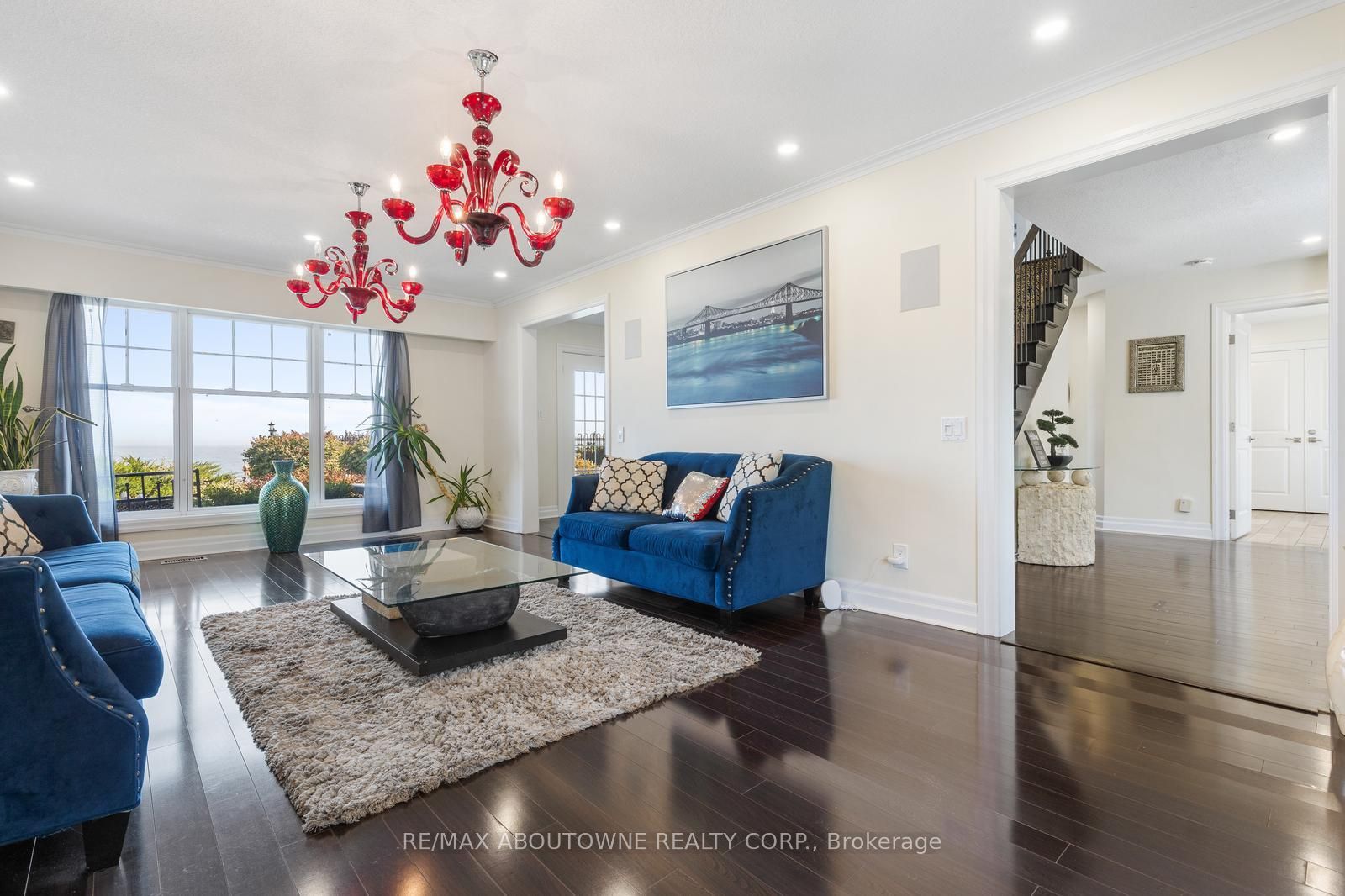 Perched on the tranquil shores of lake ontario, this exquisite home offers breathtaking, unobstructed views of the toronto skyline, refined living spaces, and numerous upgrades throughout. Inside, the inviting layout features spacious principal rooms with hardwood floors and pot lights. The dining room showcases stunning lake views, while the family room boasts a cozy gas fireplace. Built-in speakers enhance the ambiance of the living room. The chefs kitchen impresses with stainless steel appliances, granite countertops, and hardwood flooring. The primary bedroom serves as a private retreat with a 3-piece ensuite, a walk-in closet, and hardwood floors. Three additional bedrooms provide ample space, including one with serene lake views and others overlooking the lush front yard. The versatile lower level includes a bedroom, a full washroom, and walk-up access to the backyard oasis. Outdoors, enjoy a 16' x 40' concrete pool set against a tranquil waterfront backdrop, along with aprivate outdoor sauna for ultimate relaxation. This home effortlessly blends luxury, comfort, and style perfect for your refined lifestyle.