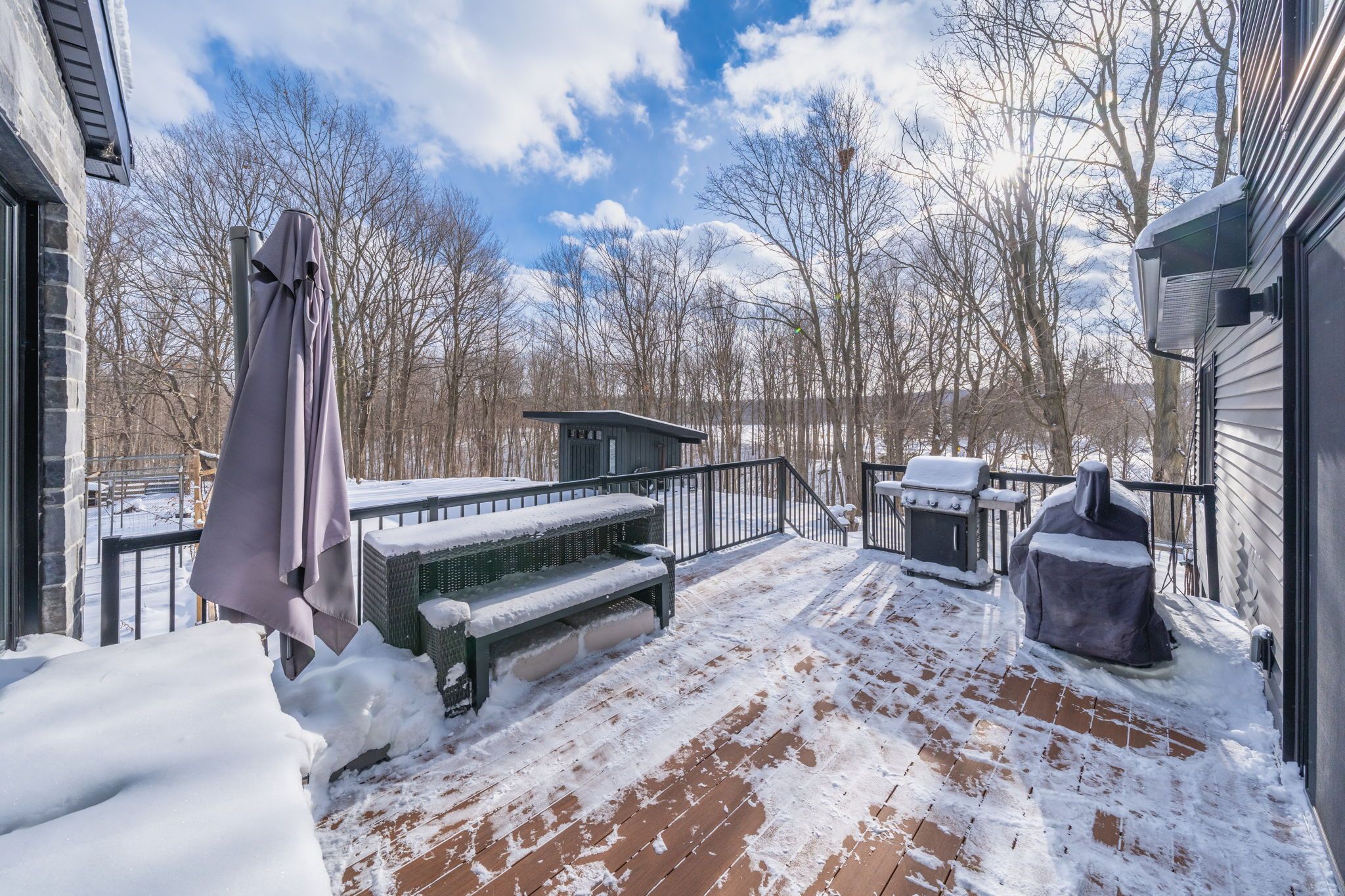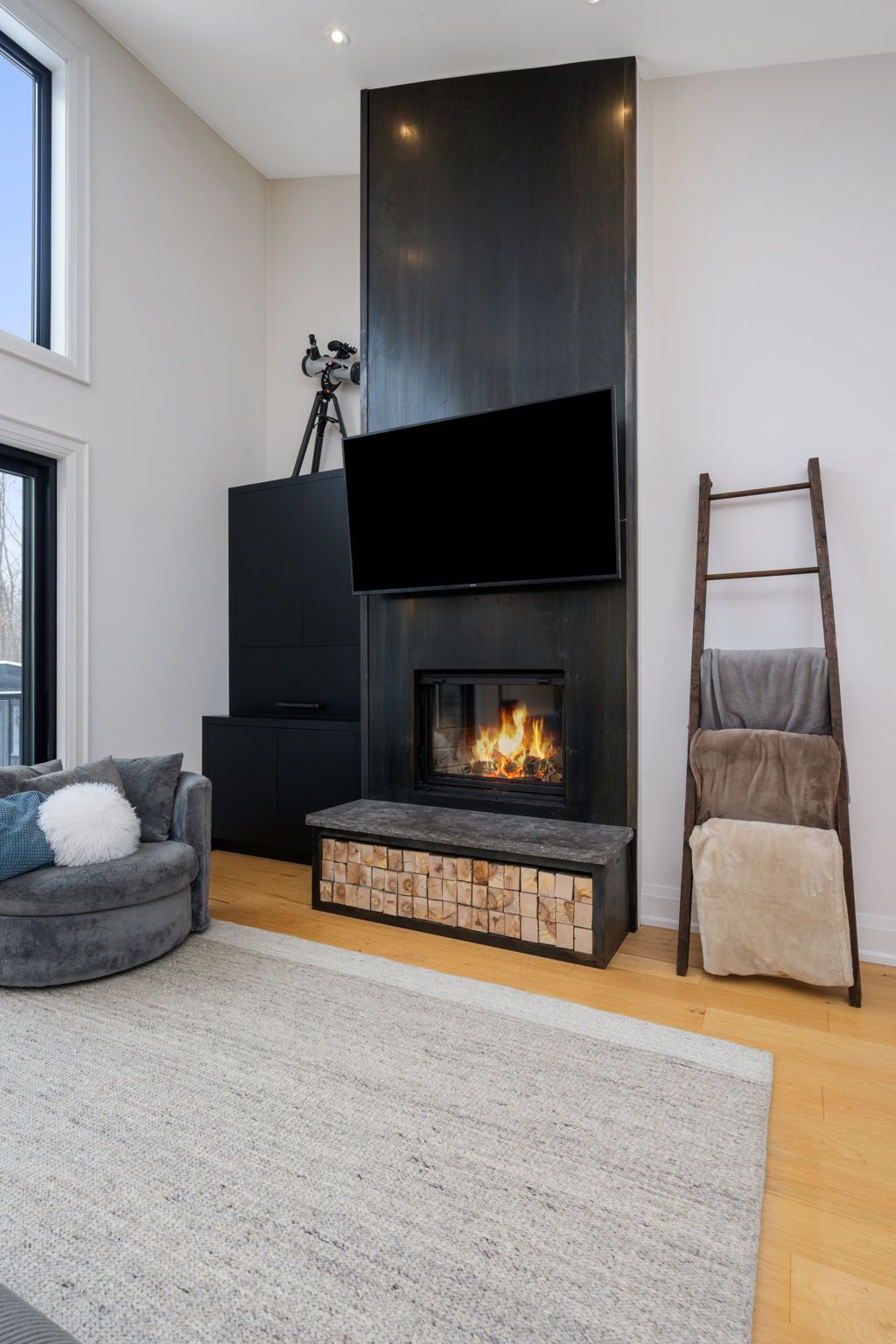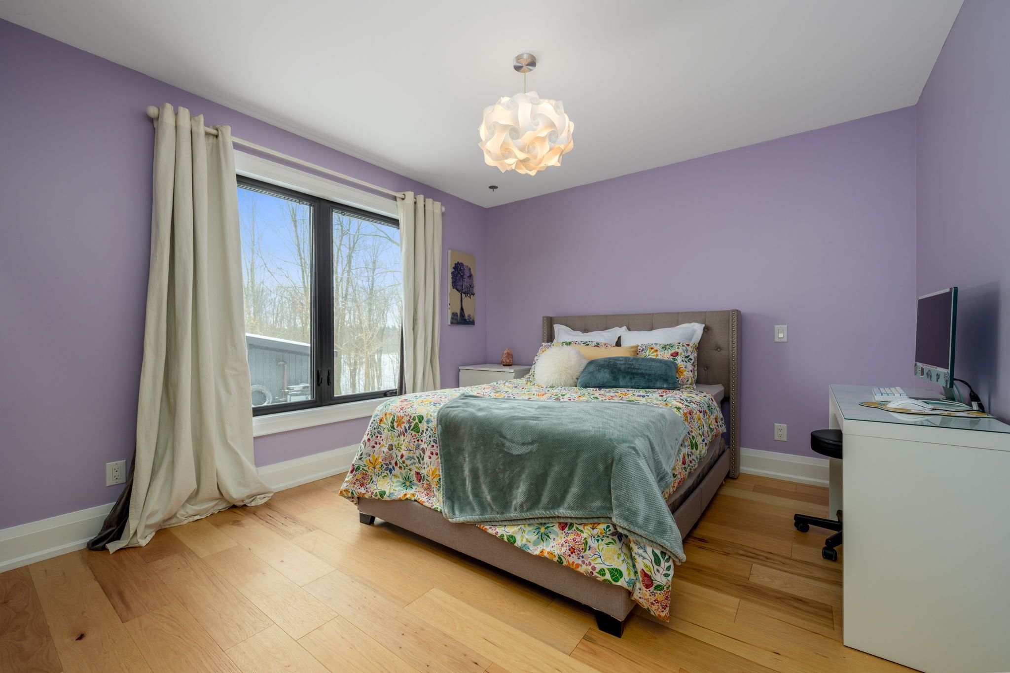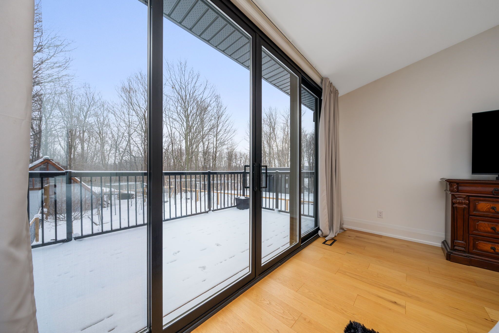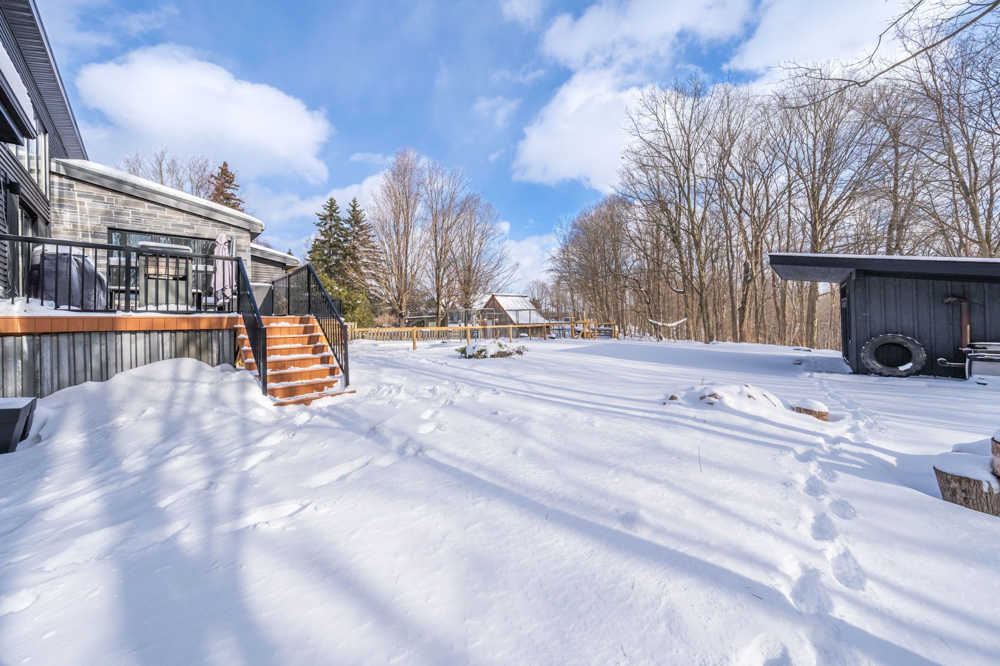 Set on a rare and private half-acre lot surrounded by mature niagara escarpment trees, this architecturally distinctive home offers refined country living with the feel of a modern cottage, without the commute to cottage country. Located on an exclusive street where homes rarely come to market, this is a truly special offering. Rebuilt in 2021, the home is designed to embrace its natural setting. The open-concept great room features soaring 16-foot vaulted ceilings, engineered natural hickory floors, and a striking floor-to-ceiling wood-burning fireplace. Expansive floor-to-ceiling windows span the rear of the home, with forest views and filling the space with natural light. When the trees are in full bloom, the home enjoys complete privacy. The chef-inspired kitchen showcases a custom euro-style design with quartz countertops, quartz backsplash, and an impressive 10' x 4' island-perfect for entertaining while enjoying uninterrupted views of nature from every angle of the kitchen, dining, and living areas. The primary suite is privately located off the dining area and offers a peaceful retreat with a spa-like ensuite featuring a freestanding soaker tub, oversized glass shower, double vanity, and a large custom walk-in closet. A separate wing, tucked behind a pocket door off the living room, includes two spacious bedrooms and a beautifully finished 3-piece bathroom, ideal for family living or hosting guests. Outdoor living is exceptional, with professionally landscaped stone patios, tiered gardens, and multiple seating areas set against a serene backdrop. Completing the property is a attached garage with a finished second-level studio and storage, ideal for a home office, creative space, or gym. A rare opportunity to enjoy private, nature-inspired luxury on a highly sought-after street.