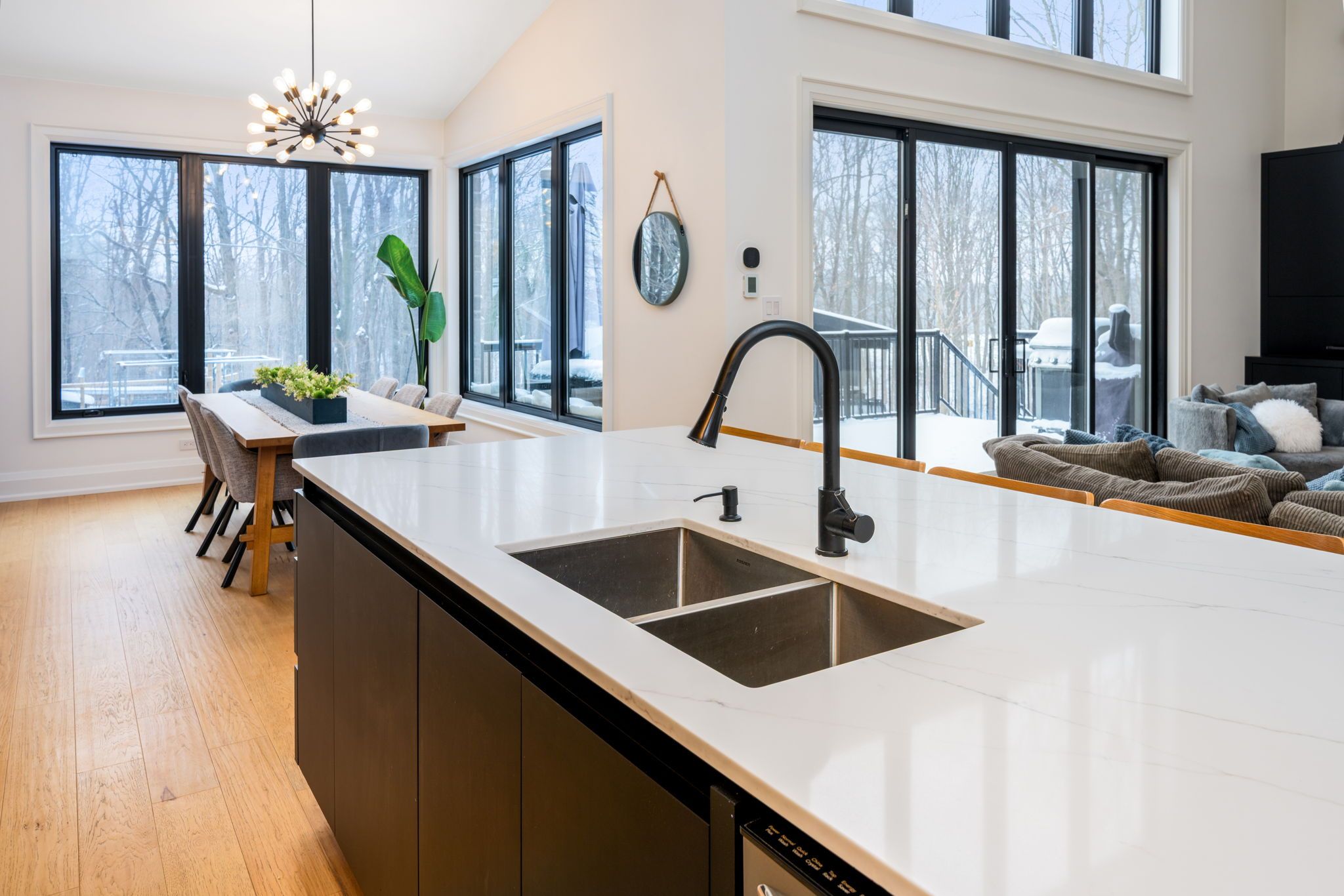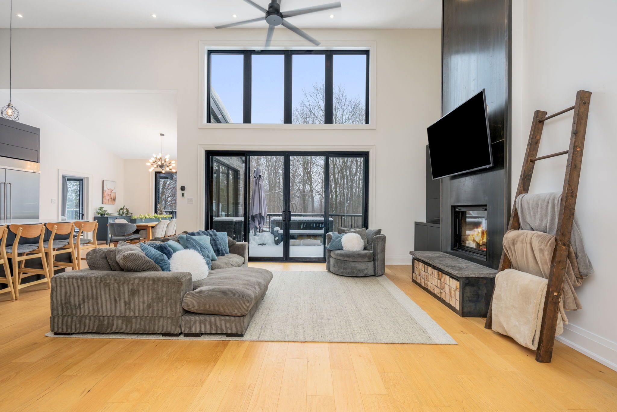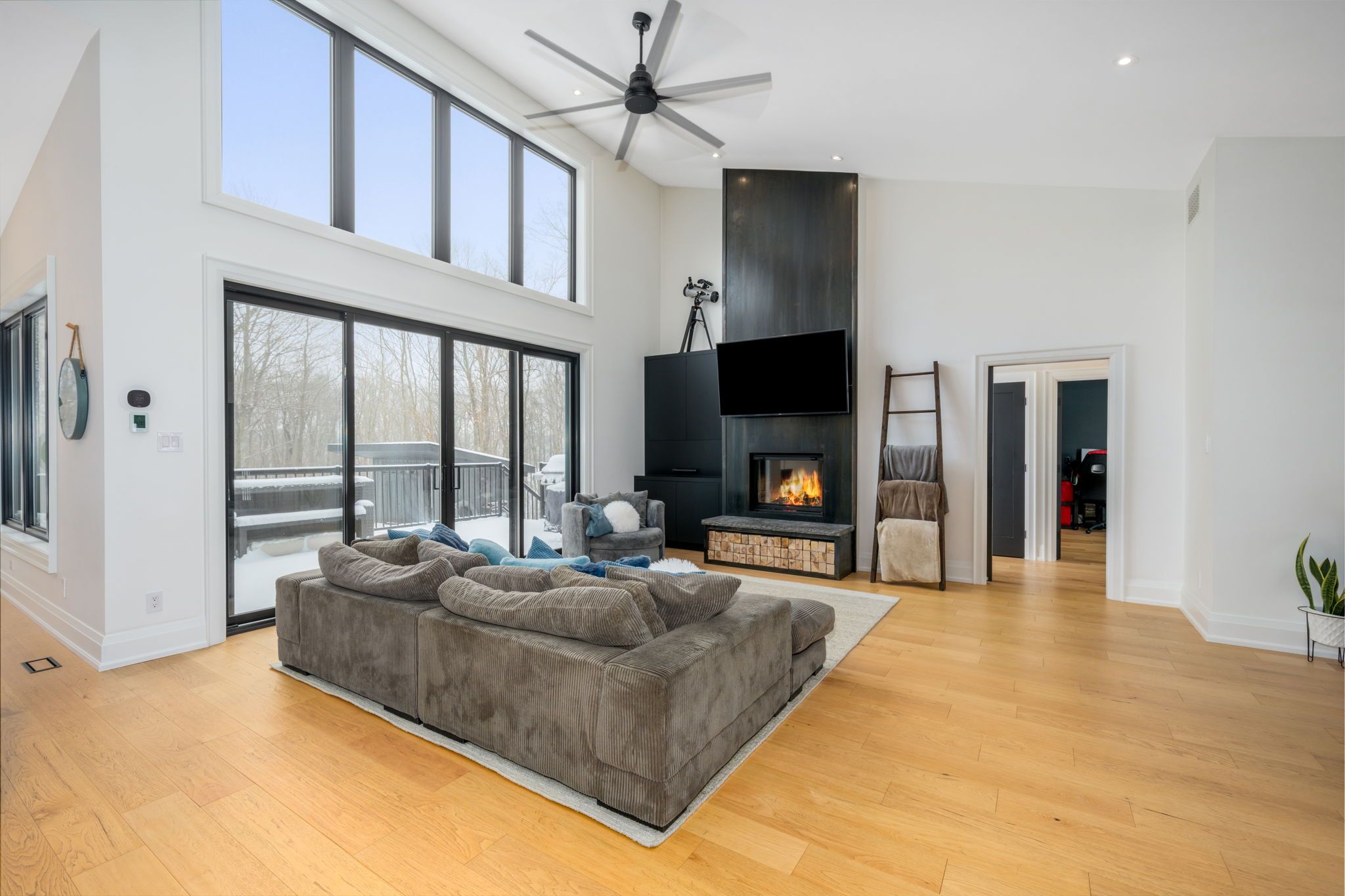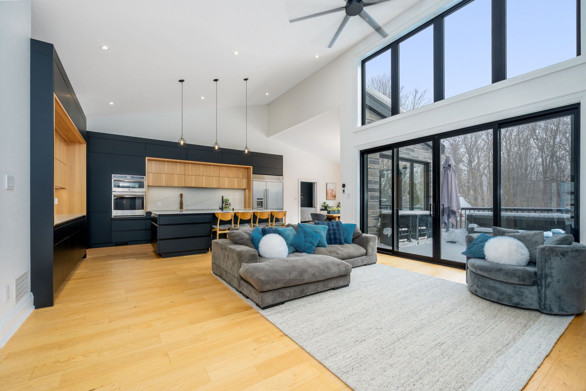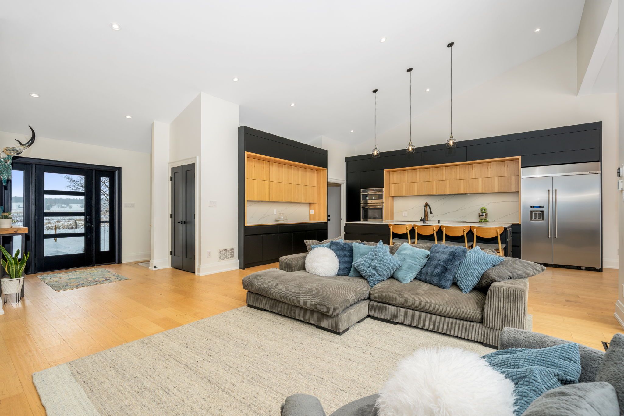 • Open-concept great room with impressive vaulted ceilings and natural light.