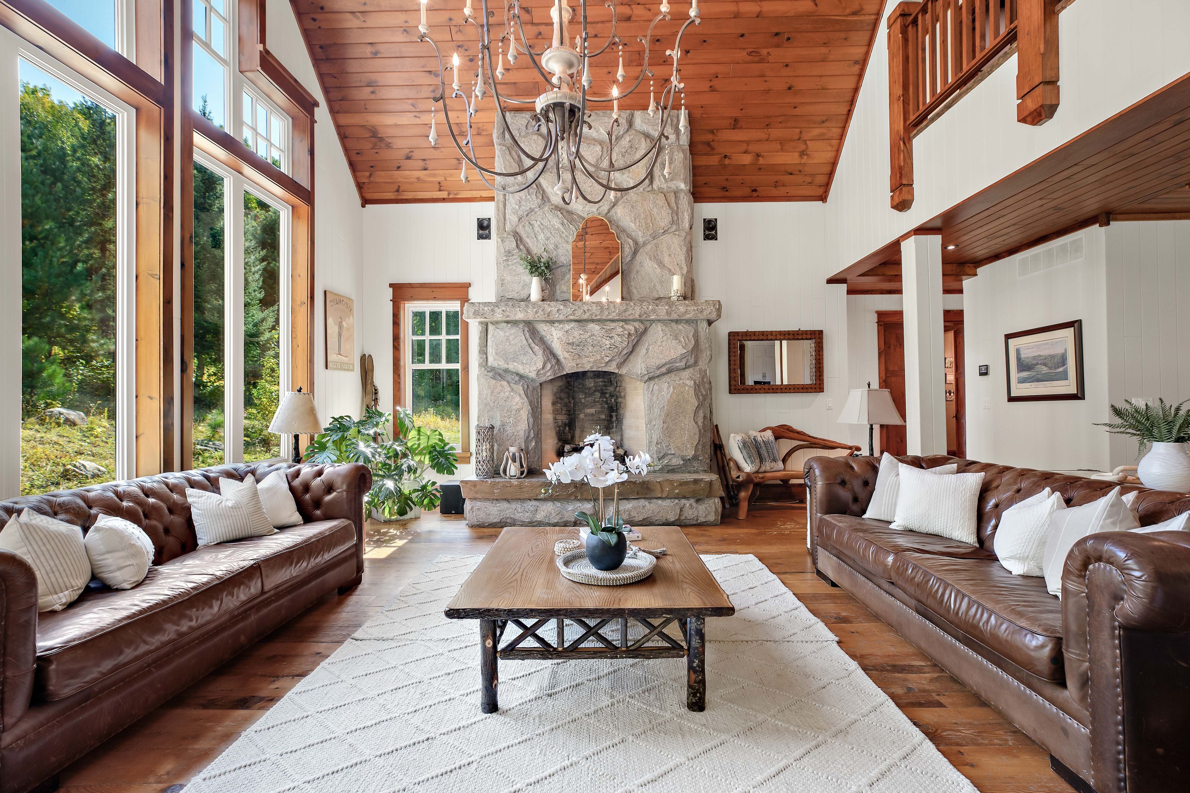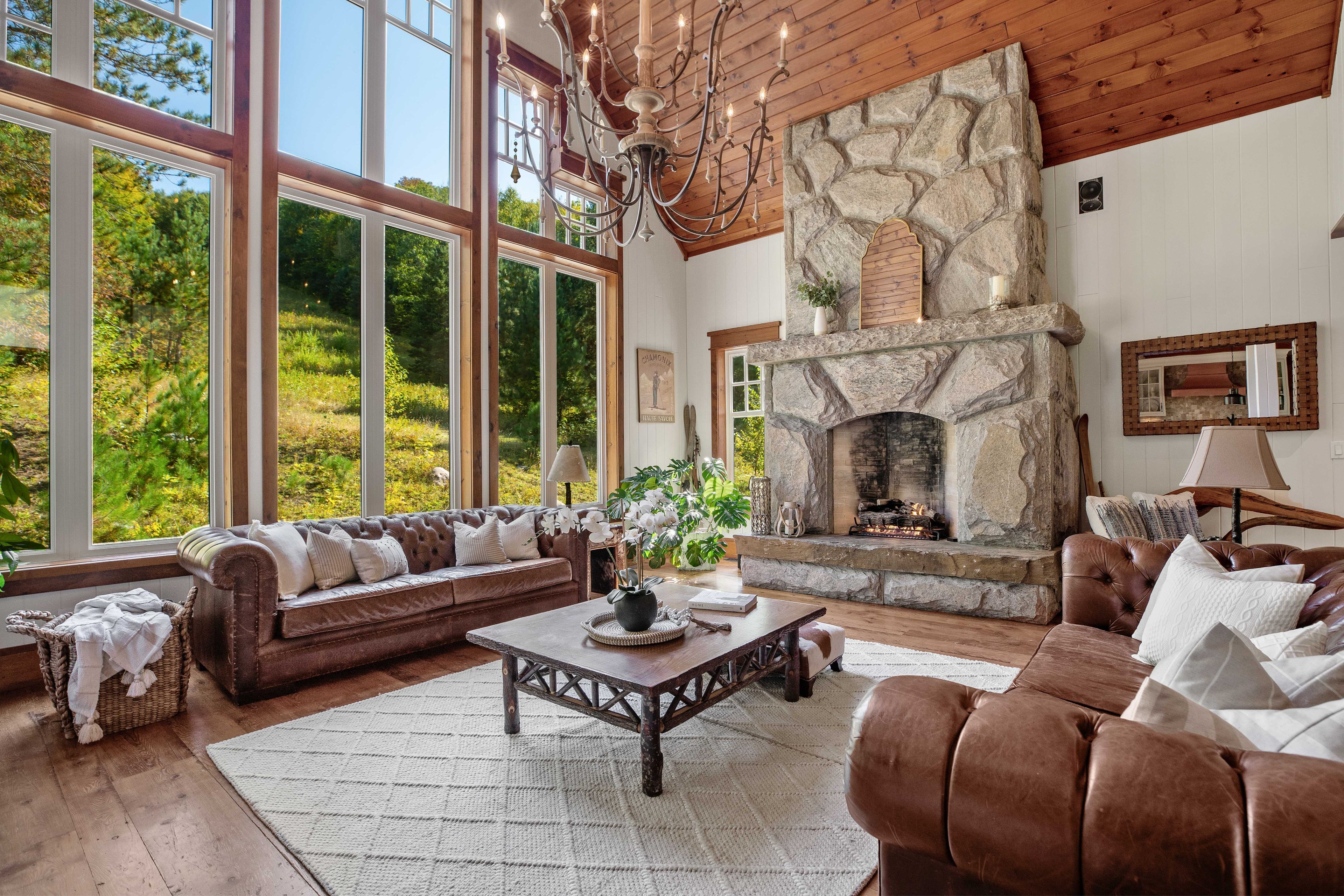 Incredible value! Meticulously planned, designed and crafted, this 7000+sf home or recreational retreat is surrounded by more than 35 acres of unique landscapes and is just minutes to a beach and boat launch on peninsula lake. The sprawling residence was built to maintain efficiency with icf construction and in-floor heating, as well, every element in this custom-build was carefully selected from only quality products. This home offers extensive modern comforts and fine finishes from high-end kitchen appliances, emtek hardware, perrin & rowe faucets to the reclaimed hemlock floors, toto toilets, & oversized fireplaces. Upon arrival, it's evident that the designer thoroughly considered the floor plan to provide the ultimate in function, convenience, and luxury. The main floor is flooded with natural light with floor-to-ceiling windows, offers a desirable open-concept layout and hosts the stunning primary bedroom. You will fall in love with the lavish primary suite featuring a 5pc ensuite with steam shower, heated floors and a soaker tub with panoramic views. The walk-in closet provides enough space for your attire, shoes & accessories. For your family or guests, the 2nd level offers a dedicated space for relaxation, with each of the three tastefully decorated bedrooms enhanced by ensuite privileges. The sizeable recreation room on the lower level is ideal for table games or hosting gatherings, and the separate guest wing is well suited for your guests with a private 3pc bath. For ease, the 3-car attached garage allows effortless entry to the home, and the finished space above creates a perfect in-law suite or a bonus space for growing families. Formerly known & operated as tally ho winter park, this incredible property has been cherished and holds fond memories for those who enjoyed spending winters here or learned to ski on the once-maintained hills. With so much outdoor space to enjoy, owners & guests are privy to a lifestyle of endless exploration and fun.