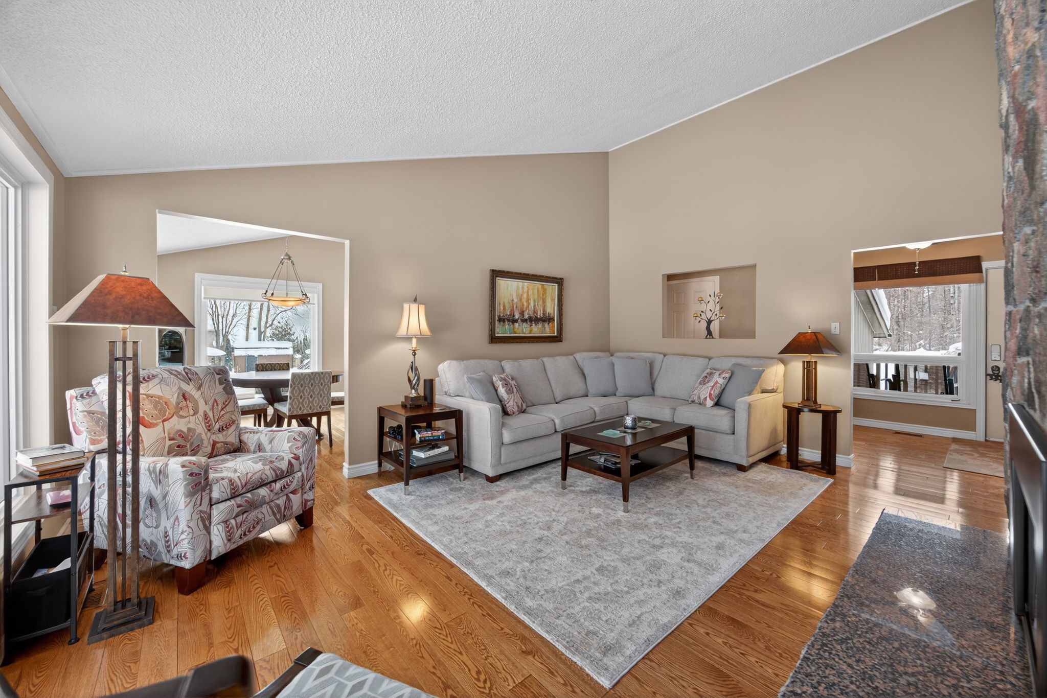 Welcome to 1075 line 6 south. This beautiful viceroy 3+1 bedroom bungalow is located in a sought-after oro-medonte community, set on a very private, treed lot at the end of the street. Soaring cathedral ceilings and oak hardwood flooring highlight the great room, anchored by a striking floor-to-ceiling fieldstone fireplace with a napoleon gas insert, while the bright eat-in kitchen offers a welcoming space for everyday living. Step out to the 27' x 7. 5' covered porch, ideal for morning coffee and outdoor entertaining. The primary bedroom features a private walkout to its own deck, and a conveniently located main-floor laundry room adds everyday functionality. The finished basement offers excellent in-law potential with a separate entrance, cozy family room with a fieldstone wood-burning fireplace, games room, bedroom, and an existing bathroom. Additional highlights include a two-car garage, parking for up to eight vehicles, and a private treed lot just steps from public water access on lake simcoe, where you can launch a boat and enjoy swimming. Ideally located approximately 20 minutes to both barrie and orillia for shopping, dining, and entertainment, close to schools and parks, and perfect for commuters seeking easy access to major routes while enjoying a community with a small-town feel. Enjoy endless boating along the trent-severn waterway, nearby golf courses, skiing, and the oro rail trail for hiking, biking, and cross-country skiing. Book your private showing today.