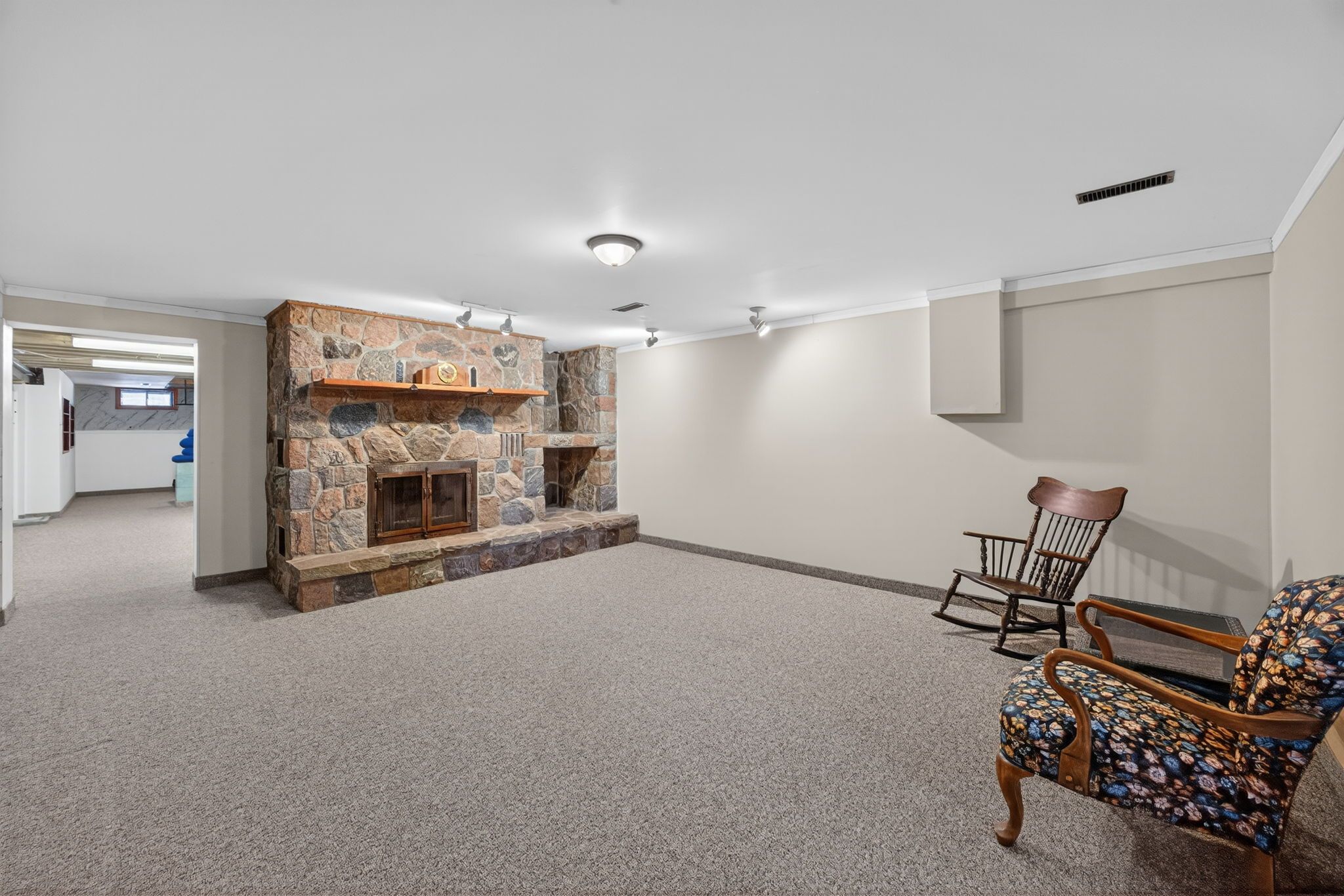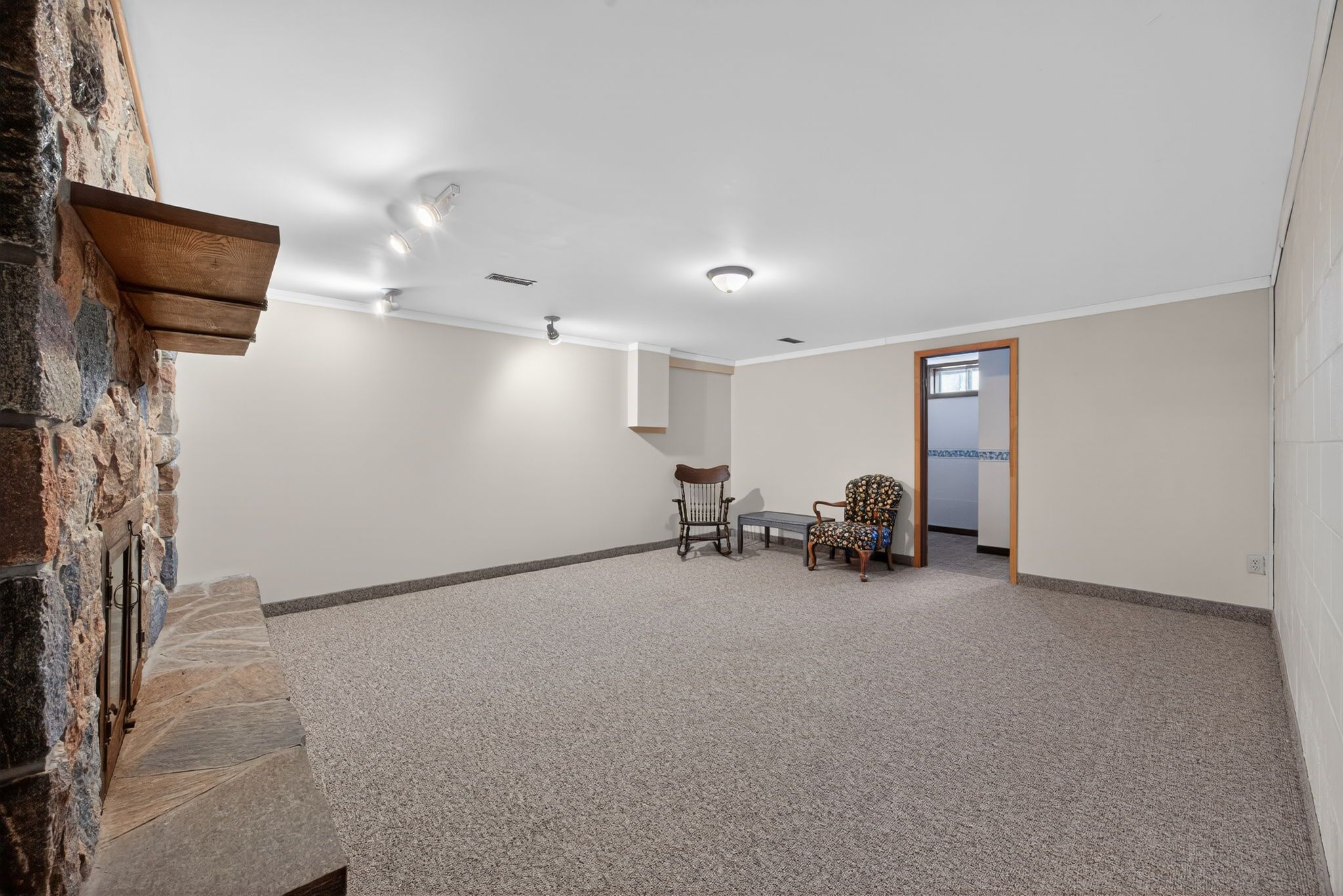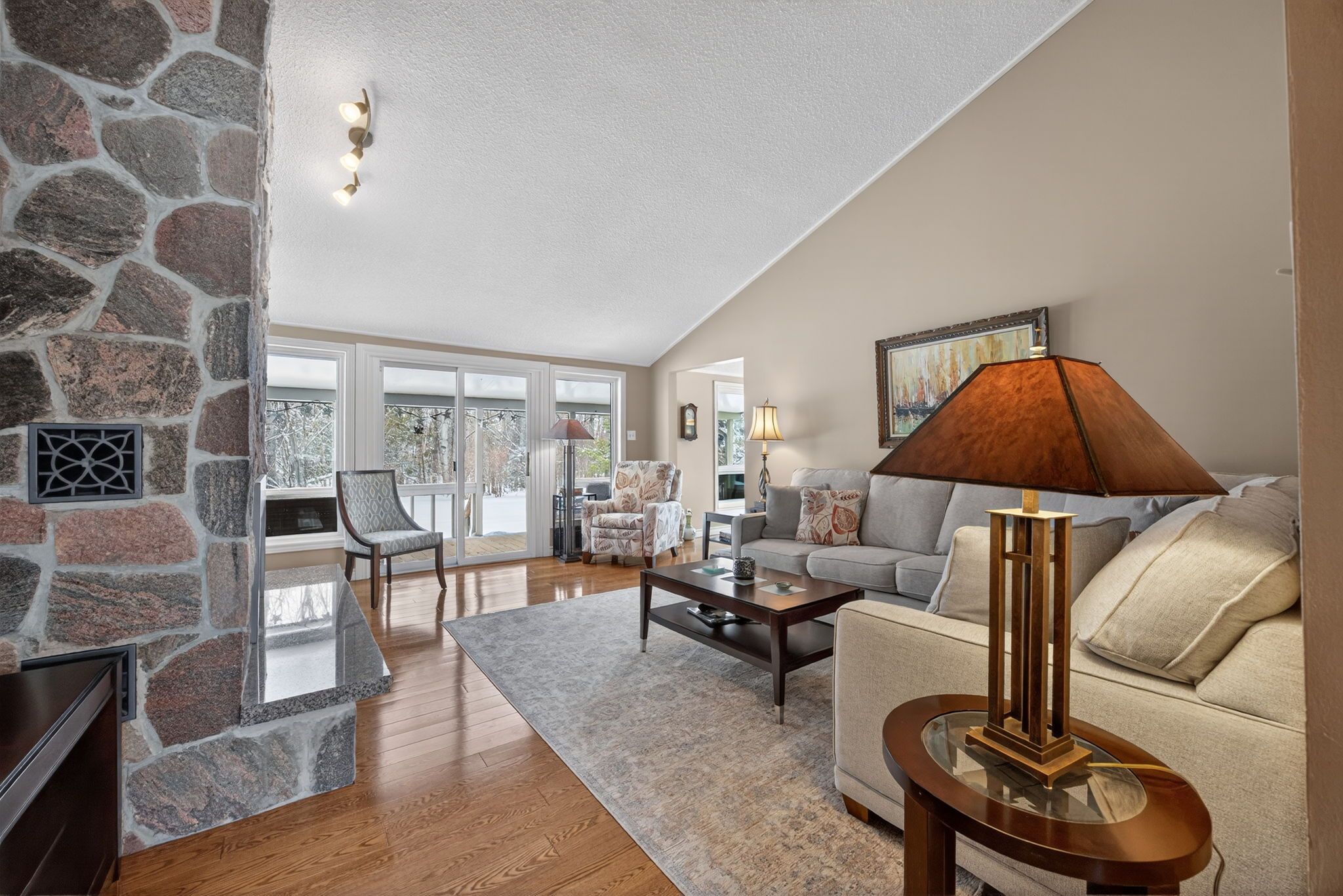 • Great room with cathedral ceilings and stunning stone fireplace.