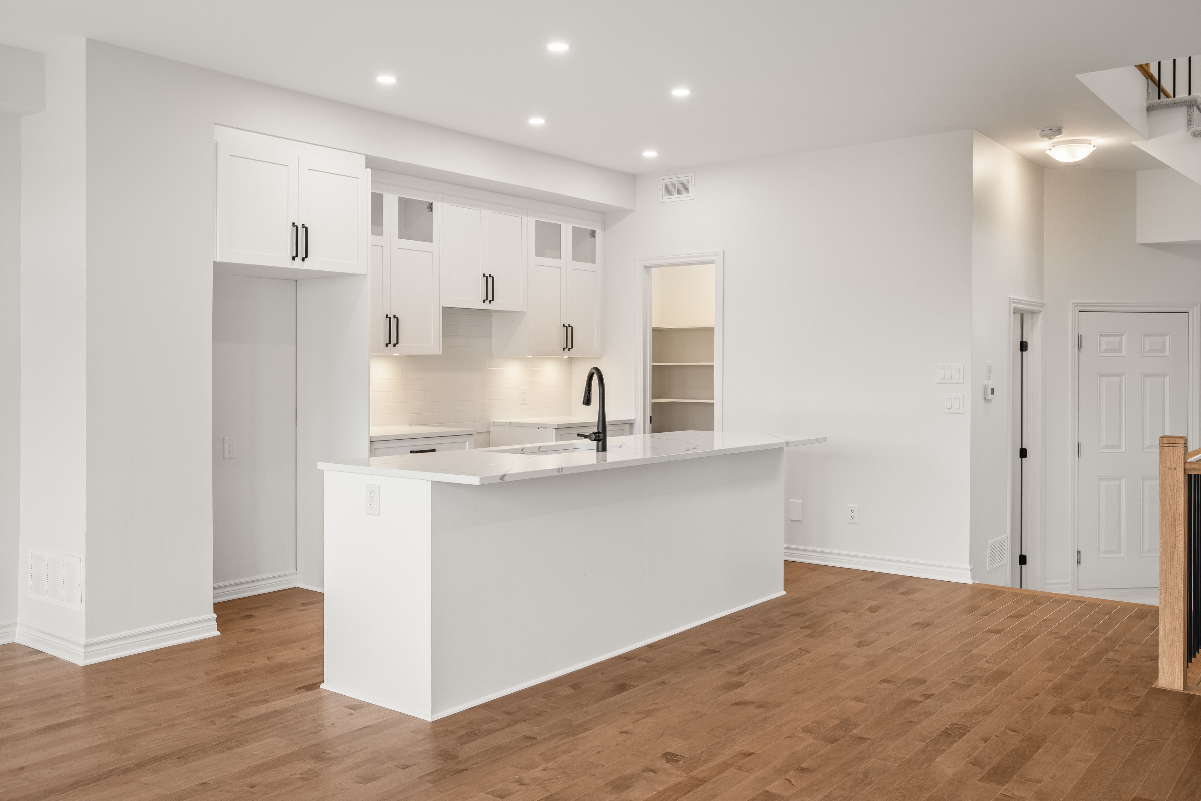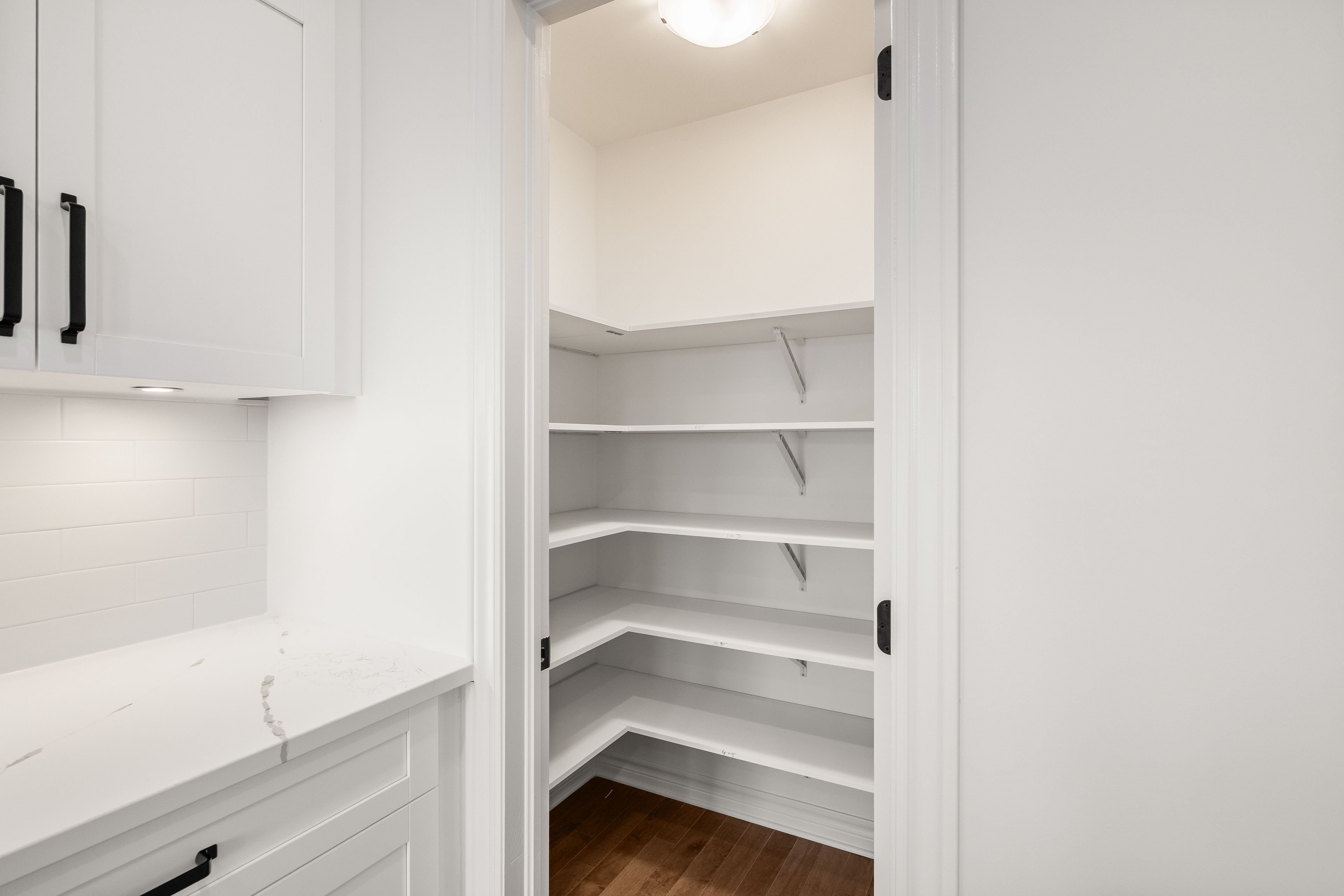 • Stylish kitchen with quartz countertops and a large walk-in pantry.