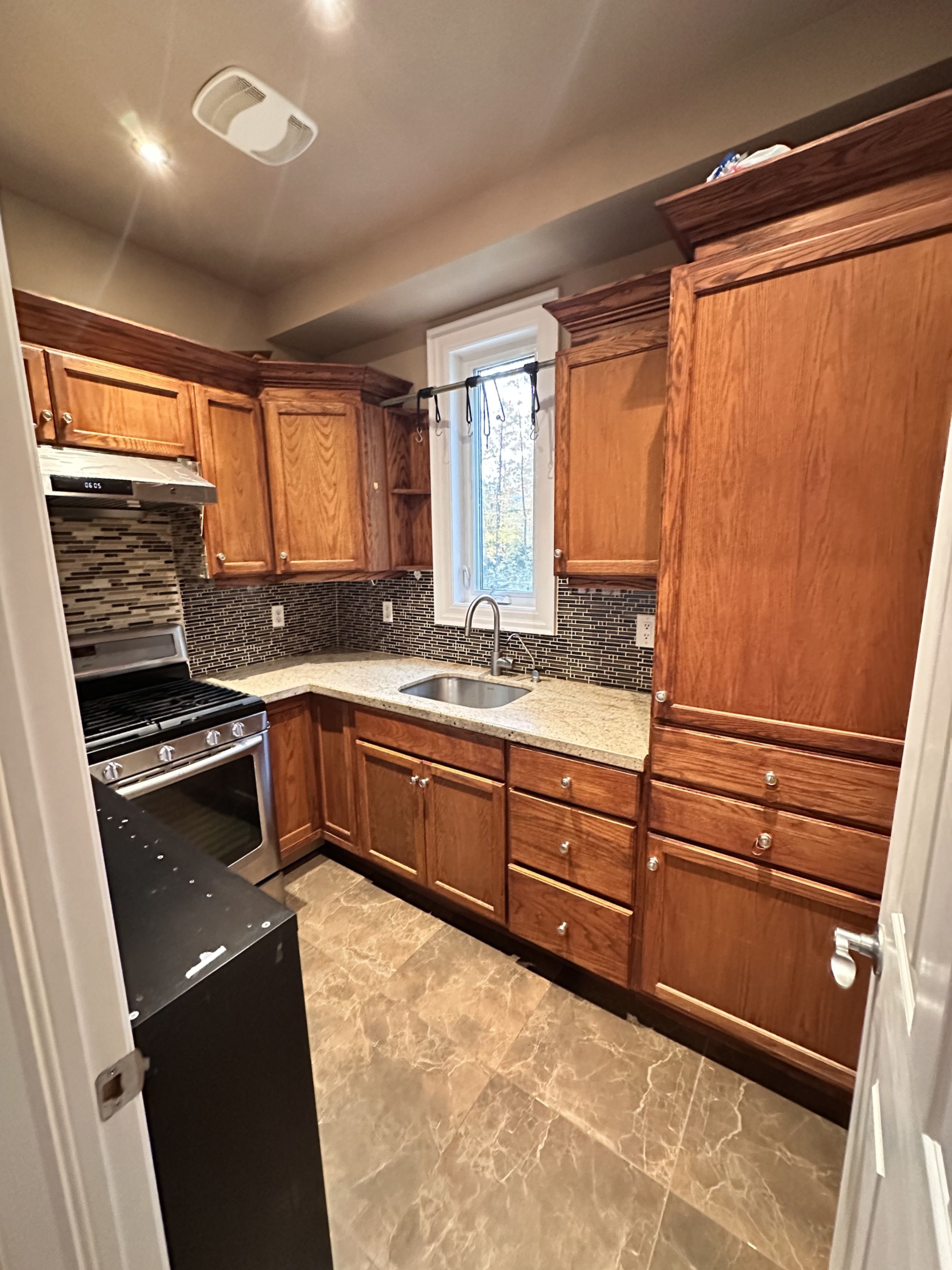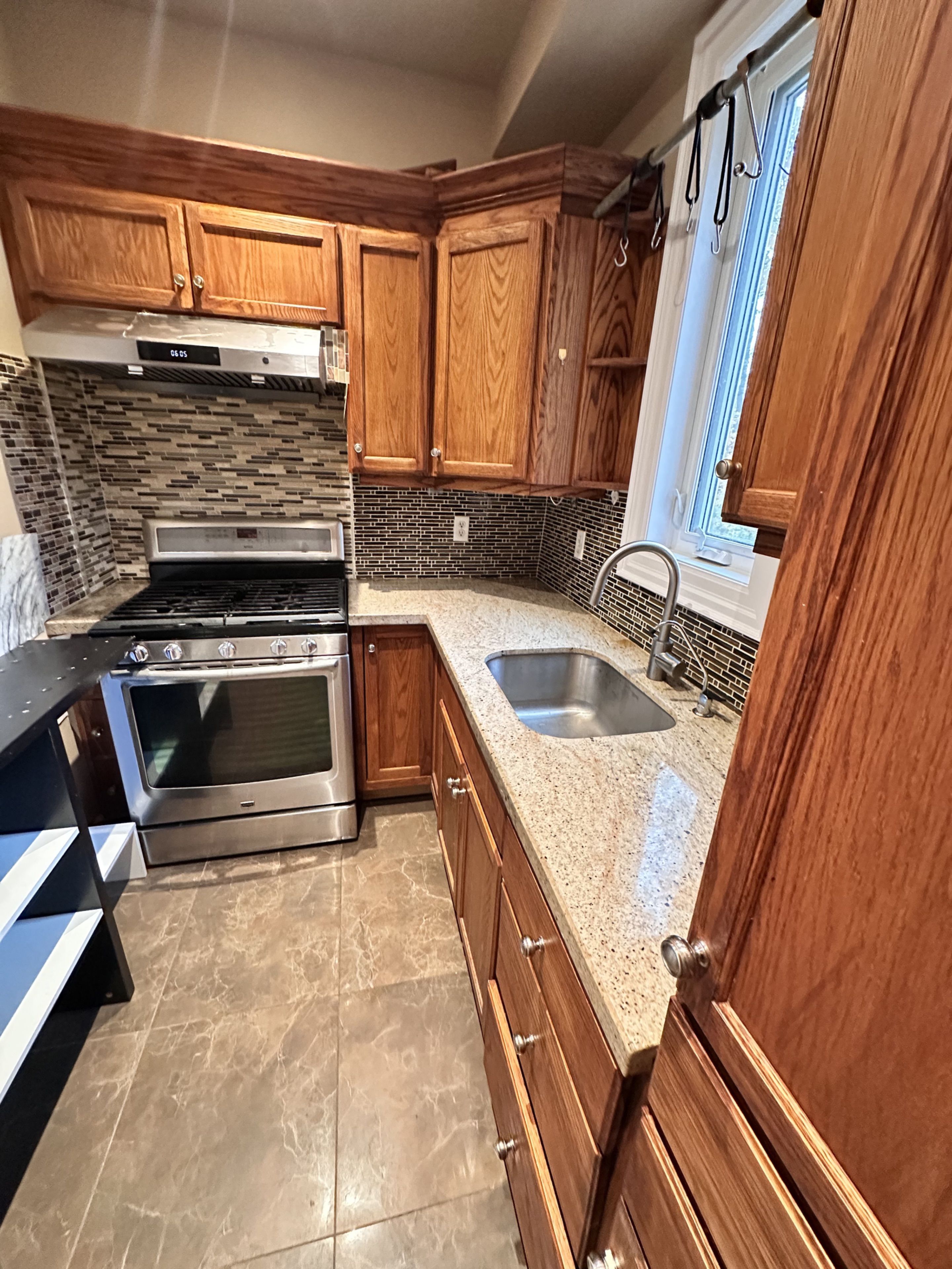• Functional kitchen with plenty of cabinetry and storage space.
