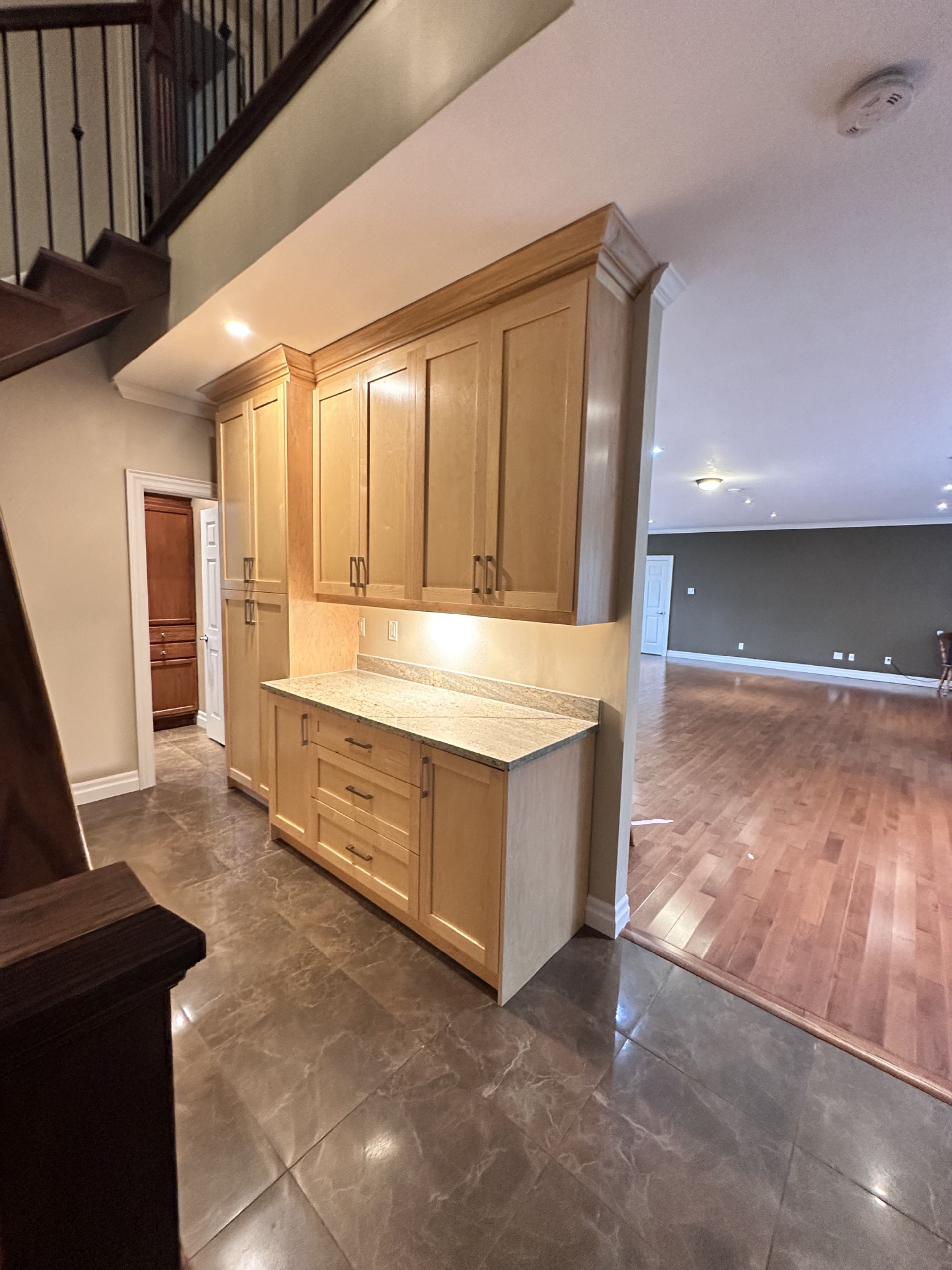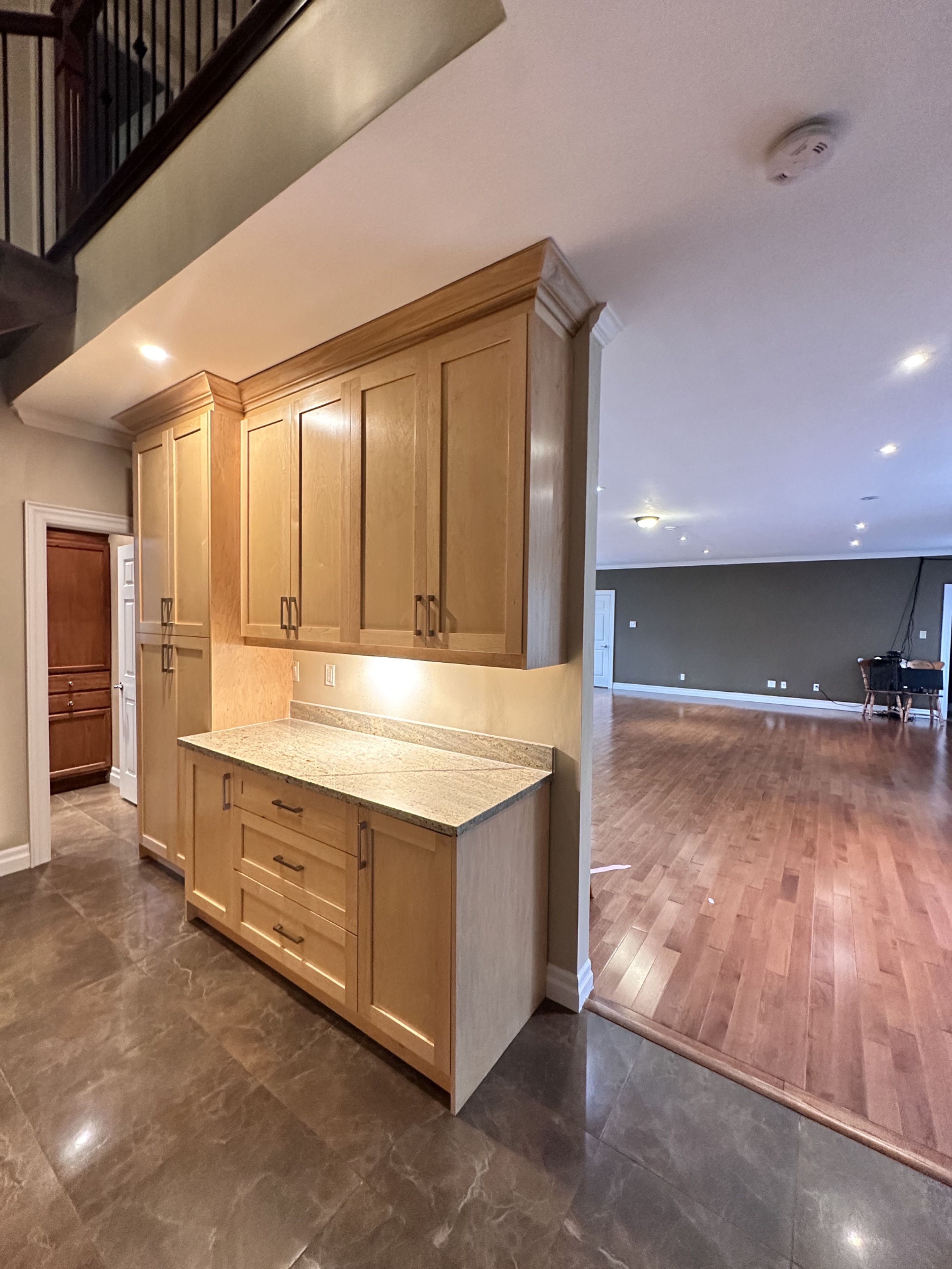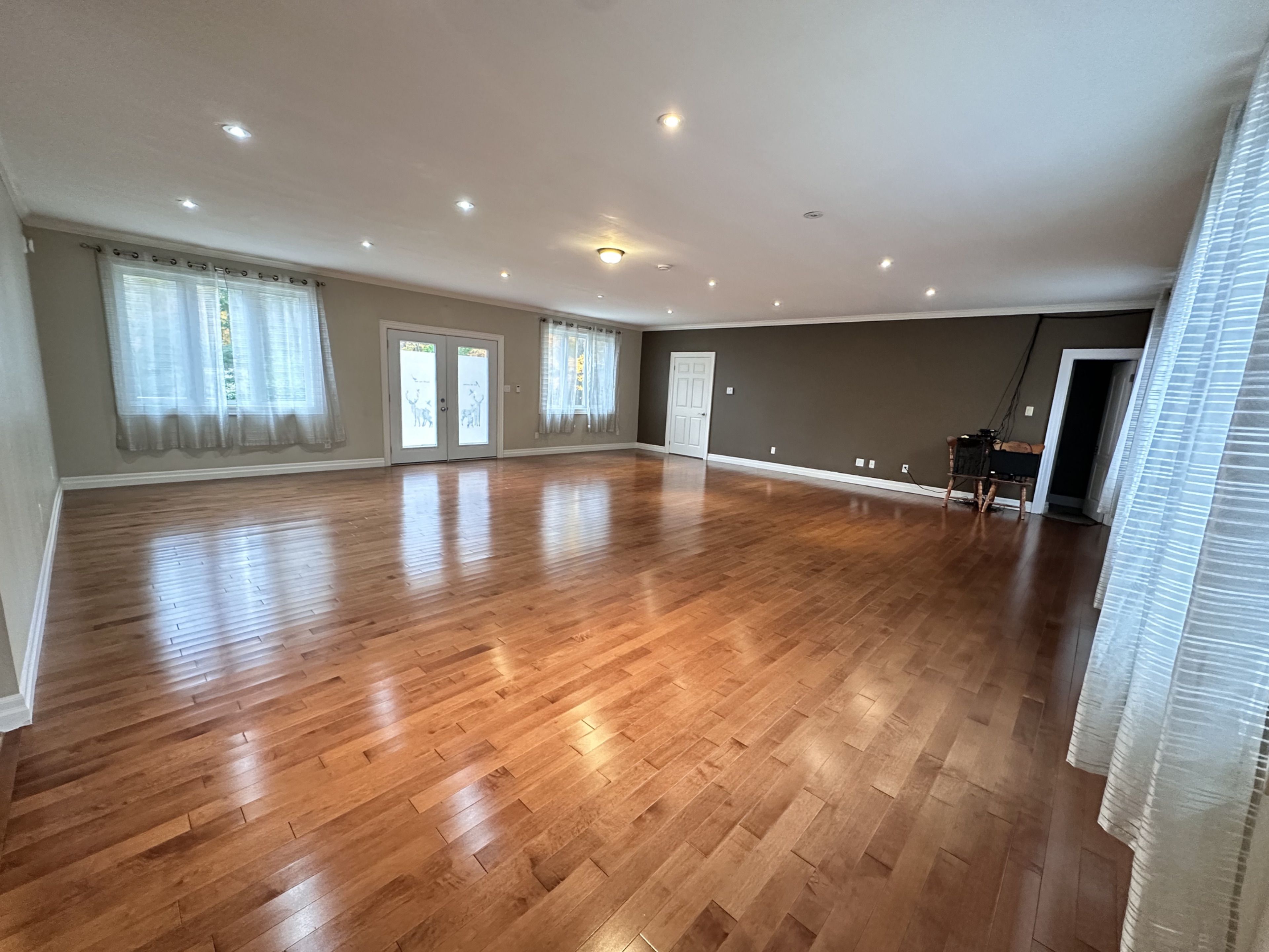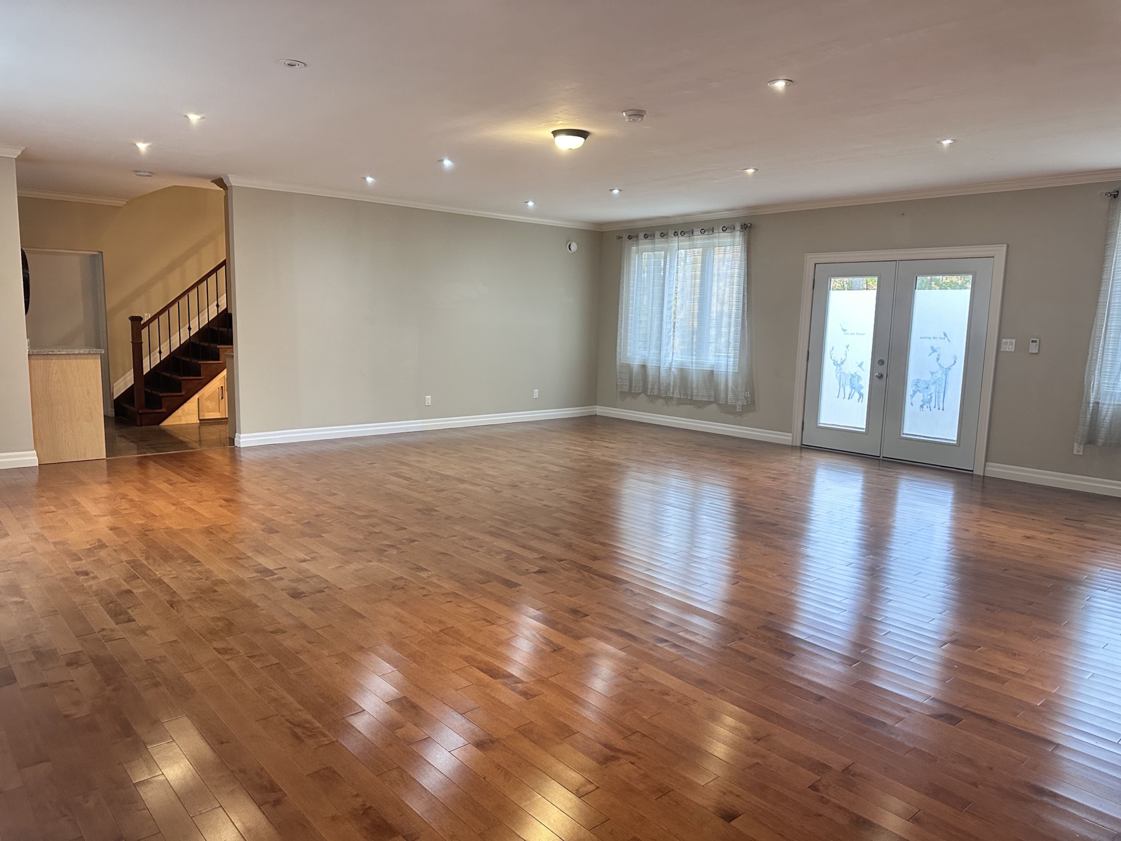 • Main floor features large living area with hardwood flooring and big windows.