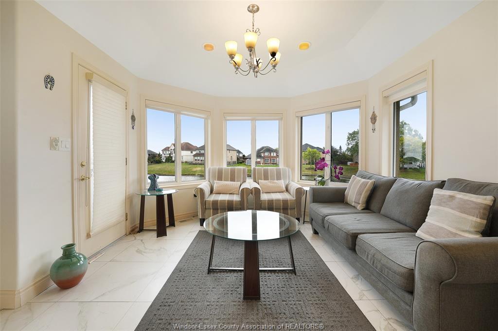 Welcome to southwood lakes, one of windsor’s most sought-after neighbourhoods! This beautifully updated ranch sits on a quiet street backing onto picturesque lake laguna. Featuring 5 bedrooms with potential for a 6th (office in basement), 3 full bathrooms plus 1 powder room, and a spacious, custom layout with vaulted ceilings that create a bright, airy feel from the moment you walk in. Enjoy a stunning four-season sunroom overlooking the water, a gorgeous updated kitchen, and a luxurious primary suite with ensuite bath. The finished basement offers plenty of space for family or entertaining. Extensively updated throughout, including kitchen, furnace, ac, flooring, basement, and more. Known for its scenic walking trails, open green spaces, parks for kids this home is in close proximity to south windsor’s best shopping & dining experiences as well as main roads and highways. A truly rare opportunity to own a unique waterfront home in a quiet, family-friendly community.