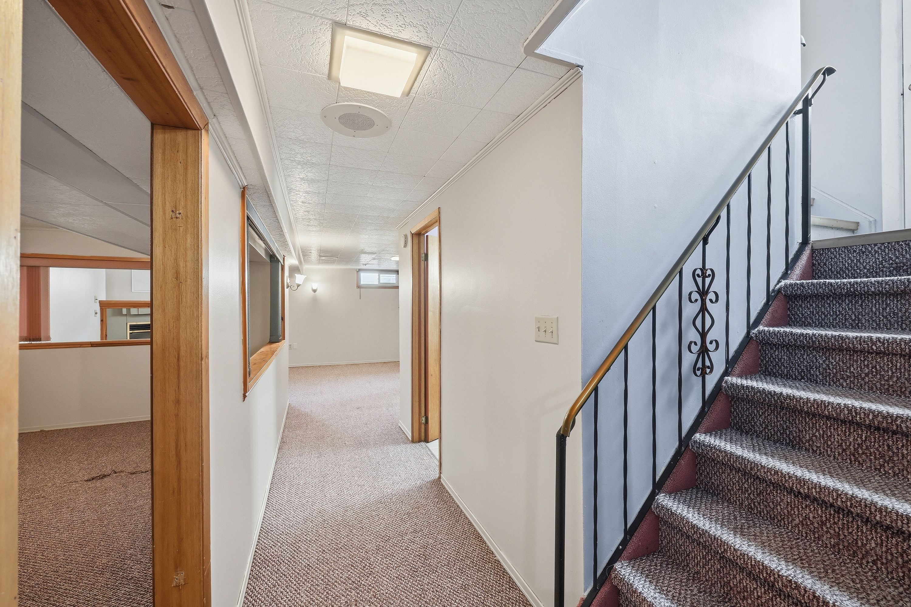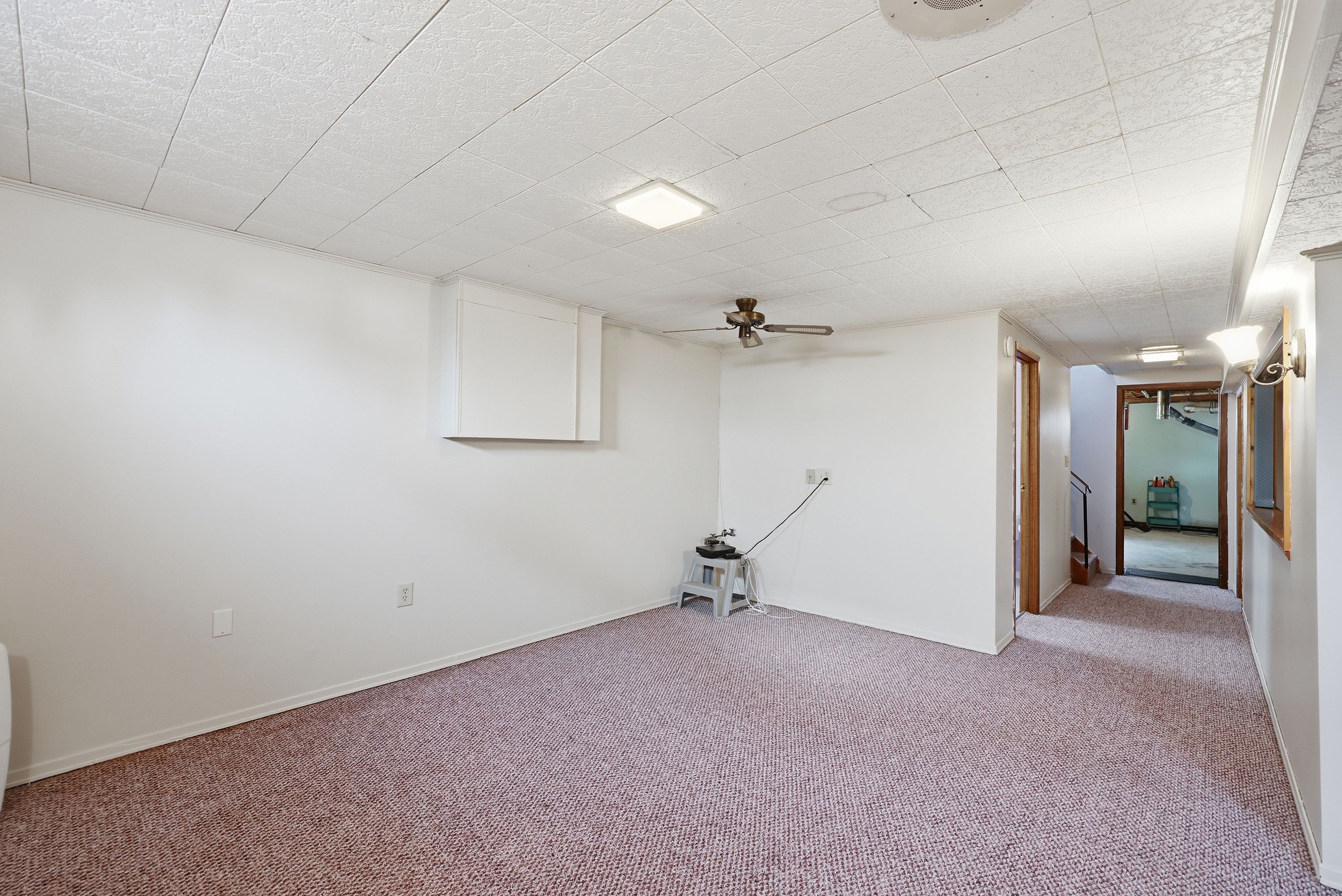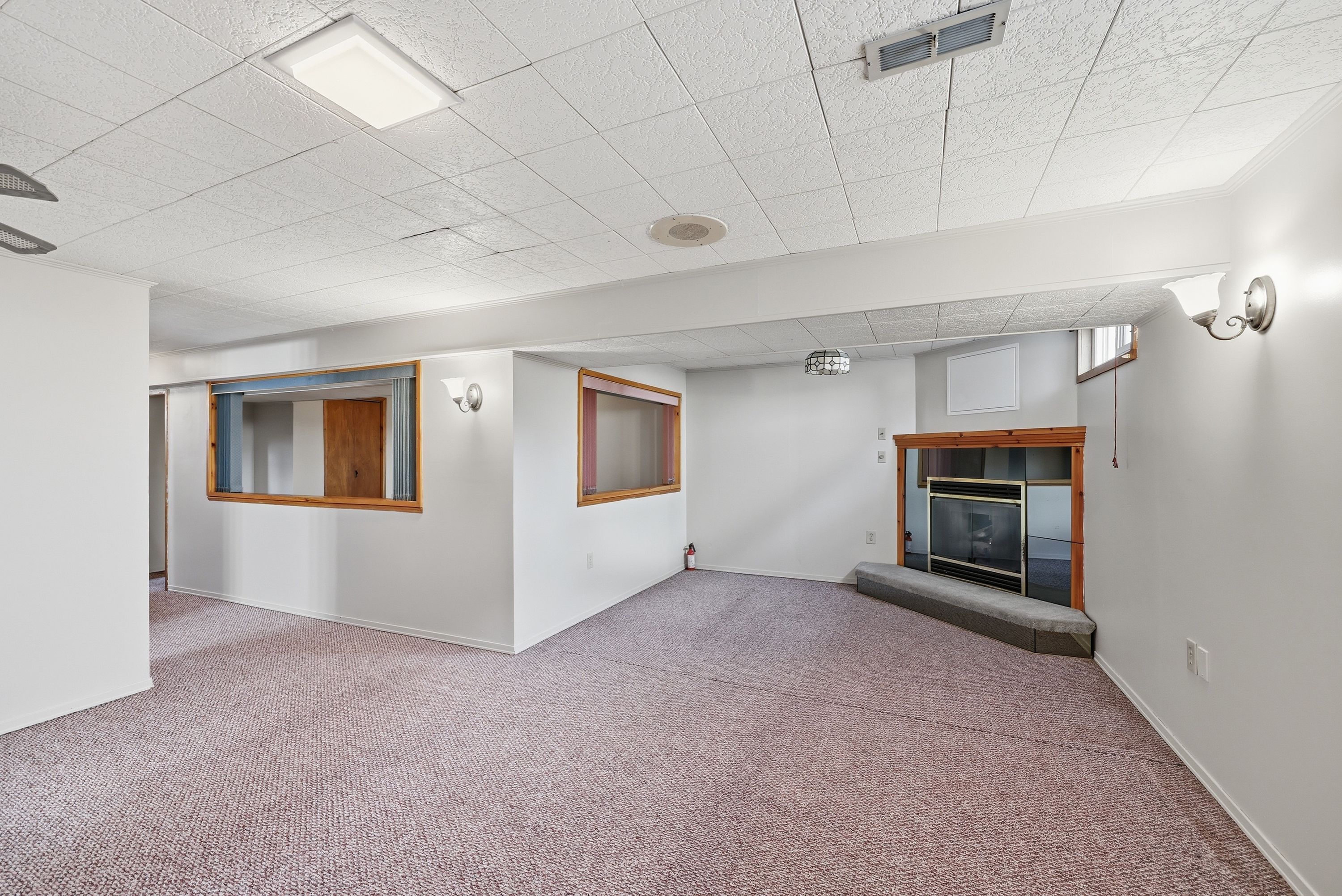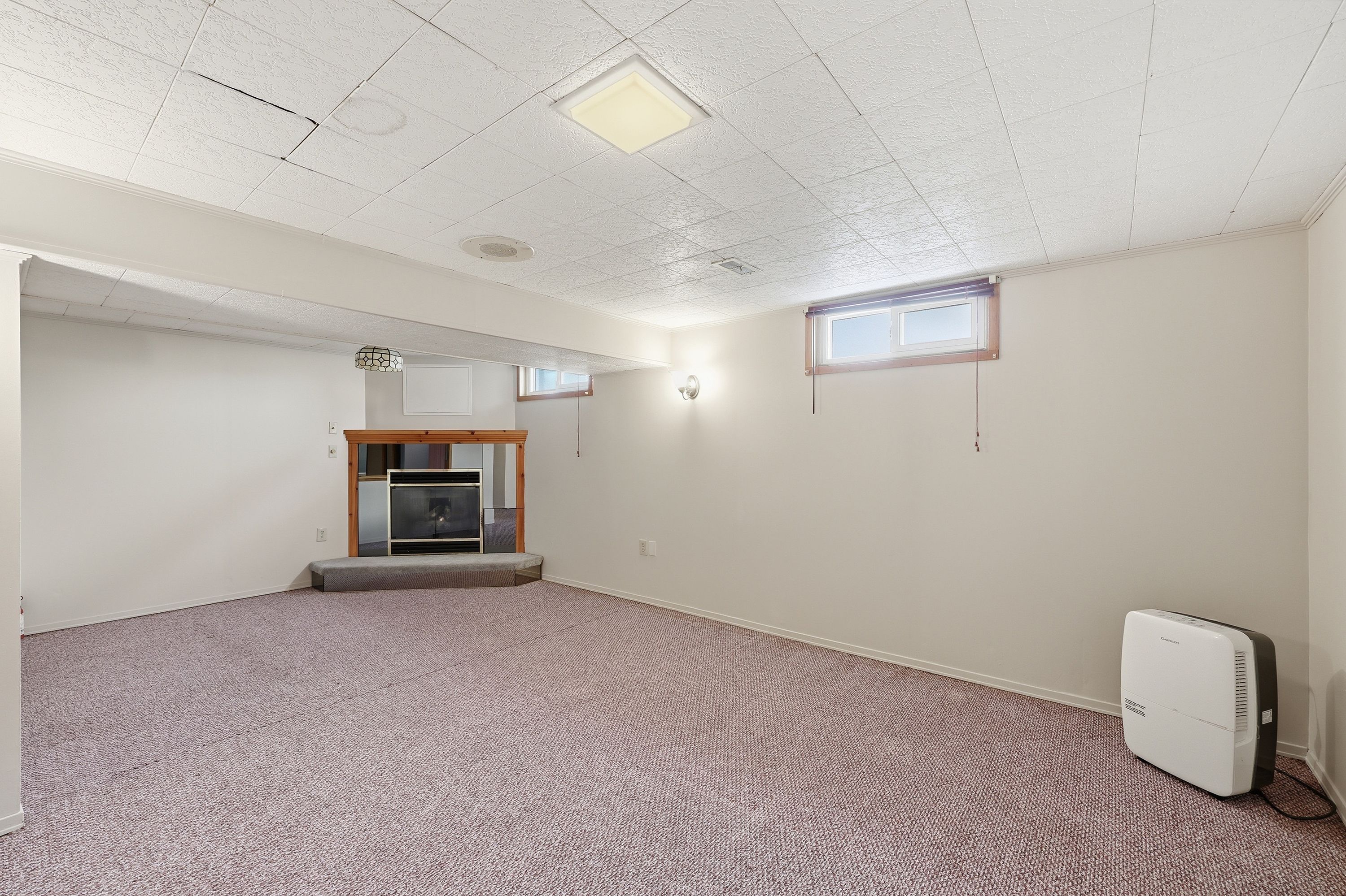 • Spacious basement with a gas fireplace and designated play area.