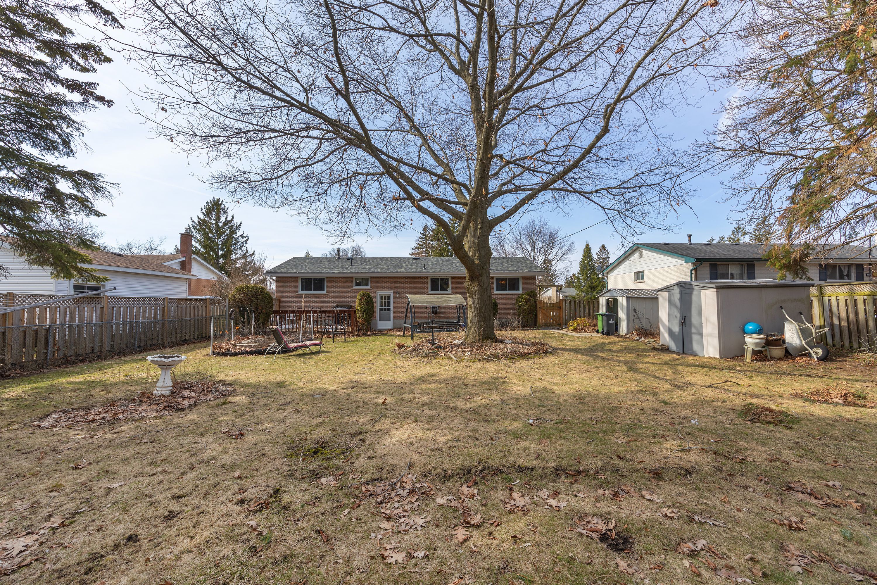 • Large level lot with a majestic oak tree for natural shade.
