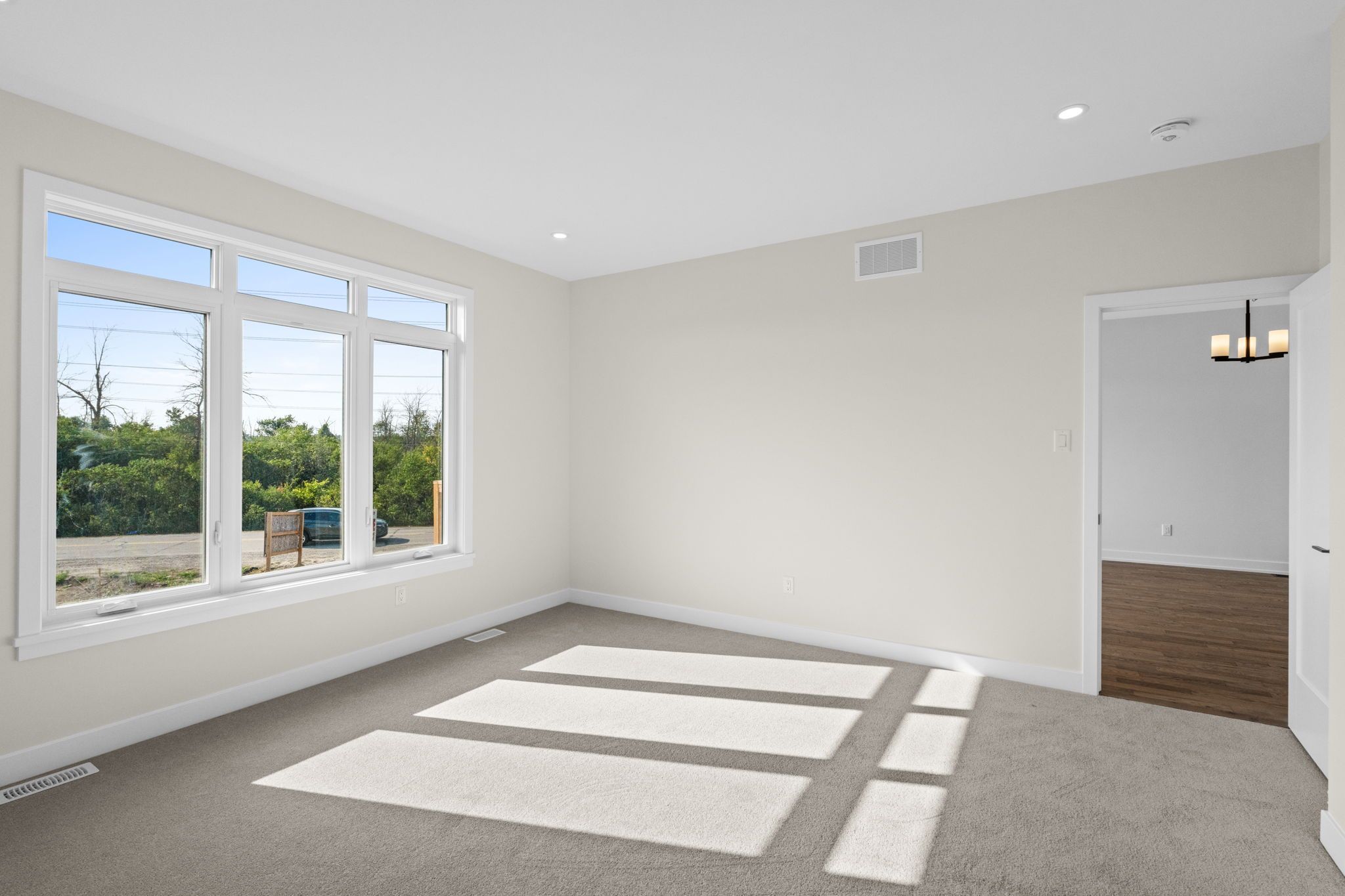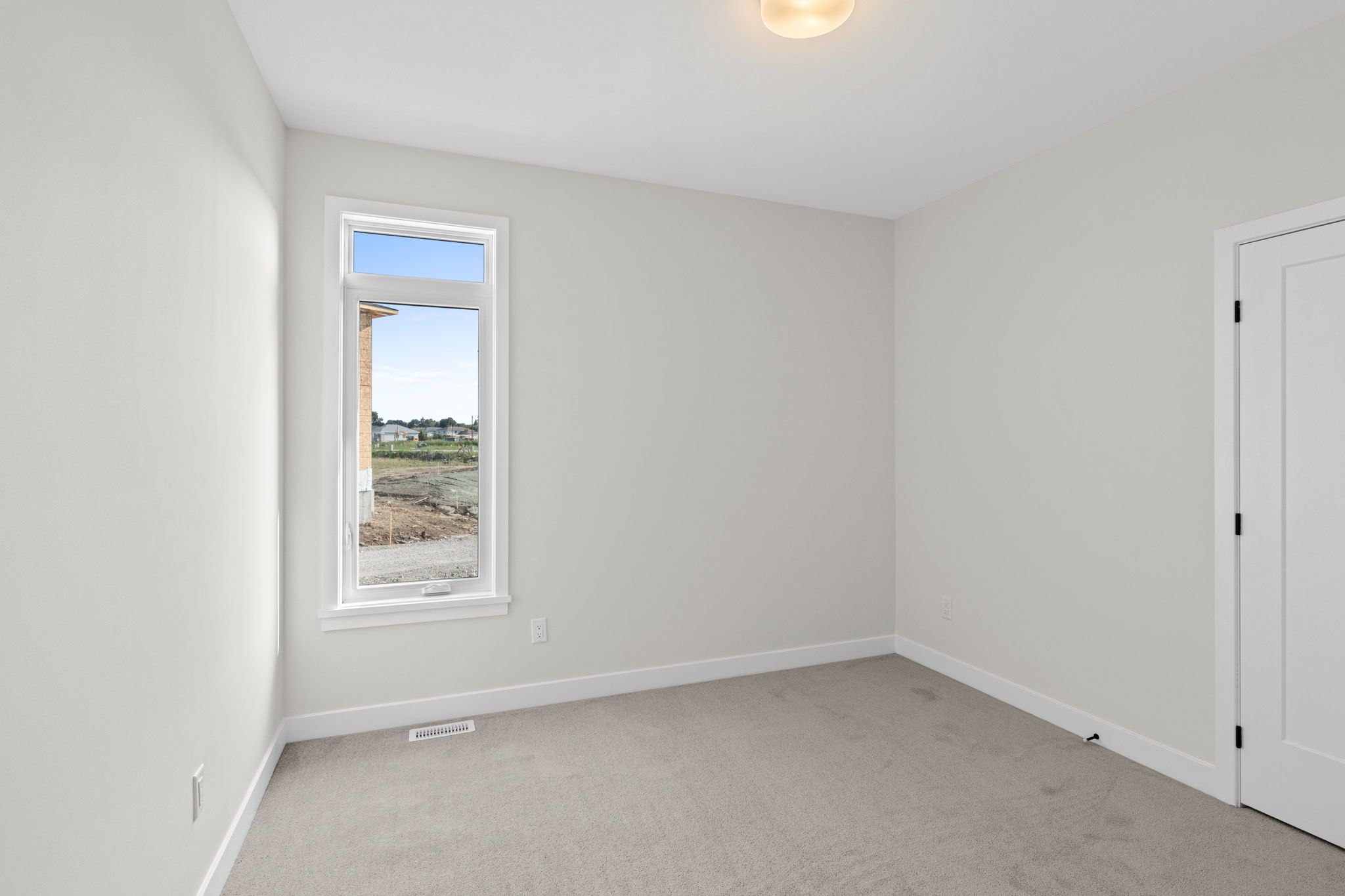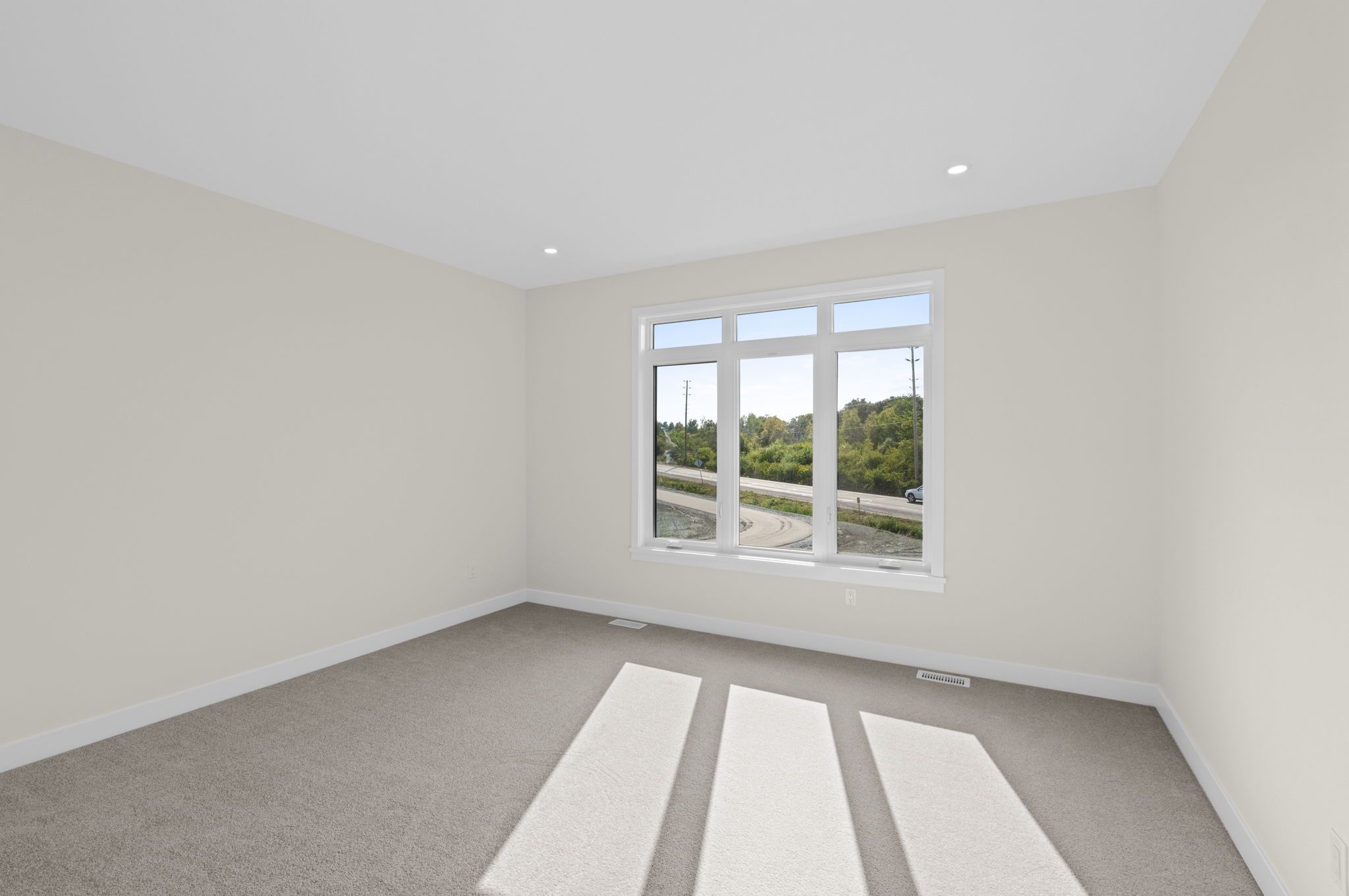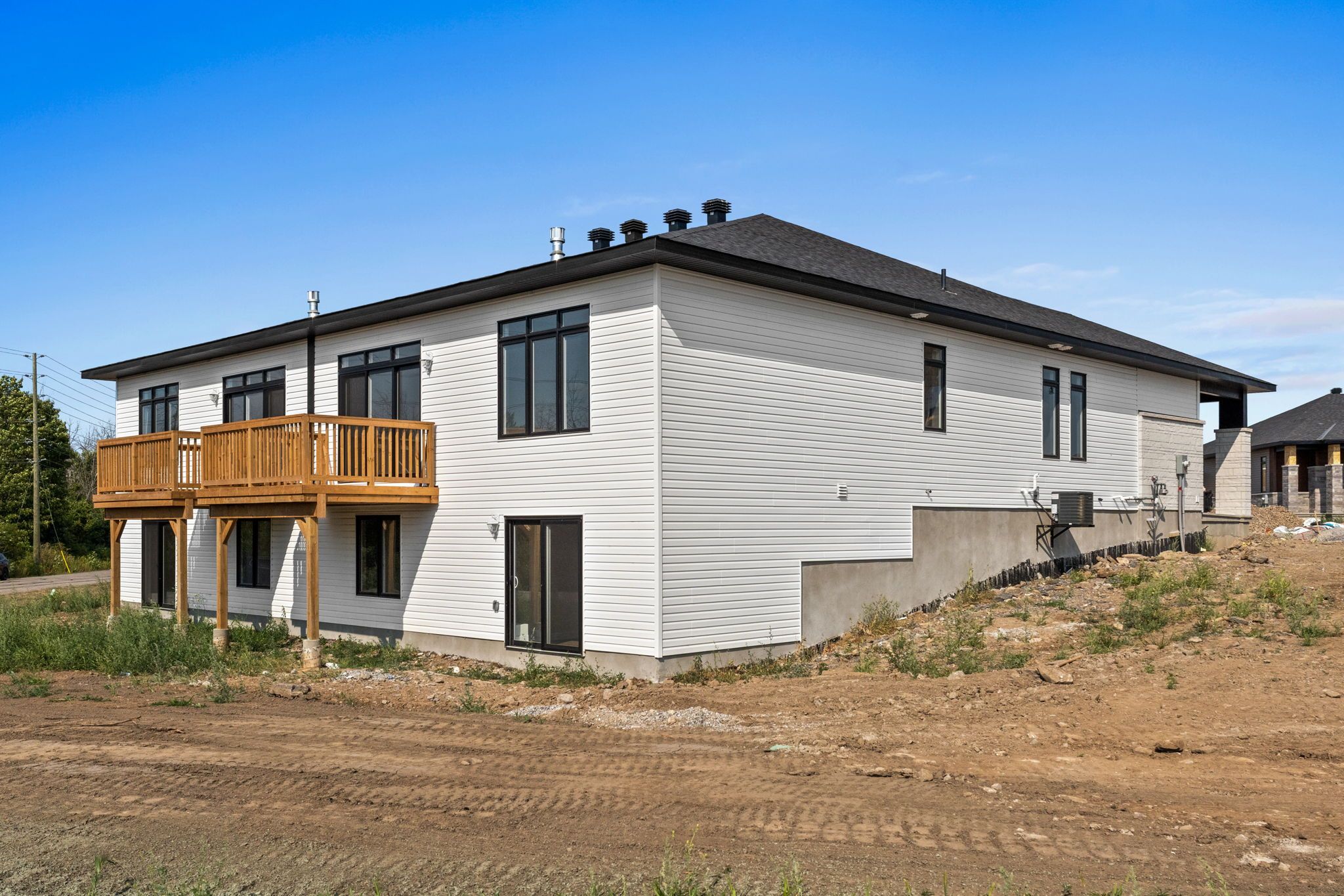 Set in brockville's stirling meadows, this newly built semi-detached bungalow blends contemporary design with a convenient location, just moments from highway 401 and close to shopping, dining, and recreational amenities. The grenville walkout model by mackie homes offers approximately 1,580 square feet of thoughtfully designed living space, including three bedrooms, two bathrooms, main-level laundry, a single-car garage, and a desirable walkout elevation that opens to the backyard. A covered front porch welcomes you inside, where a bright, open-concept layout connects the kitchen, dining area, and living room. The kitchen is appointed with ample cabinetry, quartz countertops, an elongated tile backsplash, a pantry, and a centre island that anchors the space. The living room features a natural gas fireplace and access to the sun deck, extending the living area outdoors. The primary bedroom includes a walk-in closet and a four-piece ensuite with a dual-sink vanity. Two additional bedrooms and a full bathroom complete the main-level layout.