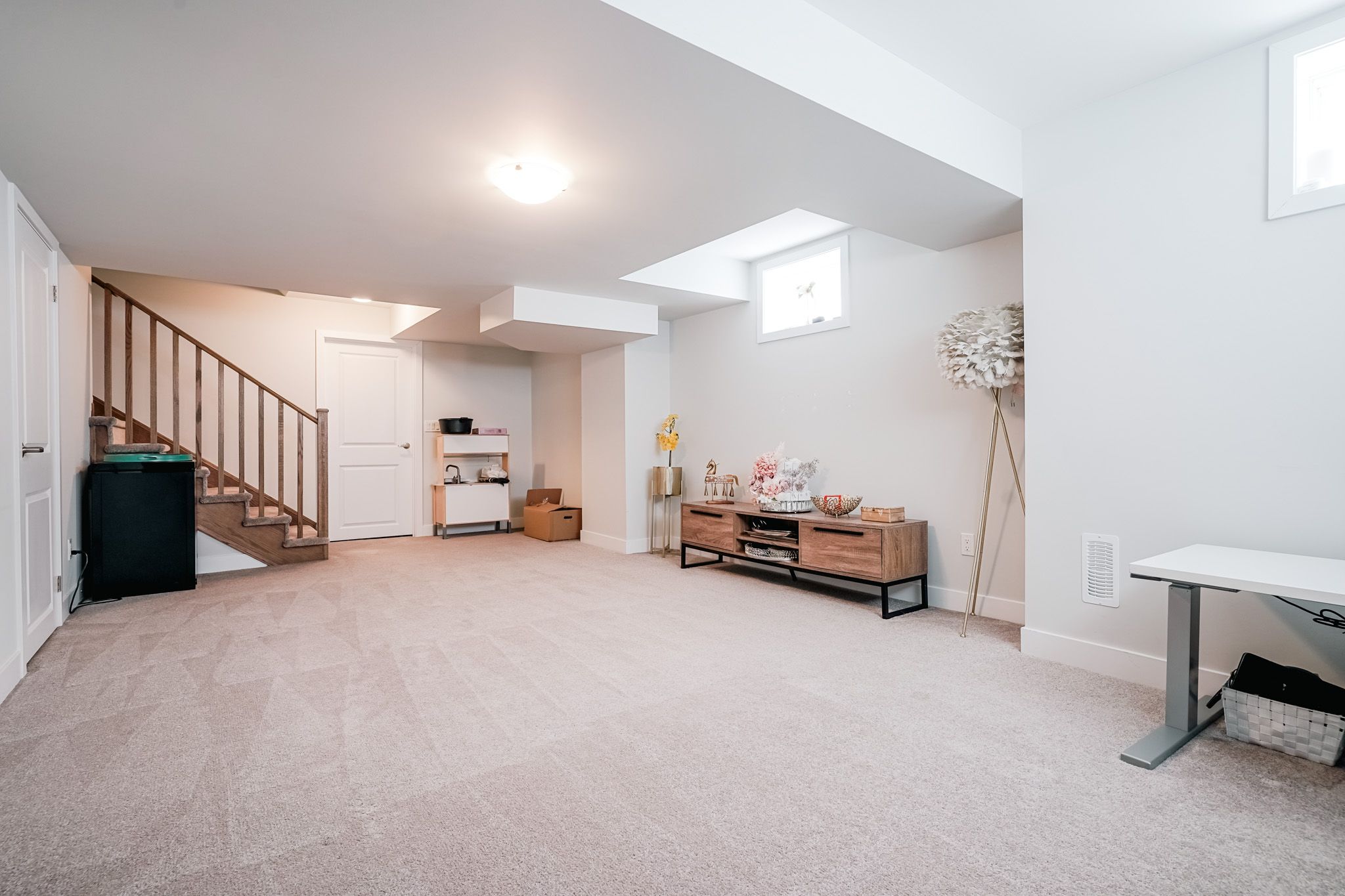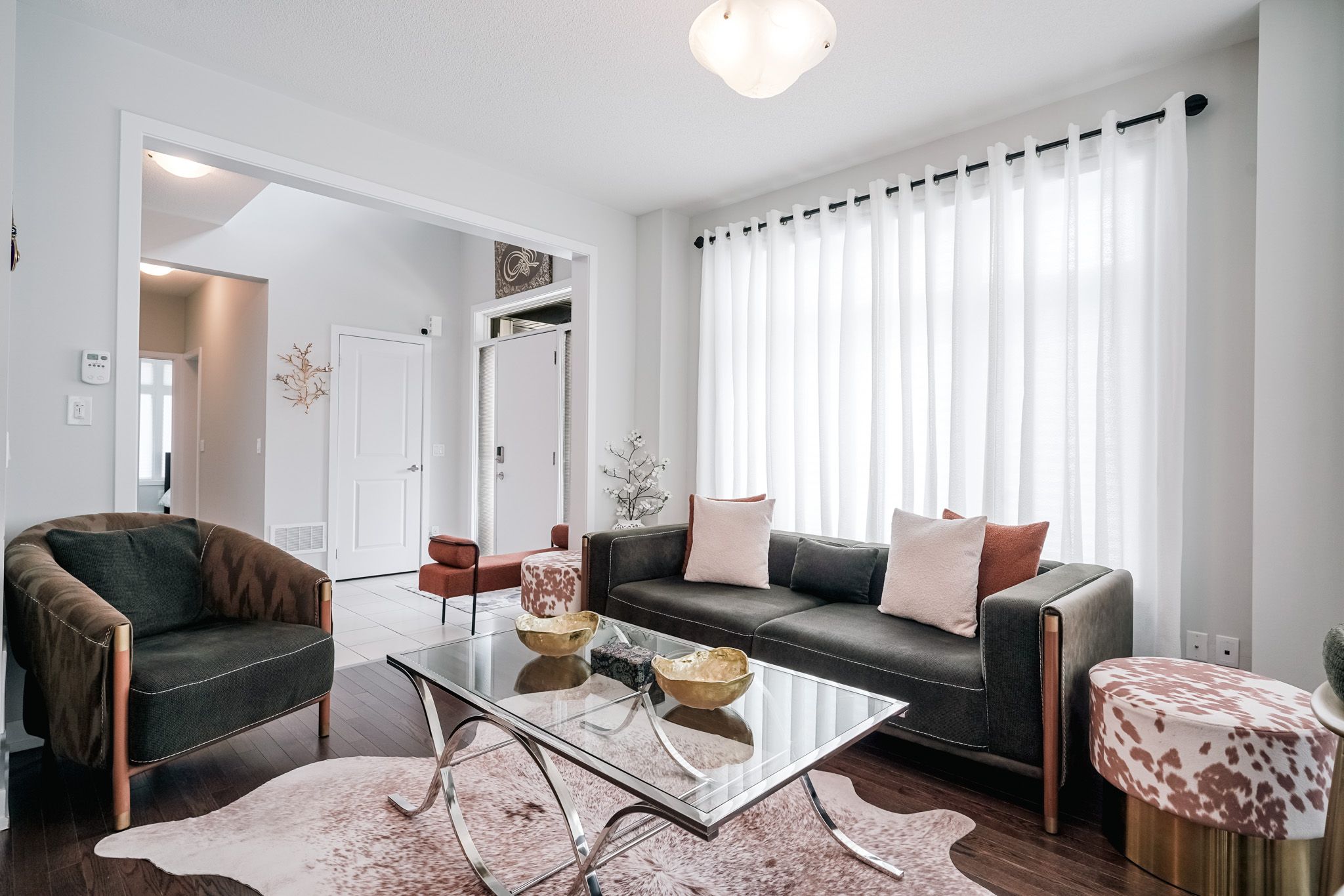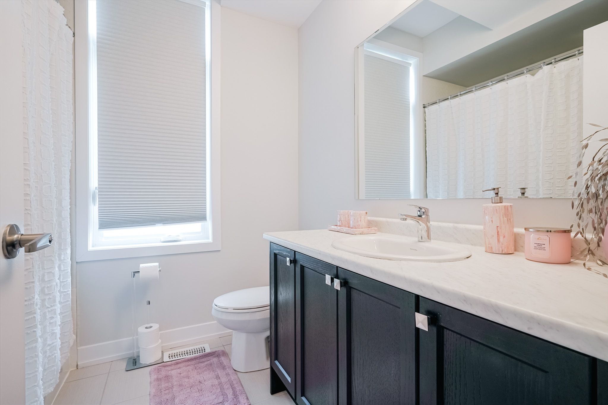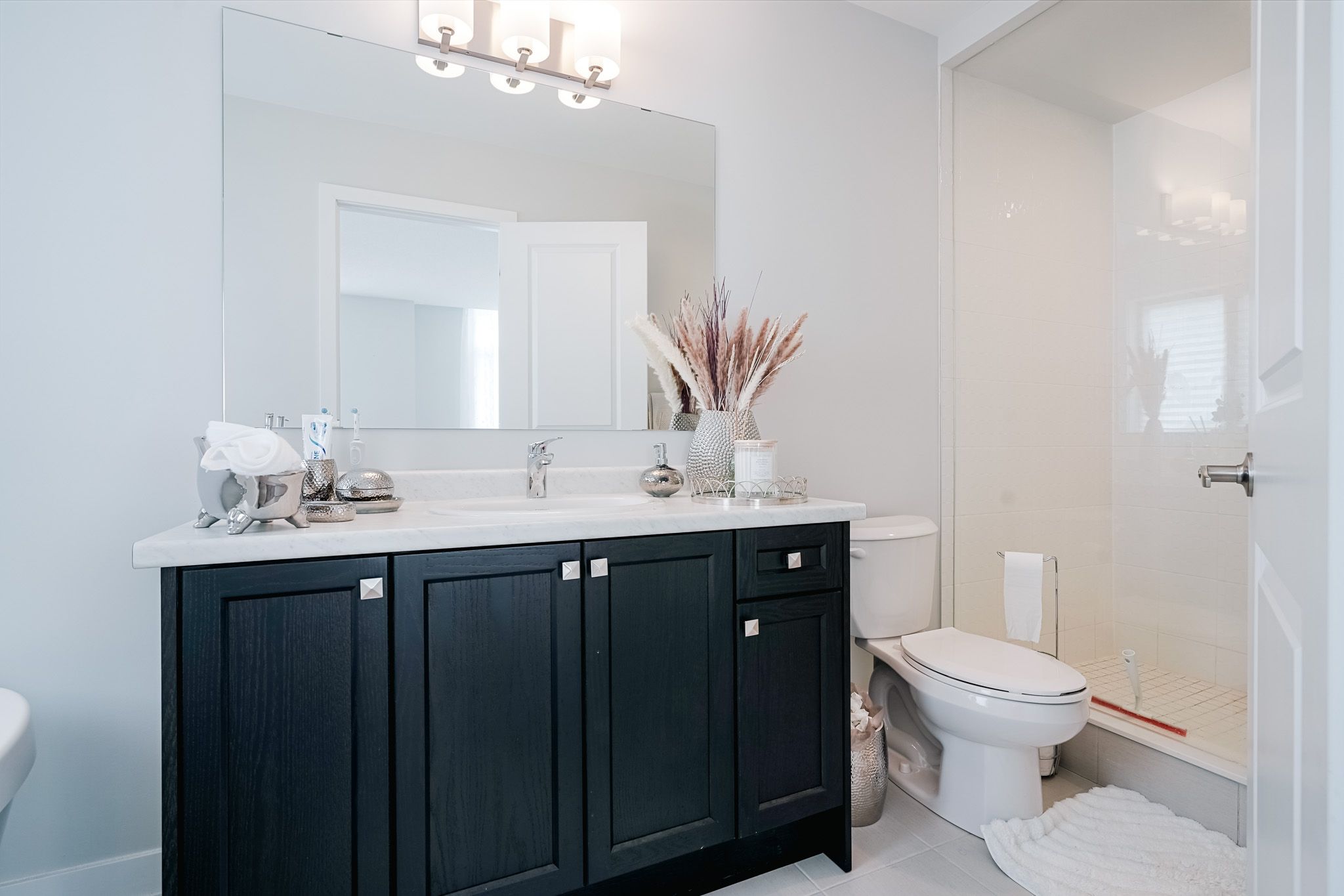 Welcome to this stunning corner townhouse in oshawa's newly developed kedron community by minto. Built just 1 year ago and offering 2,261 sq ft of thoughtfully designed living space, this home blends modern finishes with family functionality. The main floor features a guest suite with a full bathroom, perfect for in-laws or visitors. Smooth 9 ft ceilings and large windows create a bright, airy atmosphere, while the open-concept living, dining, and kitchen/breakfast area makes entertaining seamless. The kitchen boasts stainless steel appliances, ample cabinetry, and plenty of counter space. Rich hardwood flooring flows through the main level, with cozy carpeting in bedrooms and basement. Upstairs, you'll find three spacious bedrooms and two full bathrooms, including a huge primary retreat with a walk-in closet and spa-inspired ensuite. One of the bedrooms even features a charming juliet balcony. For convenience, the laundry room is located on the second floor. The professionally finished basement by the builder offers an additional level of living space with 8 ft ceilings, ideal as a recreation room, office, or gym. As a corner unit, this townhouse enjoys an abundance of natural light and extra privacy, making it feel more like a detached home. With its generous layout, its perfectly suited for a young family or multi-generational living. Nestled in kedron, one of oshawa's most desirable new communities, you'll enjoy proximity to parks, schools, shops, and easy access to major highways. This is not just a home its a lifestyle opportunity in one of durham's fastest-growing neighborhoods.