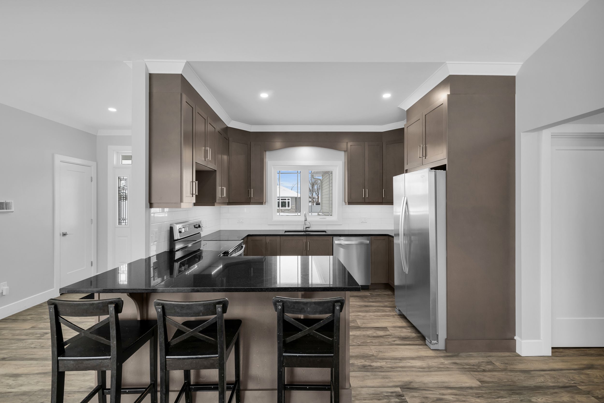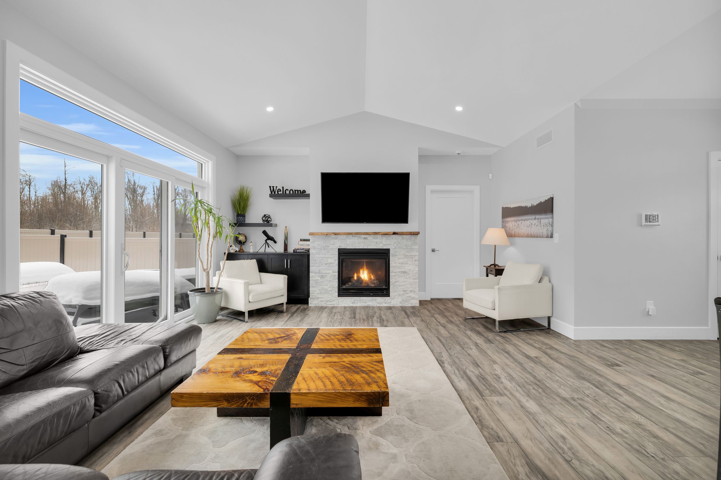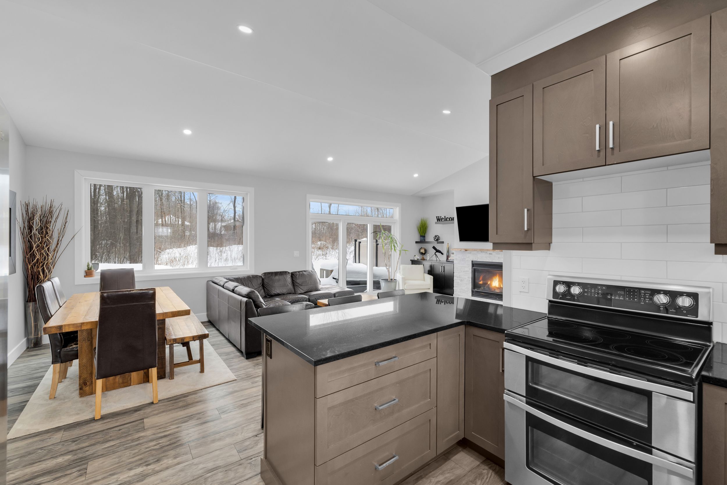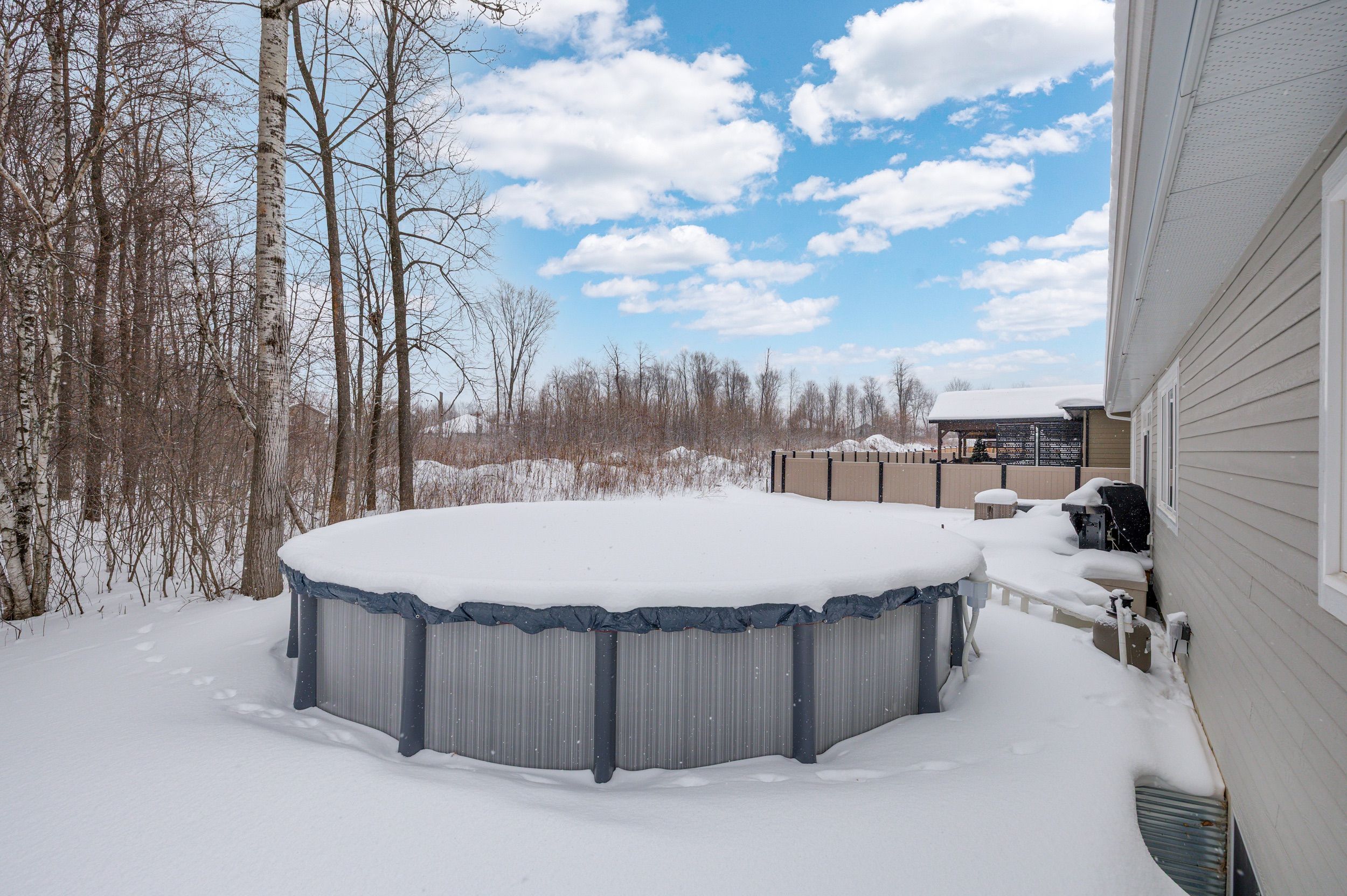Welcome to 1077 shearer drive, ideally positioned in the newest phase of brockville's prestigious bridlewood subdivision. This impressive bungalow sits on a rare double lot, currently with no rear neighbours, delivering exceptional privacy and space in a setting that continues to grow in value. Inside, a bright and airy open-concept living and dining area sets the stage for everyday comfort and stylish entertaining. Vaulted ceilings, a cozy gas fireplace, and custom built-in cabinetry create a space that feels both welcoming and refined. The kitchen makes a bold statement with moody cabinetry, sleek black quartz countertops, and a functional eat-at peninsula-perfect for morning coffee, homework time, or hosting friends. A thoughtfully designed mudroom and laundry area connects directly to the true two-car garage, keeping life streamlined and organized. The primary suite offers a peaceful retreat with a walk-in closet and private 3-piece ensuite, while two additional generous bedrooms and a full 4-piece bath complete the main level. Downstairs, the finished lower level expands your living space with a large rec room ideal for movie nights or game night with the pool table, plus a dedicated office area, guest bedroom, and rough-in for a future bathroom-providing flexibility for extended family or teens. Out back, your private yard features an above-ground pool (removable at the buyer's request) for endless summer fun, while the freshly paved driveway adds curb appeal and everyday convenience. Stylish, spacious, and smartly priced-this home truly checks every box. Don't overpay for less elsewhere... This could be one of brockville's best values and a standout investment for the discerning buyer.