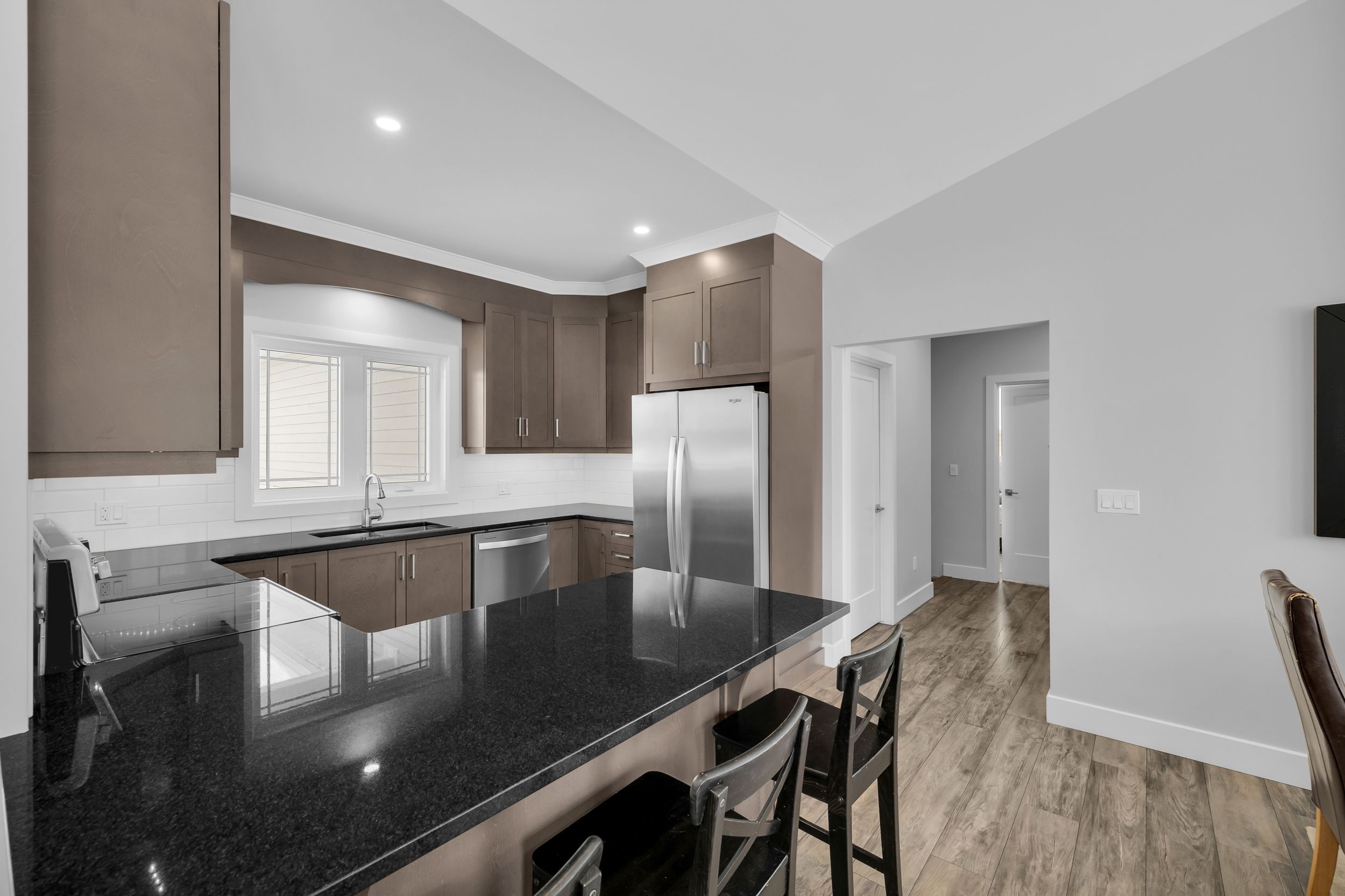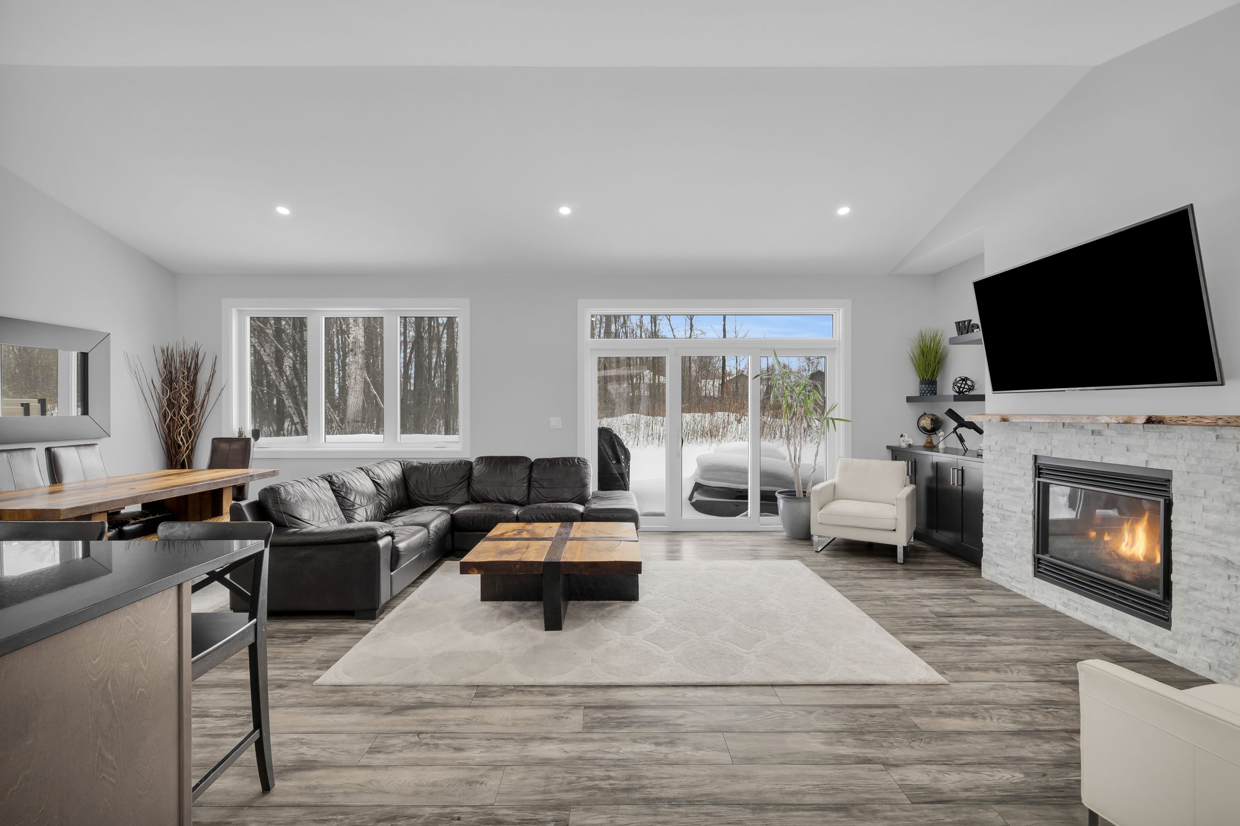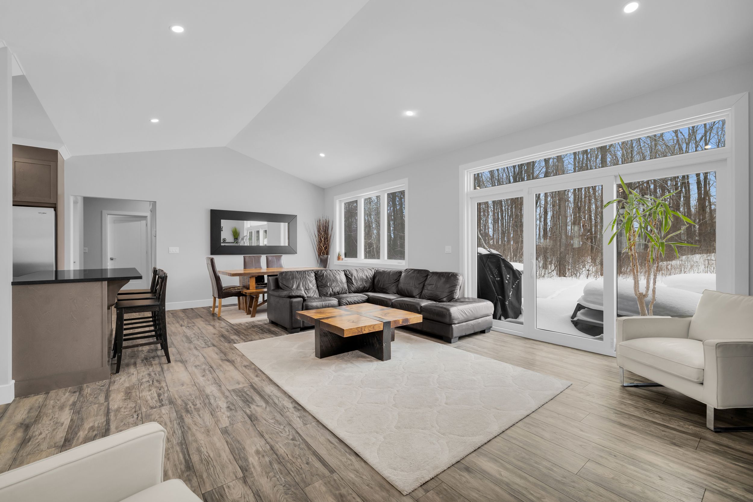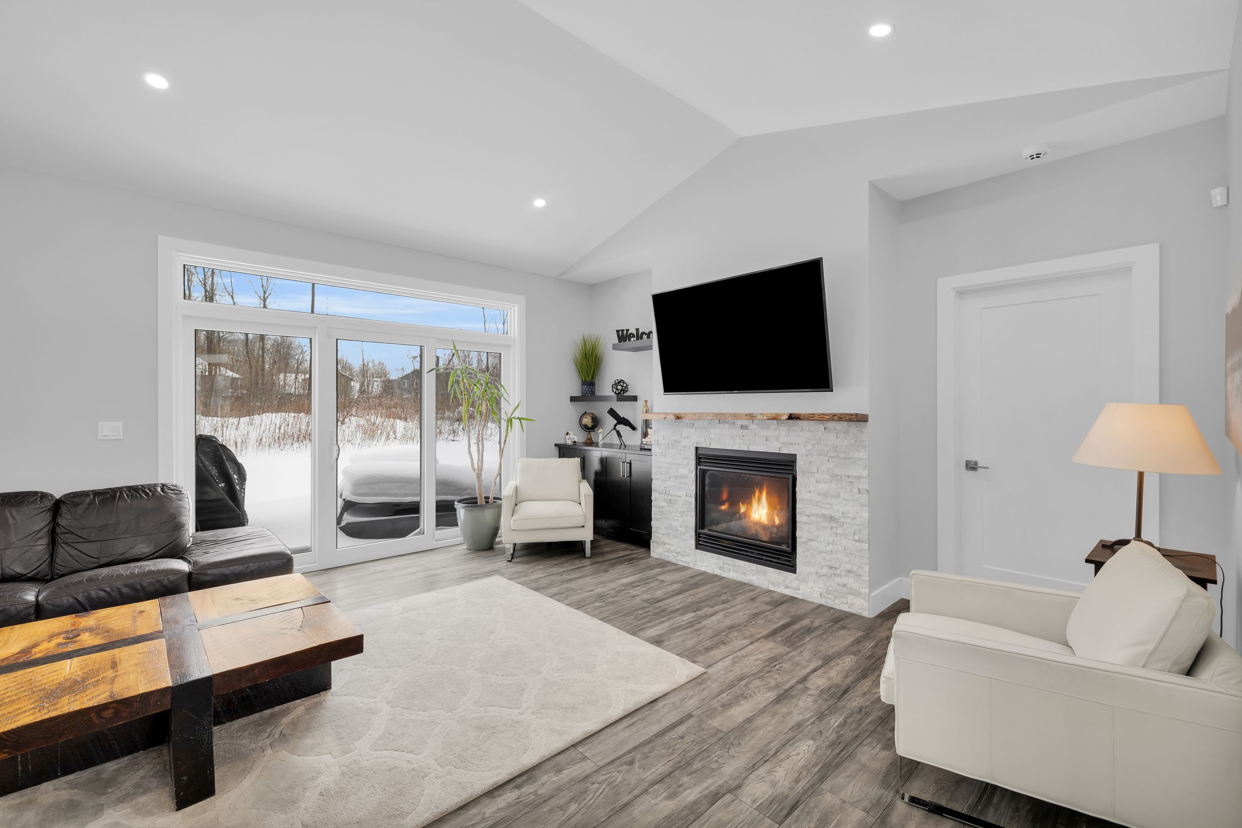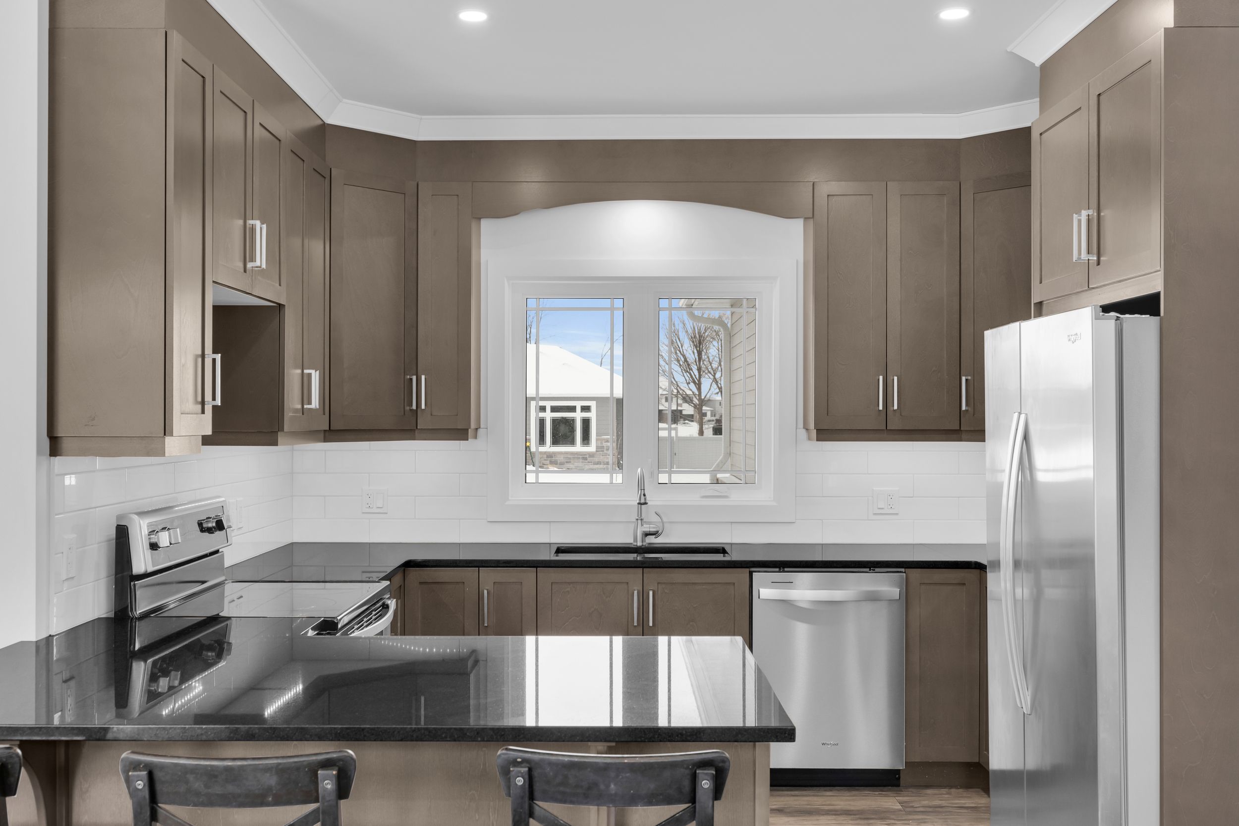 Welcome to 1077 shearer drive, ideally positioned in the newest phase of brockville's prestigious bridlewood subdivision. This impressive bungalow sits on a rare double lot, currently with no rear neighbours, delivering exceptional privacy and space in a setting that continues to grow in value. Inside, a bright and airy open-concept living and dining area sets the stage for everyday comfort and stylish entertaining. Vaulted ceilings, a cozy gas fireplace, and custom built-in cabinetry create a space that feels both welcoming and refined. The kitchen makes a bold statement with moody cabinetry, sleek black quartz countertops, and a functional eat-at peninsula-perfect for morning coffee, homework time, or hosting friends. A thoughtfully designed mudroom and laundry area connects directly to the true two-car garage, keeping life streamlined and organized. The primary suite offers a peaceful retreat with a walk-in closet and private 3-piece ensuite, while two additional generous bedrooms and a full 4-piece bath complete the main level. Downstairs, the finished lower level expands your living space with a large rec room ideal for movie nights or game night with the pool table, plus a dedicated office area, guest bedroom, and rough-in for a future bathroom-providing flexibility for extended family or teens. Out back, your private yard features an above-ground pool (removable at the buyer's request) for endless summer fun, while the freshly paved driveway adds curb appeal and everyday convenience. Stylish, spacious, and smartly priced-this home truly checks every box. Don't overpay for less elsewhere... This could be one of brockville's best values and a standout investment for the discerning buyer.