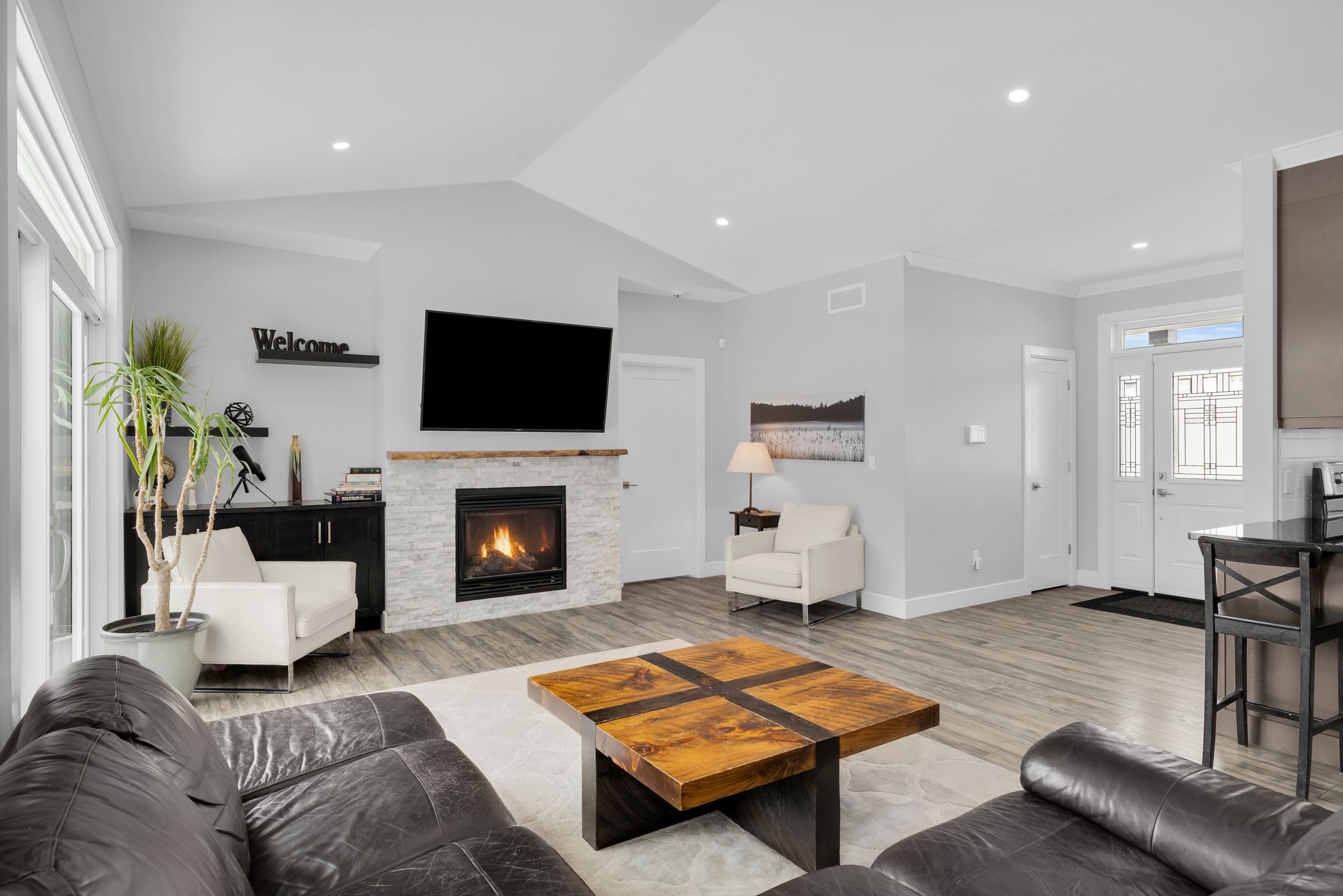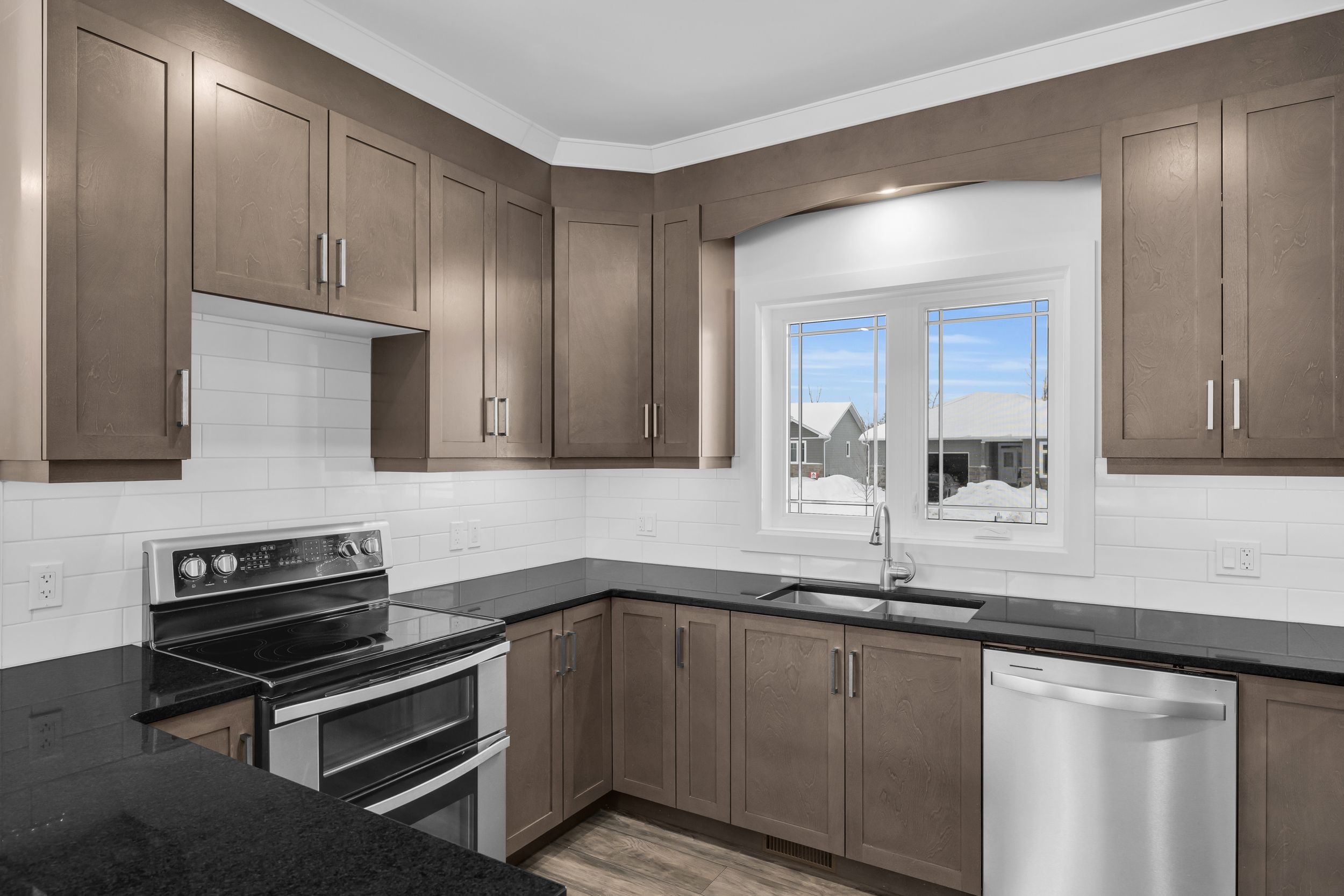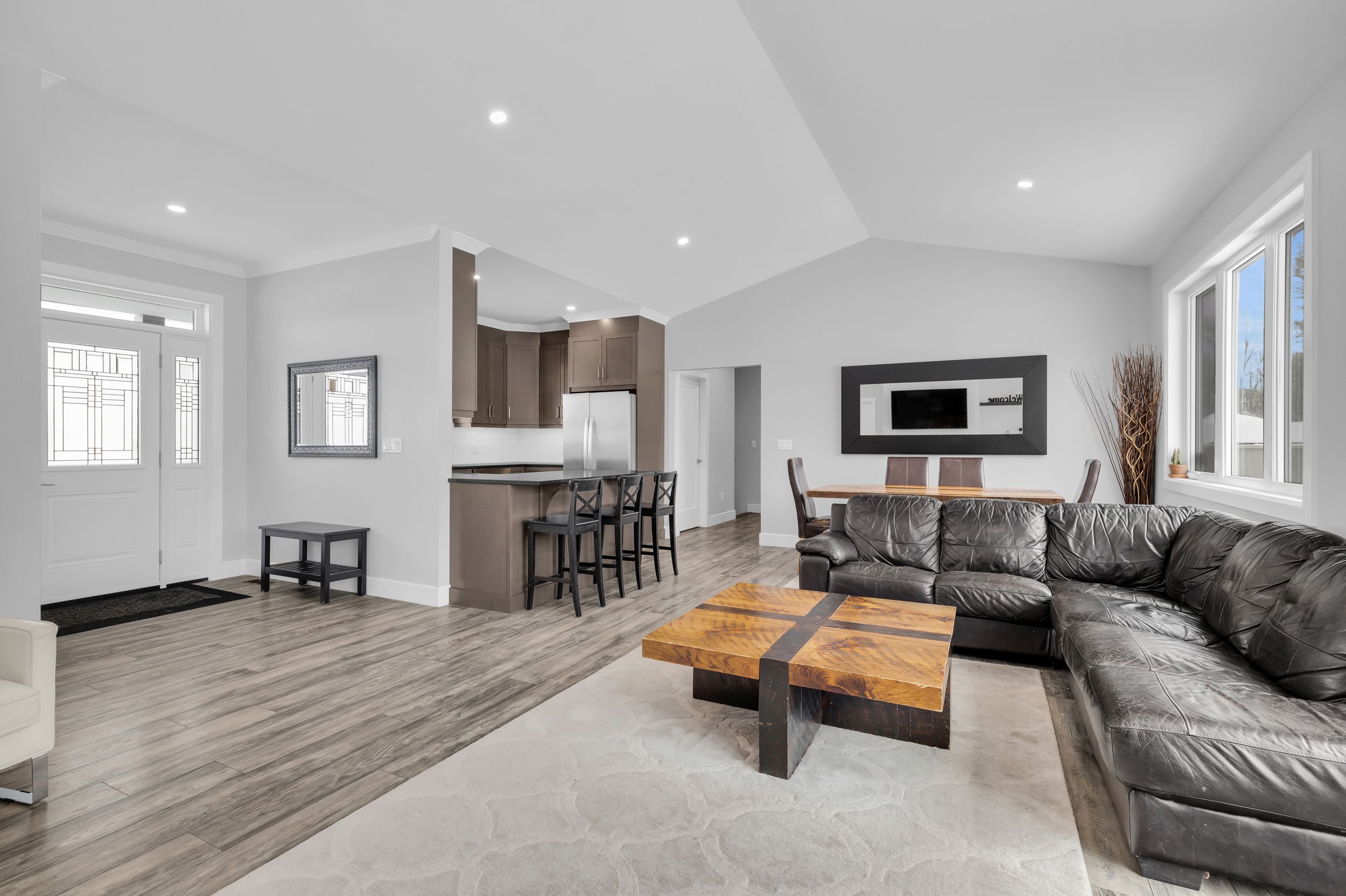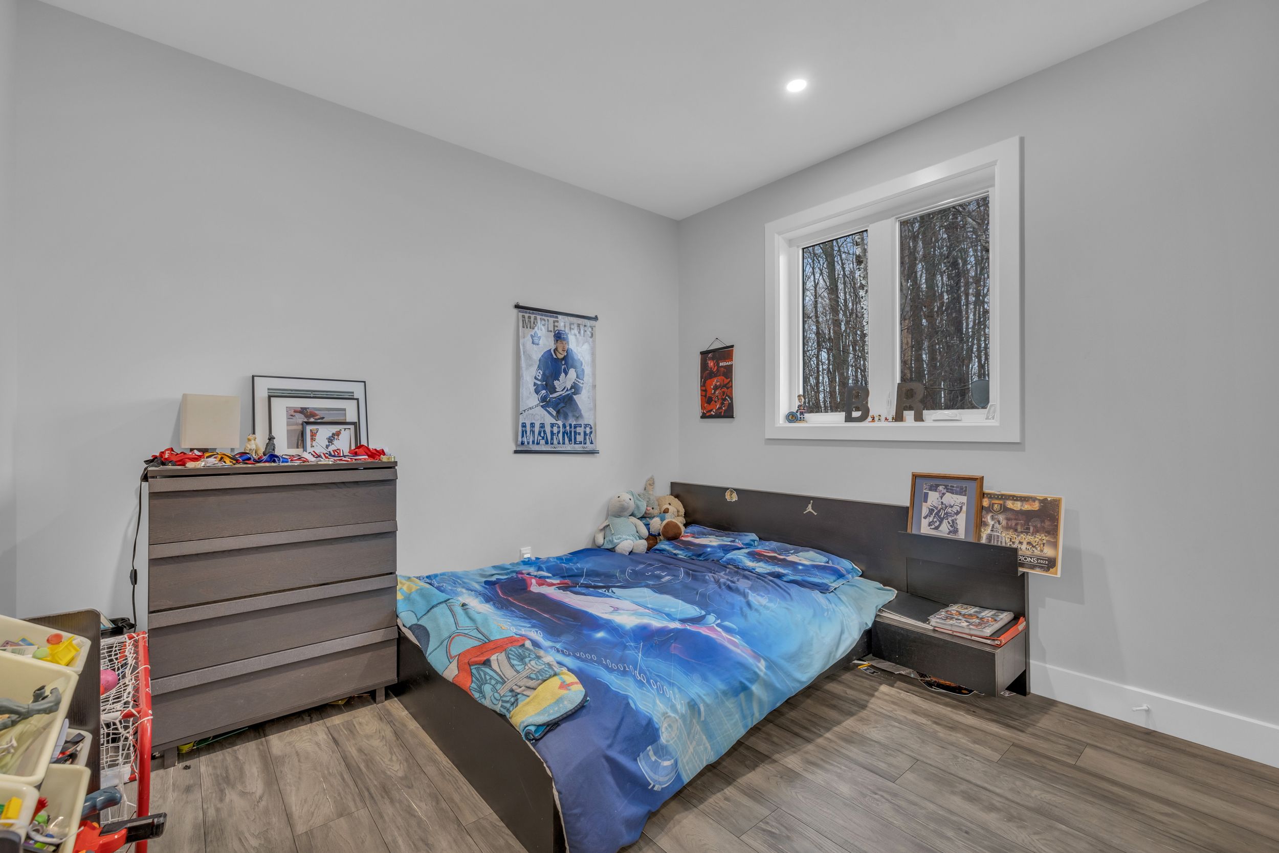 Welcome to 1077 shearer drive, ideally positioned in the newest phase of brockville's prestigious bridlewood subdivision. This impressive bungalow sits on a rare double lot, currently with no rear neighbours, delivering exceptional privacy and space in a setting that continues to grow in value. Inside, a bright and airy open-concept living and dining area sets the stage for everyday comfort and stylish entertaining. Vaulted ceilings, a cozy gas fireplace, and custom built-in cabinetry create a space that feels both welcoming and refined. The kitchen makes a bold statement with moody cabinetry, sleek black quartz countertops, and a functional eat-at peninsula-perfect for morning coffee, homework time, or hosting friends. A thoughtfully designed mudroom and laundry area connects directly to the true two-car garage, keeping life streamlined and organized. The primary suite offers a peaceful retreat with a walk-in closet and private 3-piece ensuite, while two additional generous bedrooms and a full 4-piece bath complete the main level. Downstairs, the finished lower level expands your living space with a large rec room ideal for movie nights or game night with the pool table, plus a dedicated office area, guest bedroom, and rough-in for a future bathroom-providing flexibility for extended family or teens. Out back, your private yard features an above-ground pool (removable at the buyer's request) for endless summer fun, while the freshly paved driveway adds curb appeal and everyday convenience. Stylish, spacious, and smartly priced-this home truly checks every box. Don't overpay for less elsewhere... This could be one of brockville's best values and a standout investment for the discerning buyer.