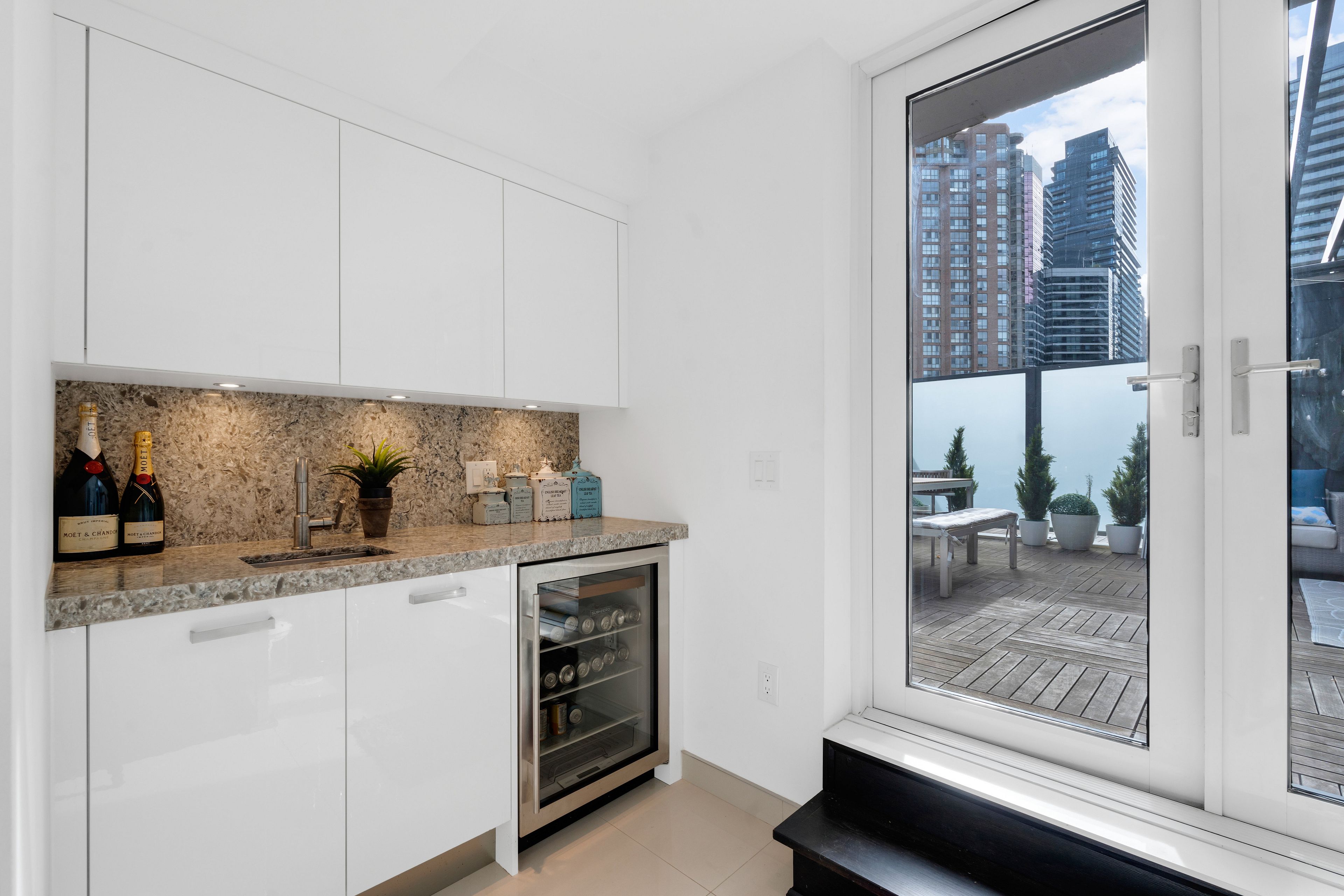 A truly rare and exclusive opportunity in toronto's most sophisticated enclave. This prestigious yorkville residence townhome is part of the urban townhome collection at pemberton's acclaimed u condominiums, offering the ultimate in luxury and privacy with the conveniences of refined urban living. Perfectly positioned between st. Michael college and st. Basil's parish, this sun-filled,home spans nearly 3,000 sq. Ft. Of meticulously designed living space. The main level features soaring 10-ft ceilings, a custom irpinia kitchen with premium wolf & sub-zero appliances,and an expansive private terrace ideal for elegant entertaining. A private elevator connects all five levels, including three floors of opulent living space, a rooftop terrace with bar, bbq hookup, and a lower level with a rare oversized 2 car private garage and generous storage. The second level features one bedroom with own ensuite bath and walk-in w/built in closet, andone bedroom w/built in closet and bathroom, while the third level offers a serene primary retreat with custom walk-in closets, spa-inspired ensuite bath and an additional secondary bedroom w/built-in closet. Steps to bloor-yorkville's designer boutiques, world-class dining, u of t, and transit, this one-of-a-kind home seamlessly blends architectural excellence, elevated finishes, and an unrivaled lifestyle-crafted for the most discerning buyer.