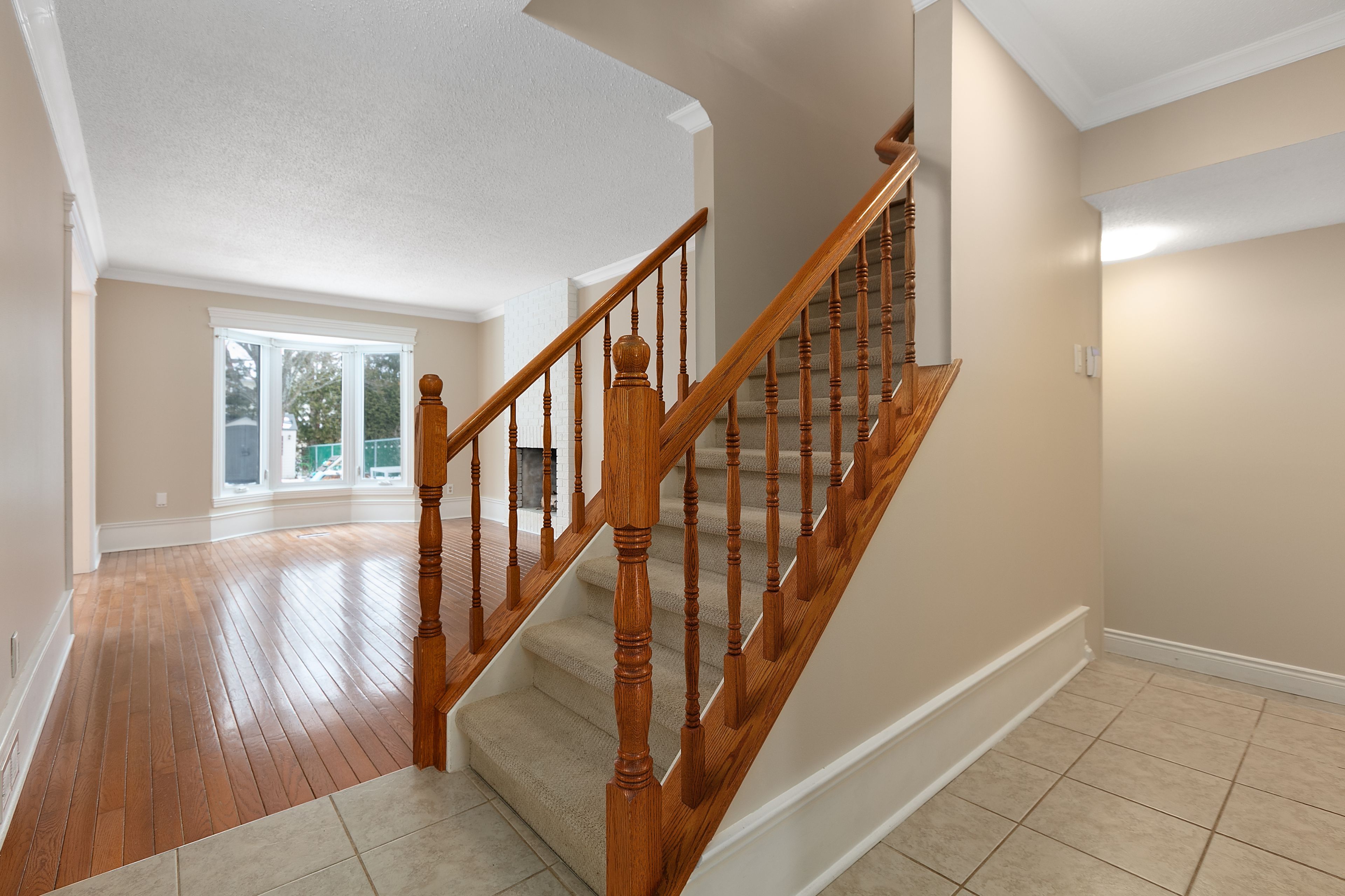 Exceptional four-bedroom home, attached only by the garage, ideally located in the desirable convent glen area. Nestled on a beautiful, private oversized lot, this property offers outstanding outdoor space and privacy. The main level features oak hardwood floors, enhanced trim, and elegant crown molding throughout. The bright living room includes a charming bay window and a wood-burning fireplace, flowing into a sunlit dining room. Upstairs offers four spacious bedrooms, while the finished lower level features newly installed vinyl flooring. Roof (2015), furnace (2013), a/c (2025), and dishwasher (2024). Fireplace is not certified. Situated on a quiet dead-end street - perfect for families with kids - just steps to three parks (including an off-leash park), playgrounds, river, bus stop, excellent schools, and only a 15-minute walk to the future lrt station. It has several ways to commute to dt ottawa. Move in and set in a fantastic neighborhood. Few photos are virtually staged