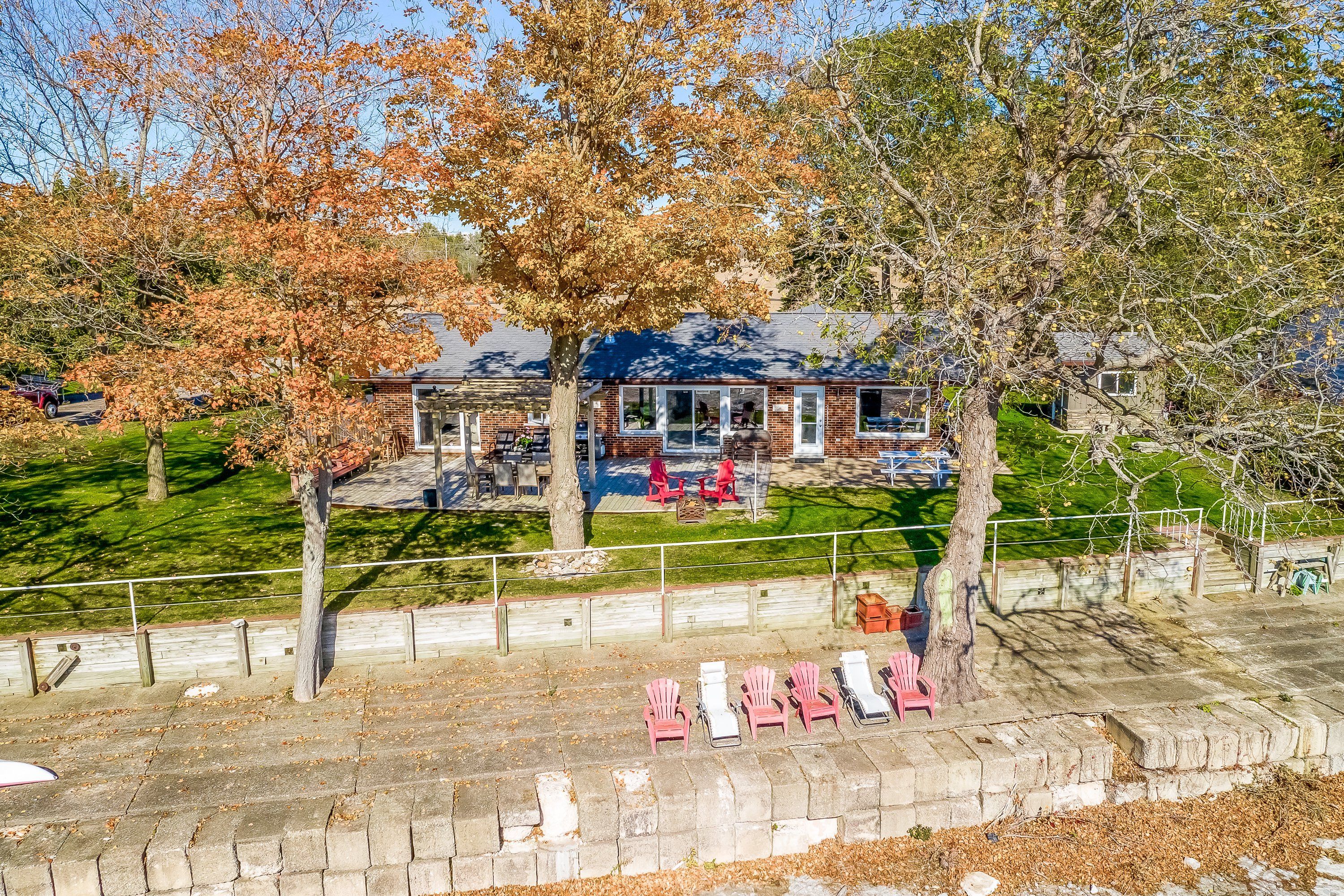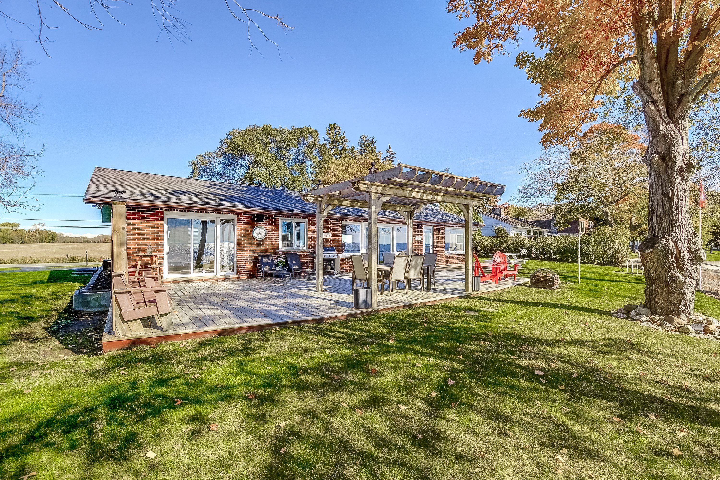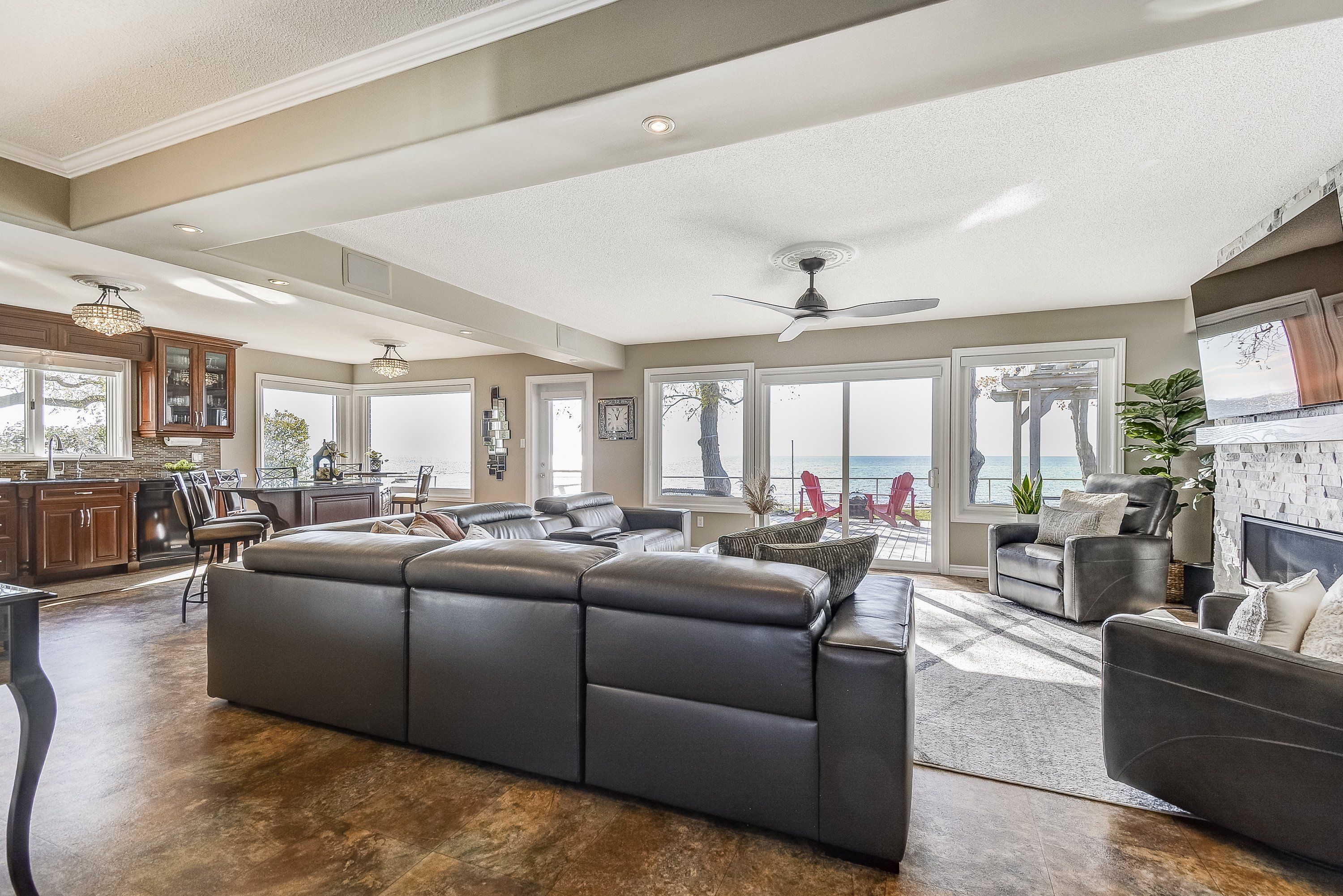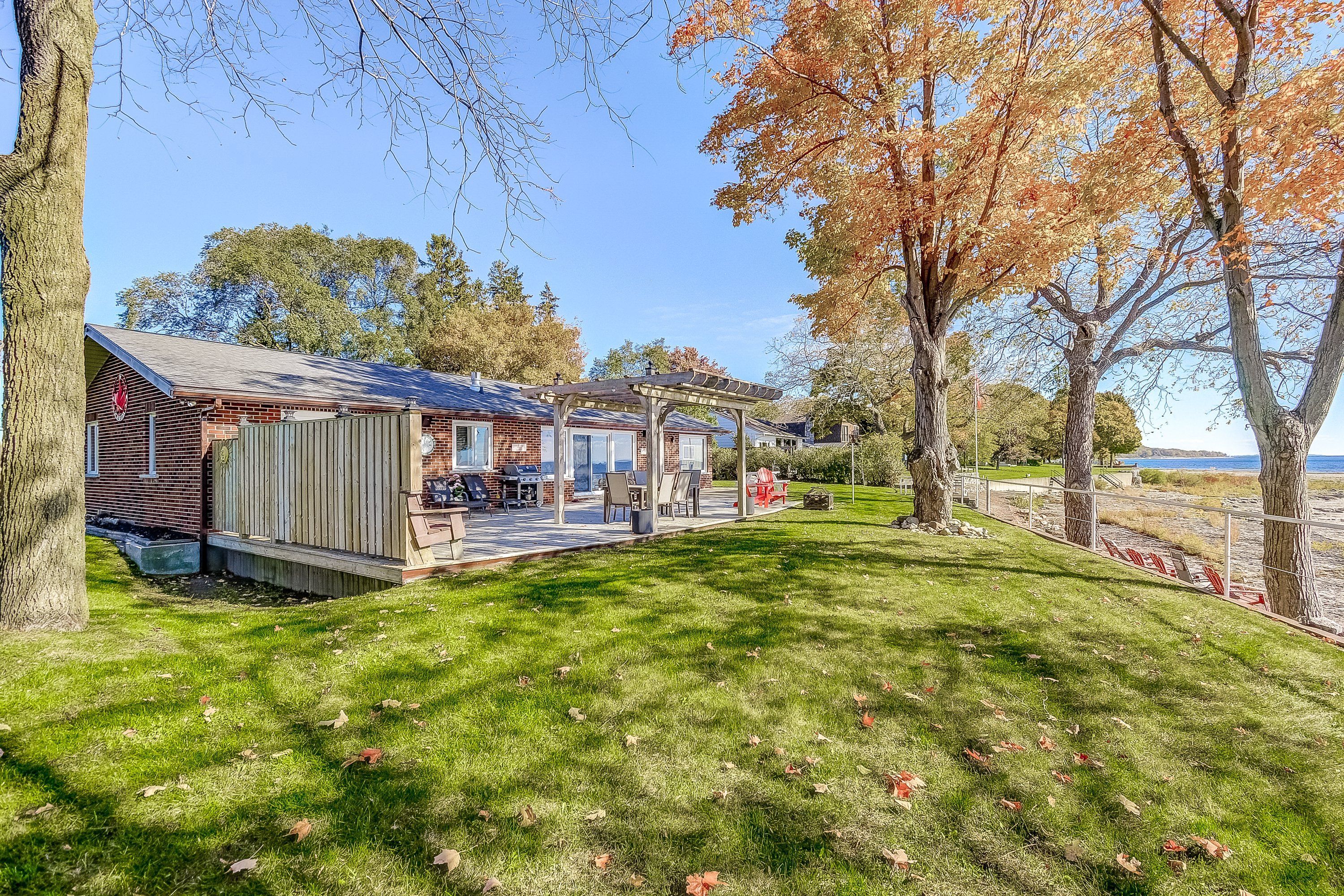 Discover an exquisite waterfront retreat that encapsulates the essence of lakeside luxury and tranquility. This stunning residence, with its wide waterfront lot, promises a lifestyle reserved for those who seek the serenity of lake living combined with tasteful elegance. Upon entering, you are greeted by a vast open-concept kitchen, dining, and living room, adorned with a warming gas fireplace and large windows that frame breathtaking panoramic views of the lake. This space effortlessly marries style with practicality, creating the perfect backdrop for entertaining or simply soaking in the peaceful vistas. The spacious primary bedroom serves as a serene sanctuary, complete with a lavish 4-piece ensuite that offers an invitation to unwind in comfort and privacy. The convenience of a main floor laundry adds to the ease of day-to-day living. Descend to the finished lower level and discover two additional well-appointed bedrooms, accompanied by a full 4-piece bathroom. This level also boasts a family room that provides an ideal setting for watching sports or enjoying a cozy retreat. Outside, the landscape unfolds to reveal a wide, impressive waterfront, allowing for countless memories to be made along the shore. With parking for up to 8 vehicles, this home is ready to welcome family and friends for gatherings throughout the seasons. This captivating home is a rare offering for the discerning waterfront home buyer, seamlessly blending luxurious living with the unspoiled charm of its lakeside locale.