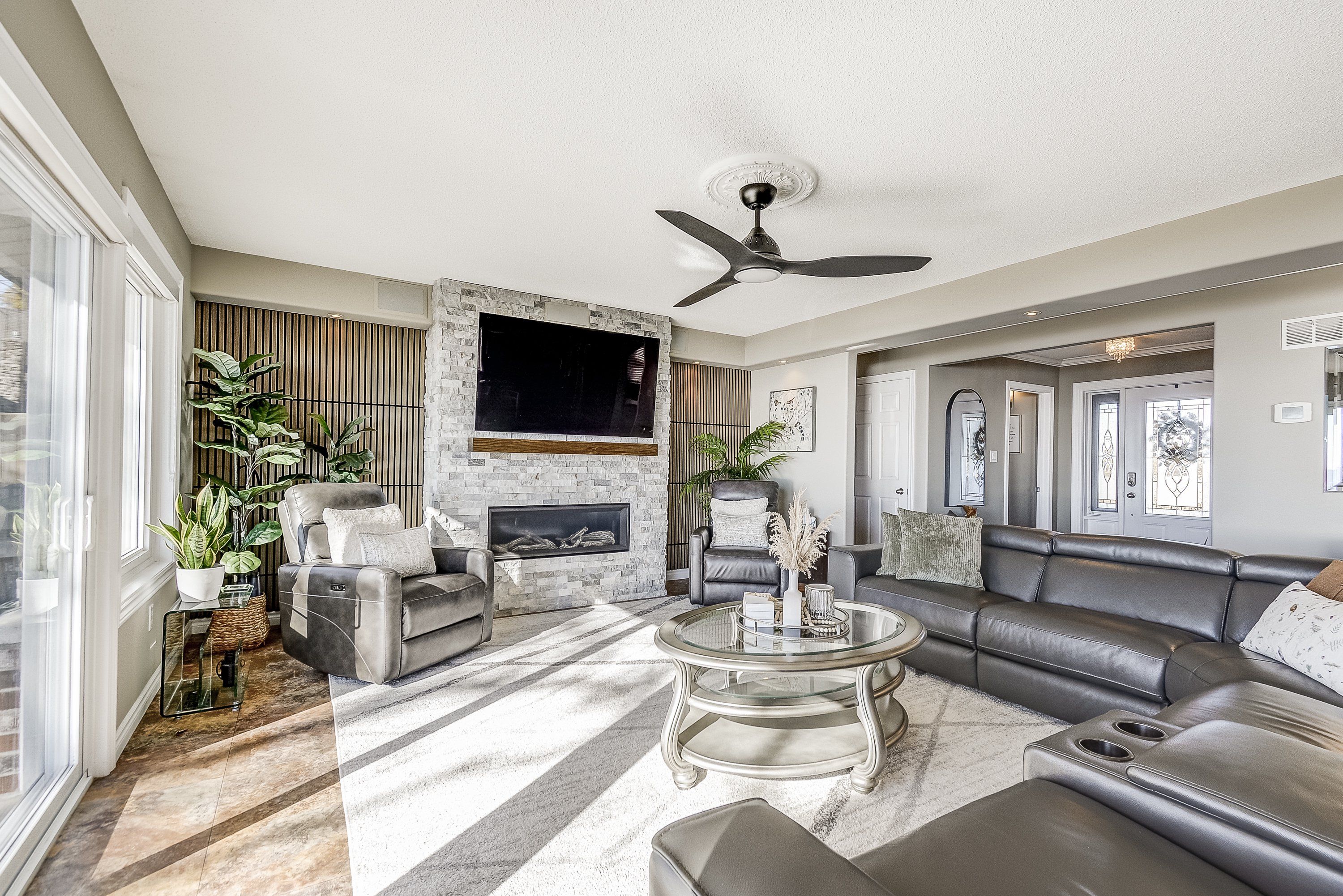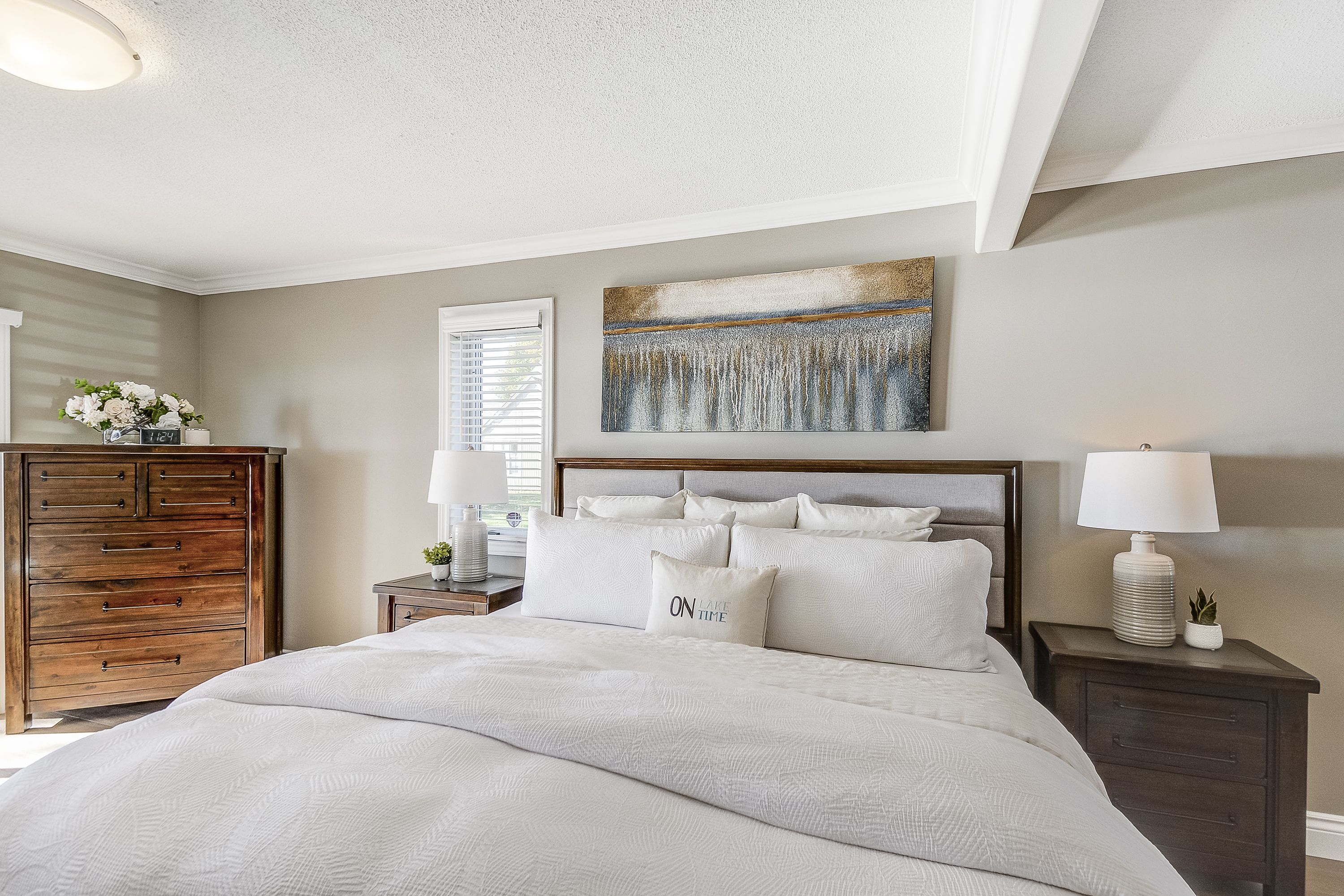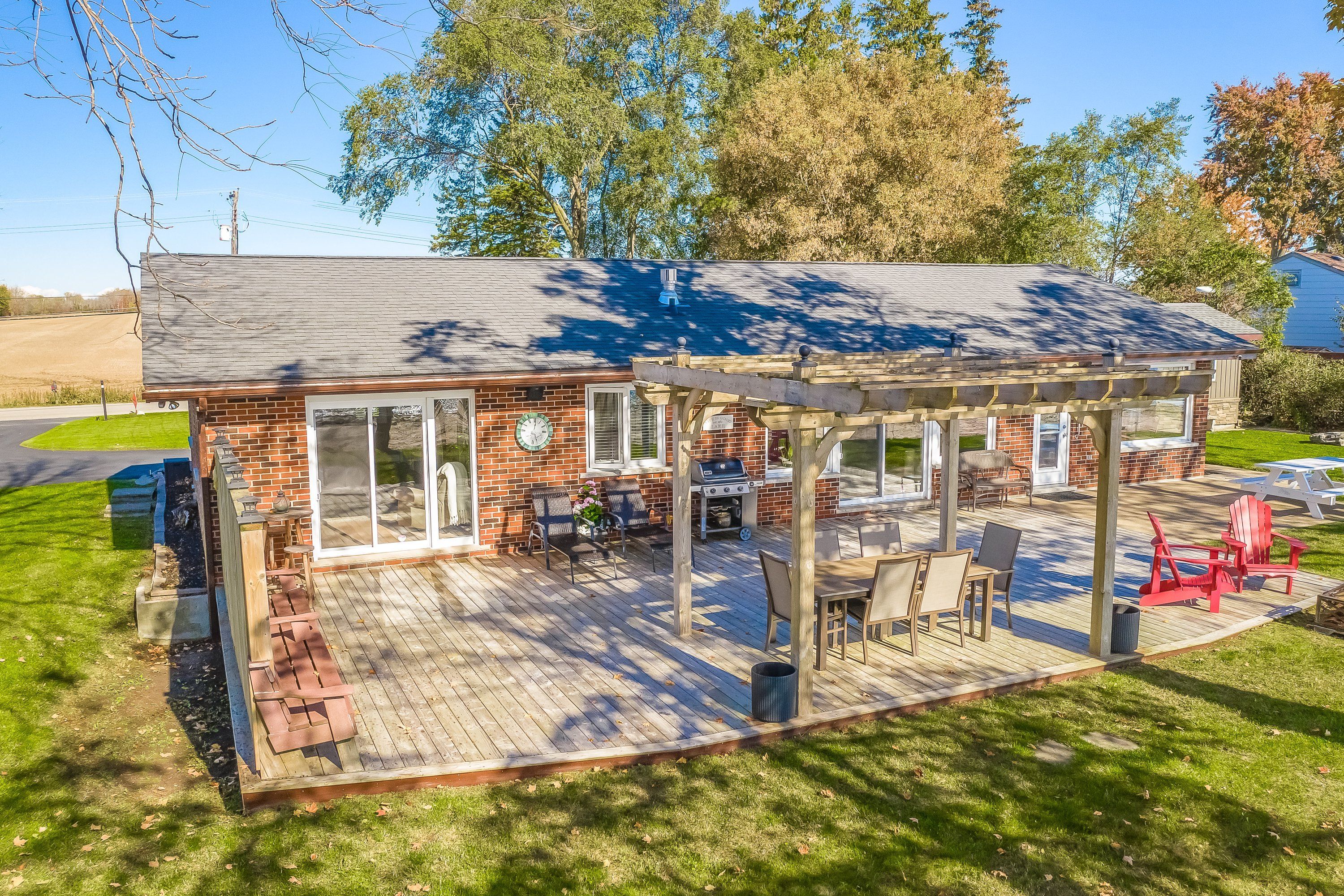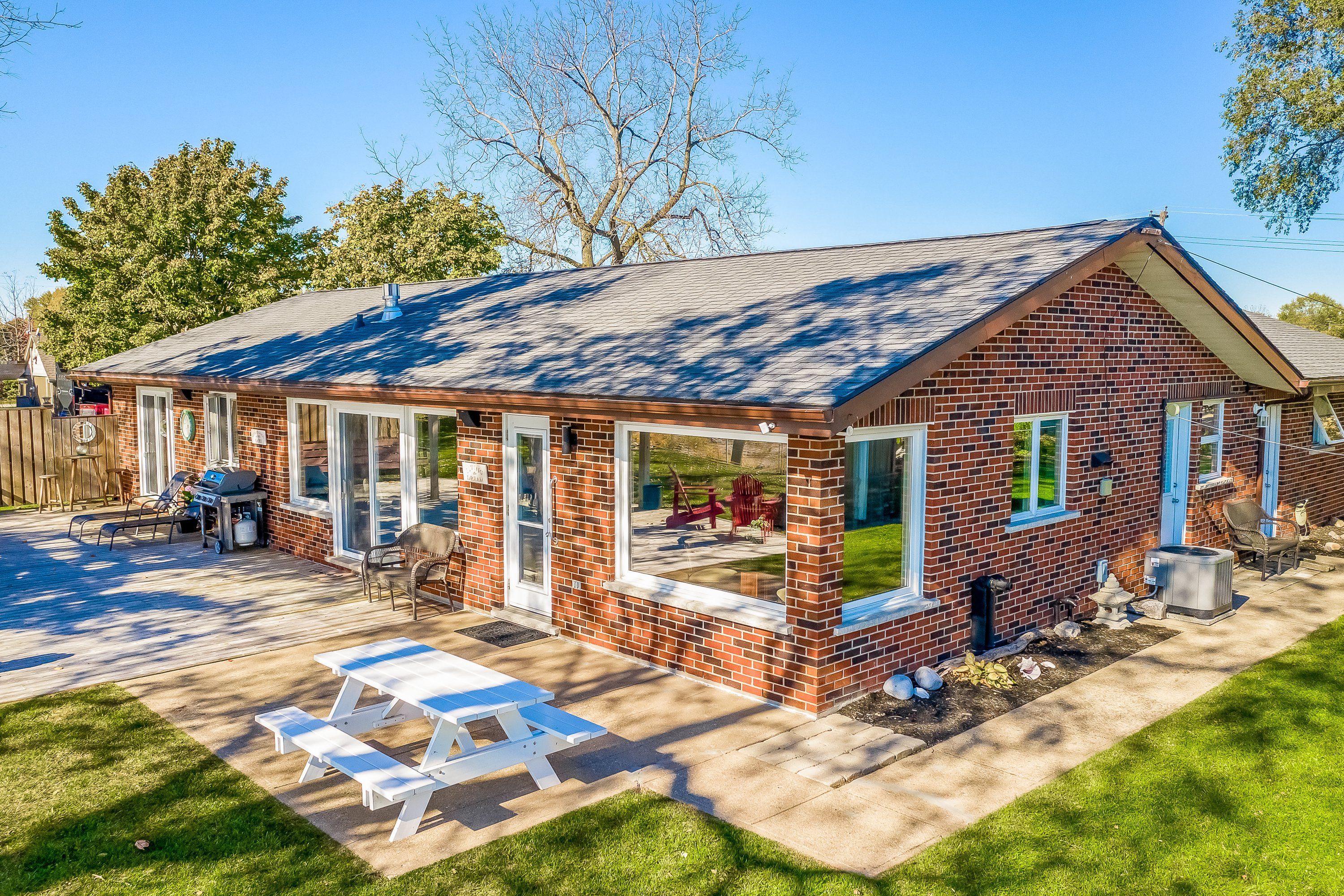 Discover an exquisite waterfront retreat that encapsulates the essence of lakeside luxury and tranquility. This stunning residence, with its wide waterfront lot, promises a lifestyle reserved for those who seek the serenity of lake living combined with tasteful elegance. Upon entering, you are greeted by a vast open-concept kitchen, dining, and living room, adorned with a warming gas fireplace and large windows that frame breathtaking panoramic views of the lake. This space effortlessly marries style with practicality, creating the perfect backdrop for entertaining or simply soaking in the peaceful vistas. The spacious primary bedroom serves as a serene sanctuary, complete with a lavish 4-piece ensuite that offers an invitation to unwind in comfort and privacy. The convenience of a main floor laundry adds to the ease of day-to-day living. Descend to the finished lower level and discover two additional well-appointed bedrooms, accompanied by a full 4-piece bathroom. This level also boasts a family room that provides an ideal setting for watching sports or enjoying a cozy retreat. Outside, the landscape unfolds to reveal a wide, impressive waterfront, allowing for countless memories to be made along the shore. With parking for up to 8 vehicles, this home is ready to welcome family and friends for gatherings throughout the seasons. This captivating home is a rare offering for the discerning waterfront home buyer, seamlessly blending luxurious living with the unspoiled charm of its lakeside locale.