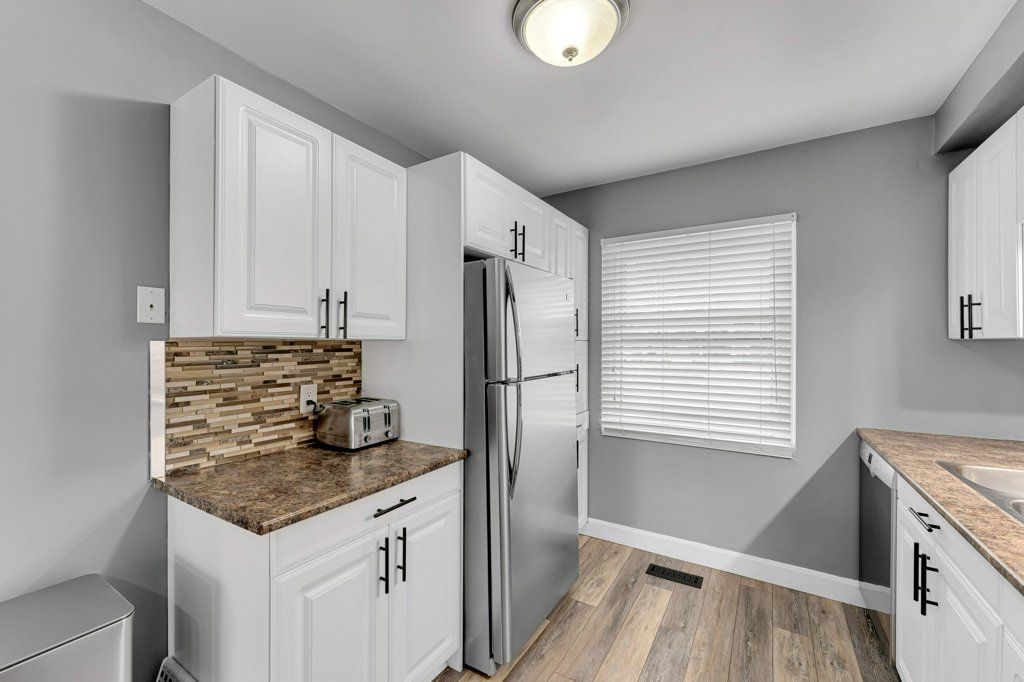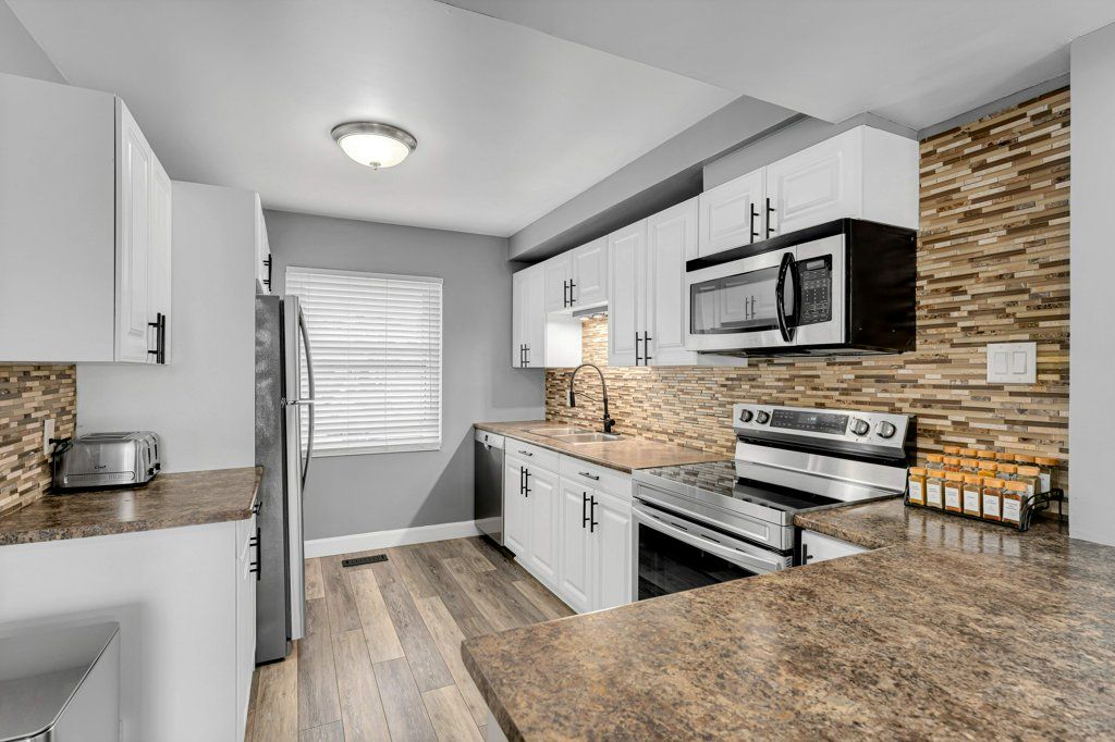 • Bright kitchen with large east-facing window and updated cabinetry.