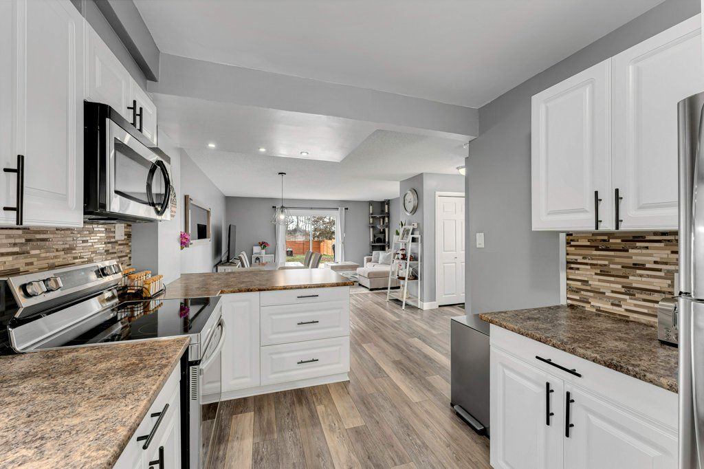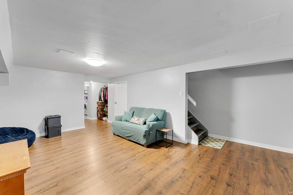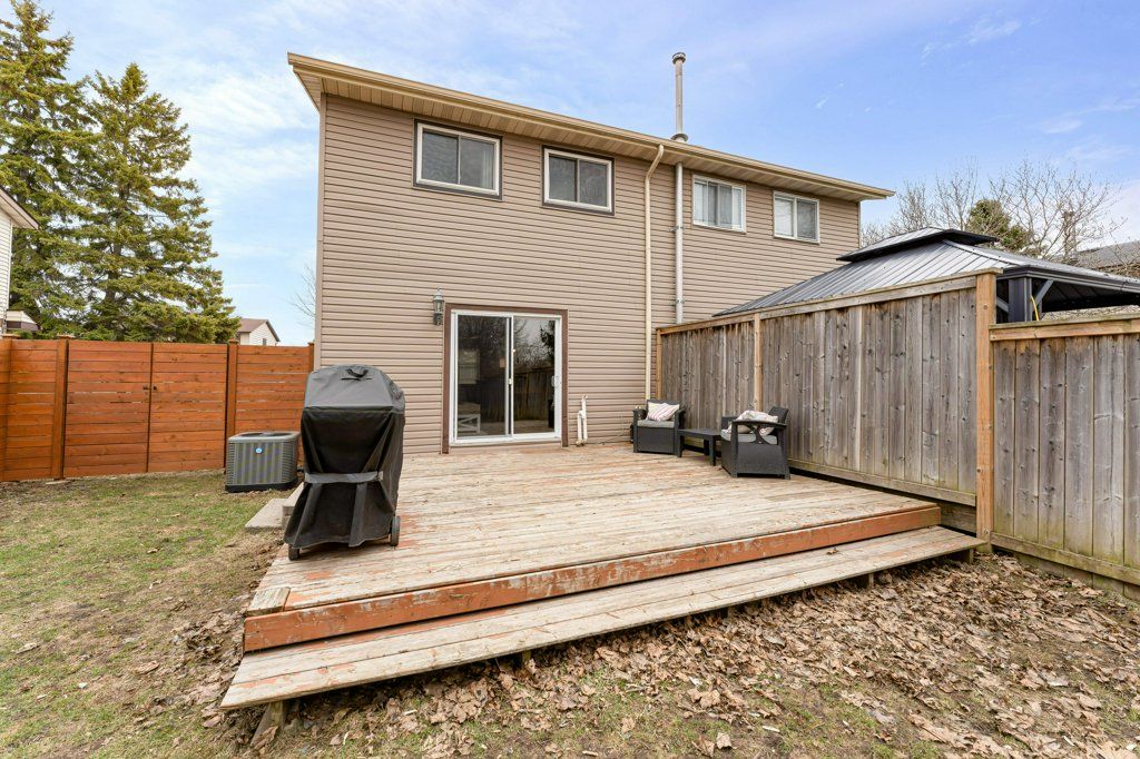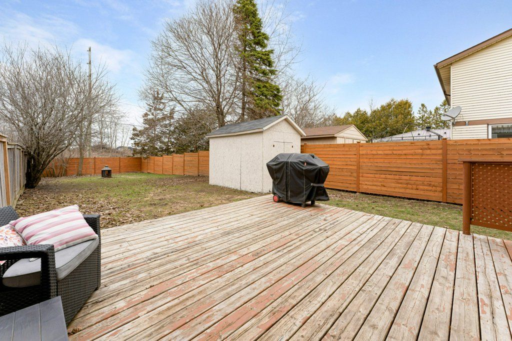 This semi-detached home in cataraqui woods is more than meets the eye, you'll be surprised at the 150 foot lot depth, meaning that even with a deck and a large shed, there is still plenty of room to run, and even a fire pit! The kitchen here is bright, owing to the large, east-facing window, and updated cabinetry. The living space is generous for a semi in this neighbourhood as well, with plenty of room for a large table. Upstairs there are three bedrooms, two of which can easily accommodate a king size bed, and a full bath. There is a second full bath in the basement level, along with a rec-room and utility/storage spaces. There is parking for at least three vehicles in the drive but you are close to transit, school bus routes, schools and shopping... So you may not rely on your car much at all.