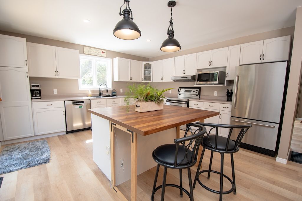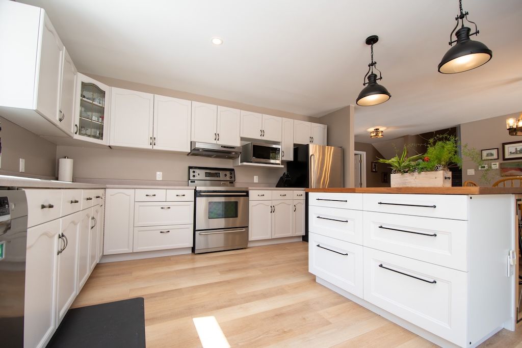 • Upgraded kitchen opens to a new large deck overlooking private yard.